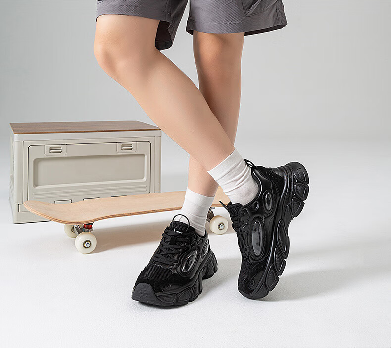 金利来(Goldlion)男鞋25年秋季新品休闲鞋男户外厚底增高运动鞋皮鞋男跑步鞋老爹鞋 黑色 41