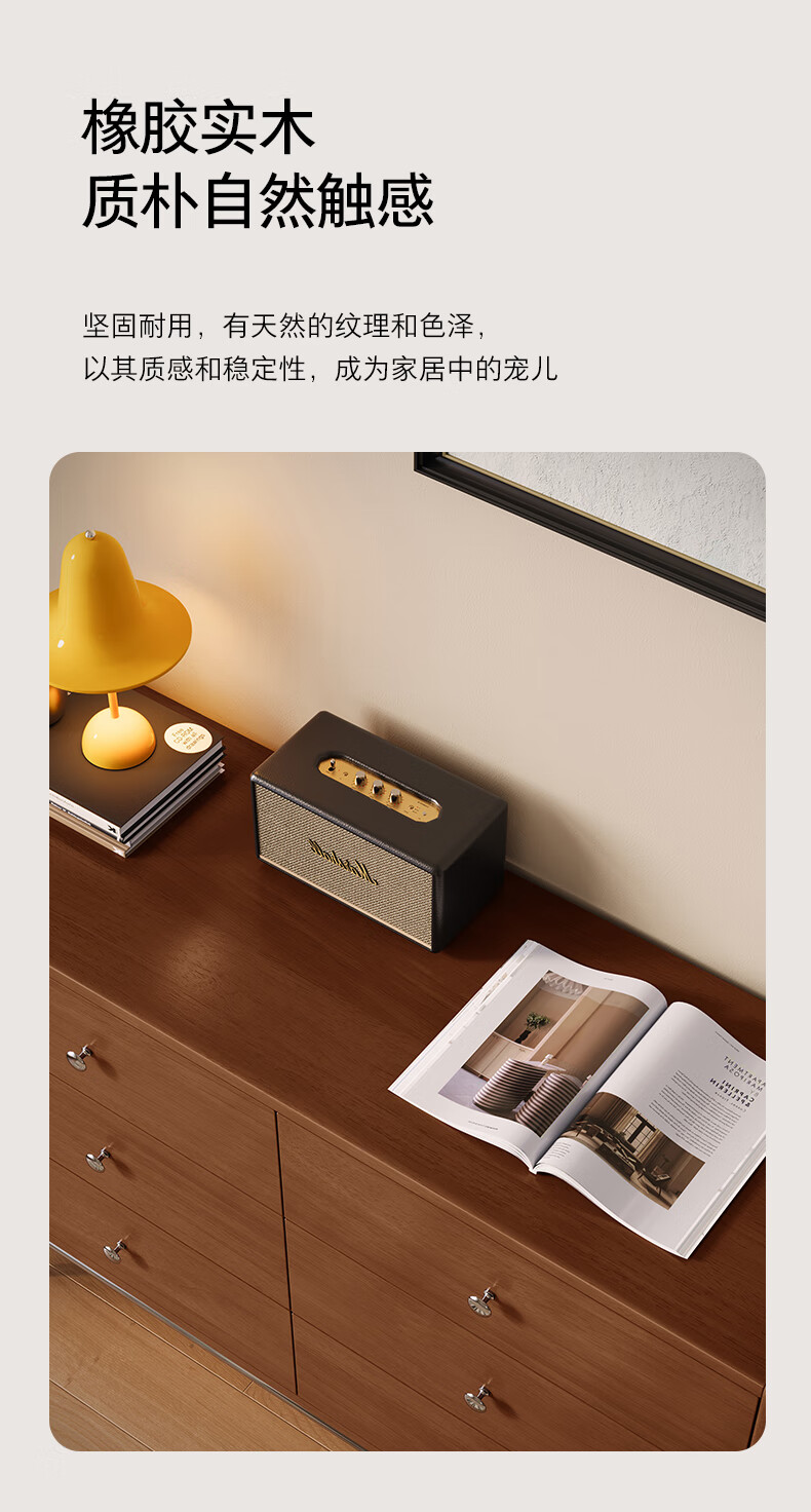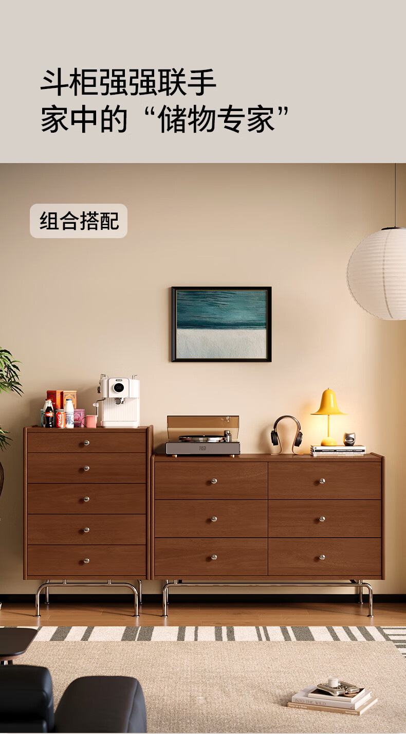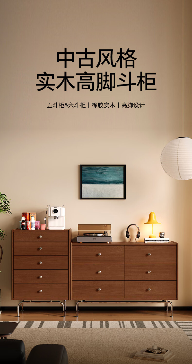顾家家居(KUKA)复古轻奢中古卧室家具收纳储物实木高脚斗柜橡胶木梳妆台8038 【实木中古色】精致五斗柜