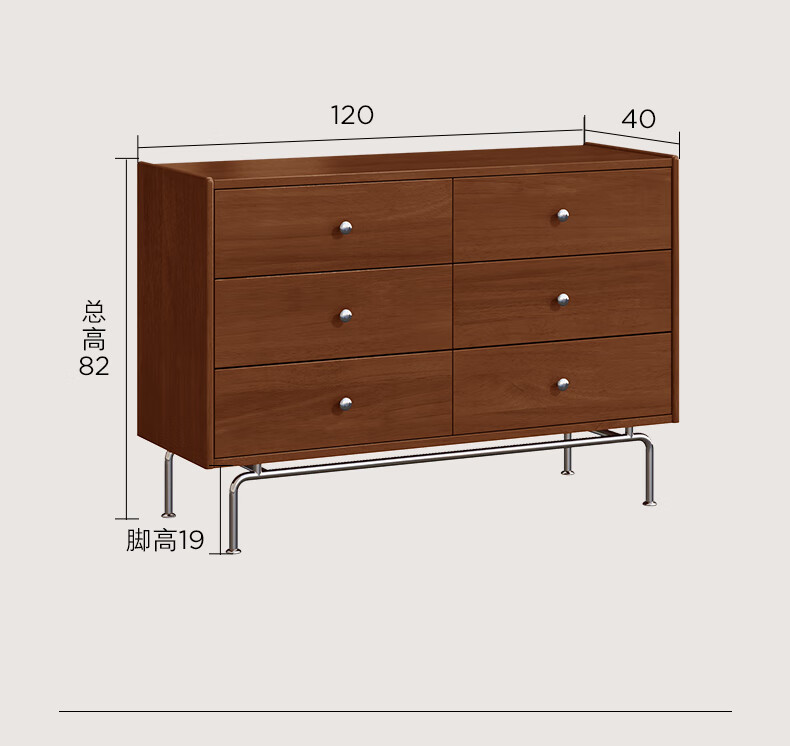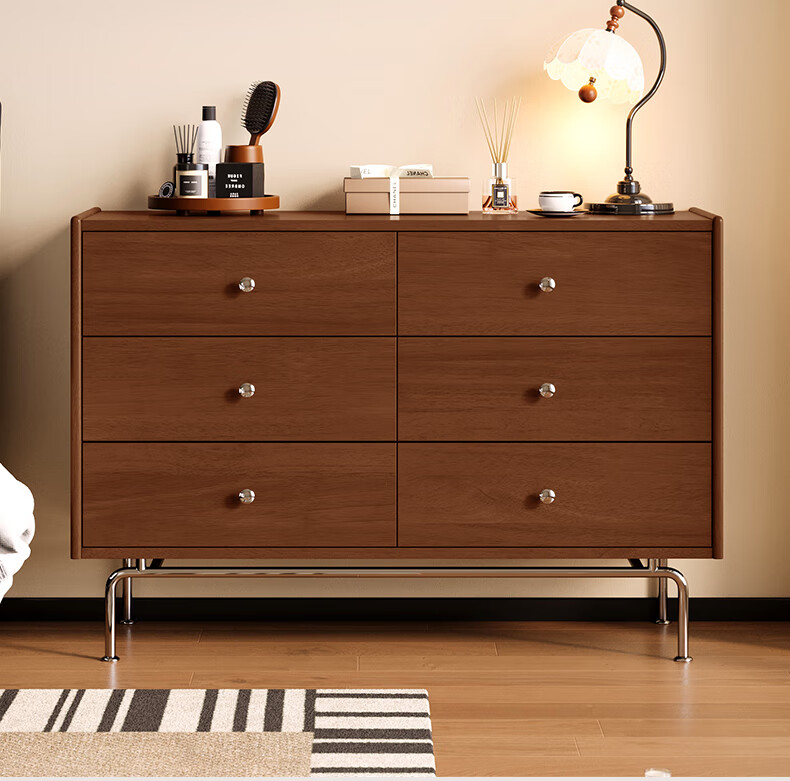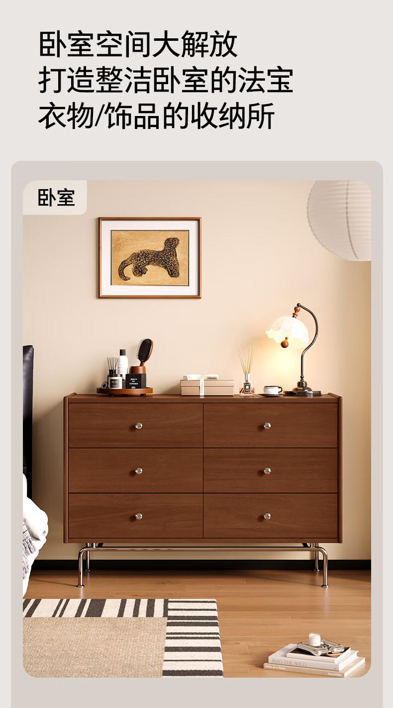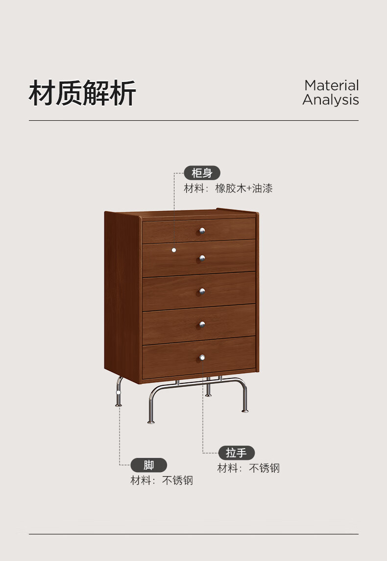 顾家家居(KUKA)复古轻奢中古卧室家具收纳储物实木高脚斗柜橡胶木梳妆台8038 【实木中古色】精致五斗柜