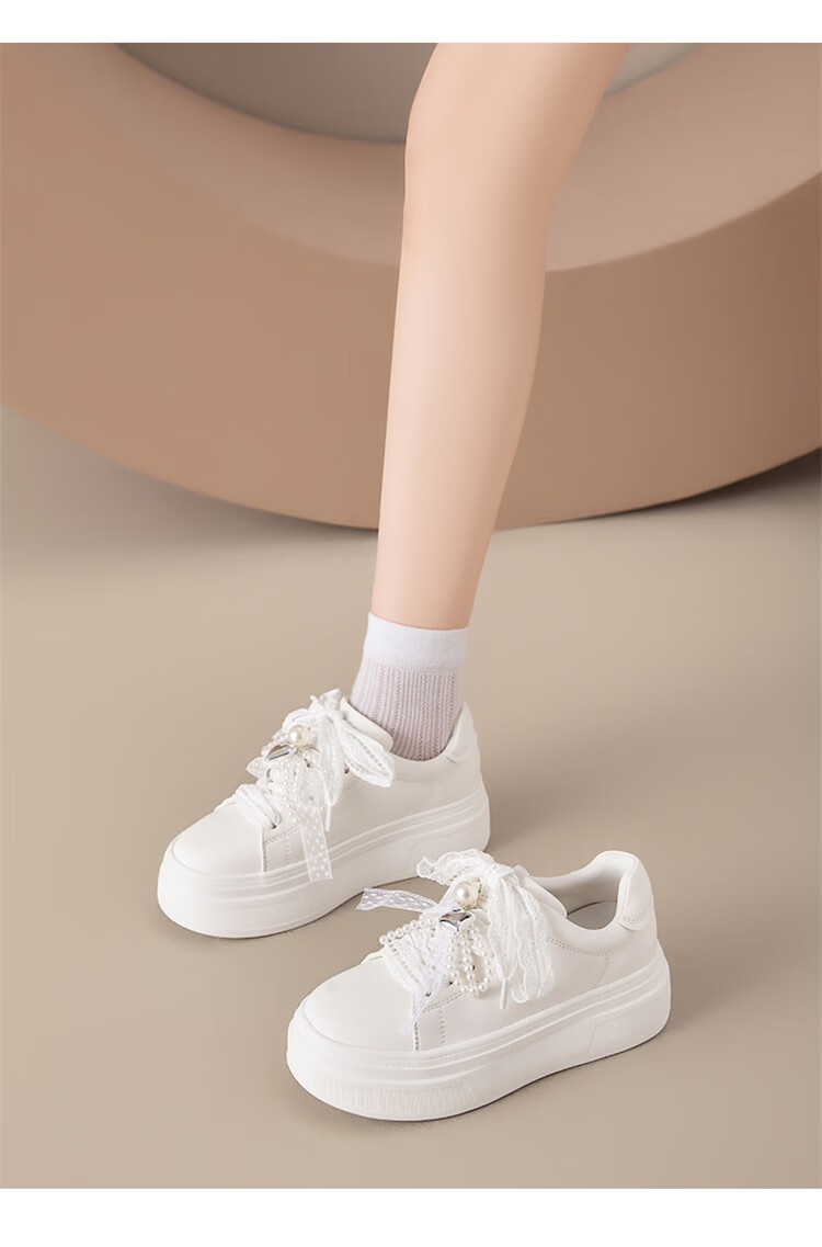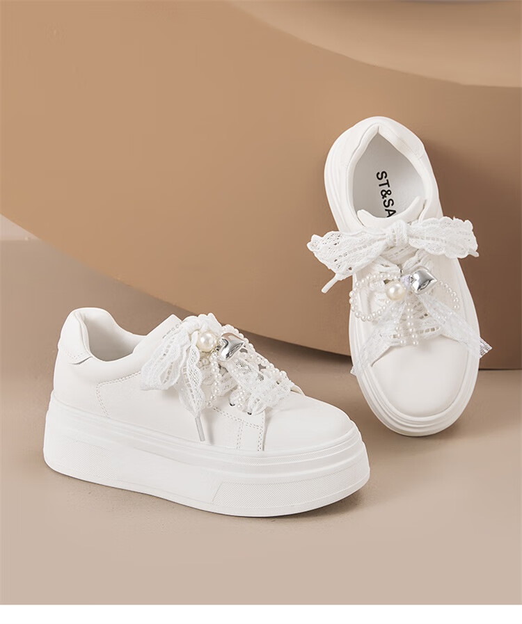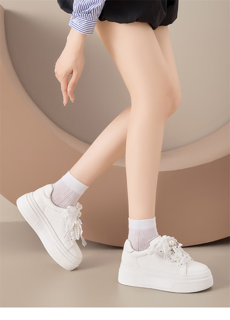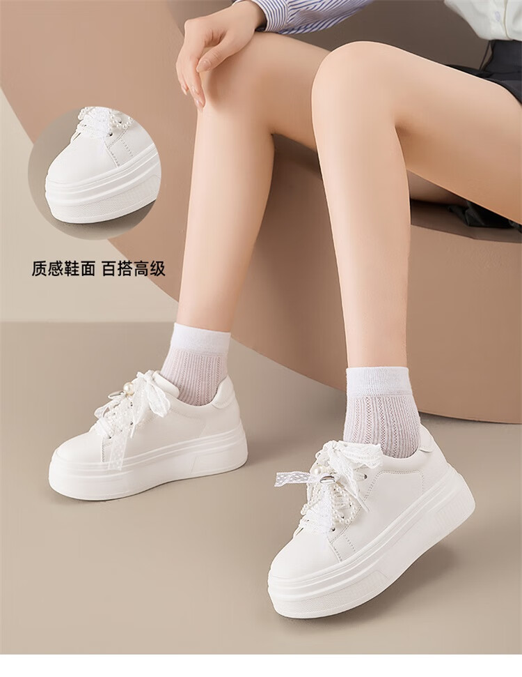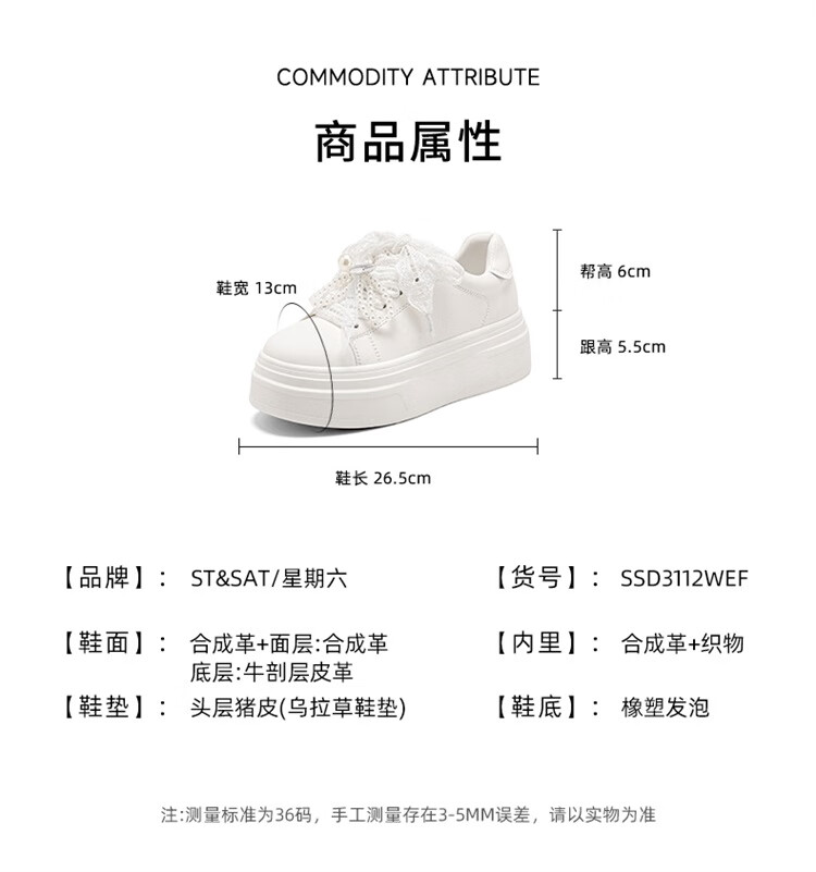 星期六时尚圆头厚底学院风小白鞋2025秋季新款百搭女板鞋MTSSD3112WEF 白色 35