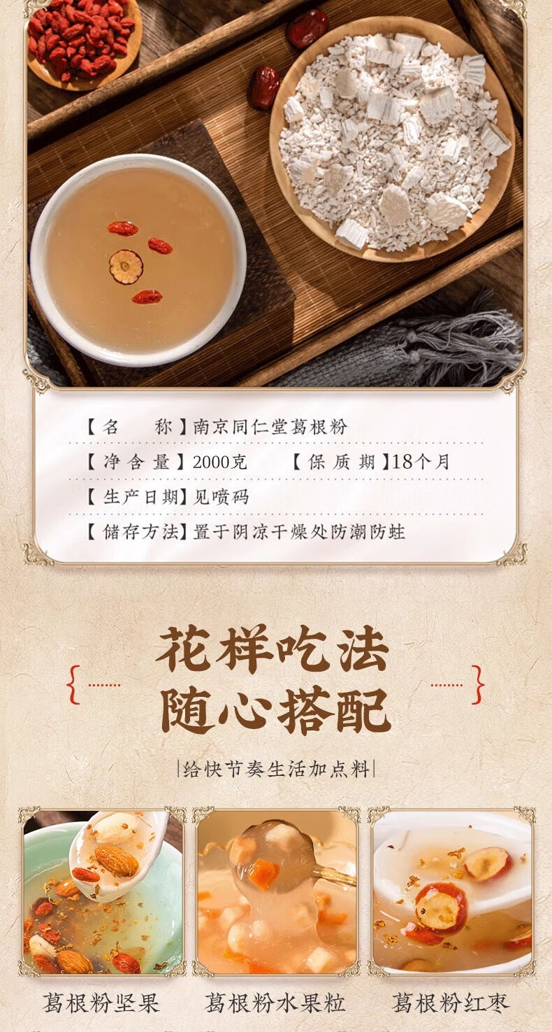 南京同仁堂葛根粉2000g特级深山野生葛根粉纯天然0添加无糖养脾胃代餐粉藕粉