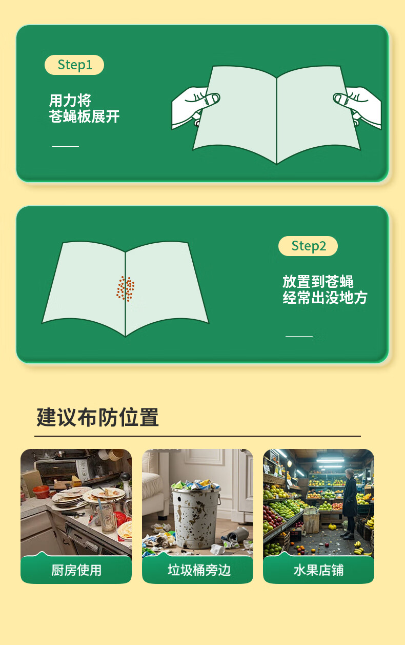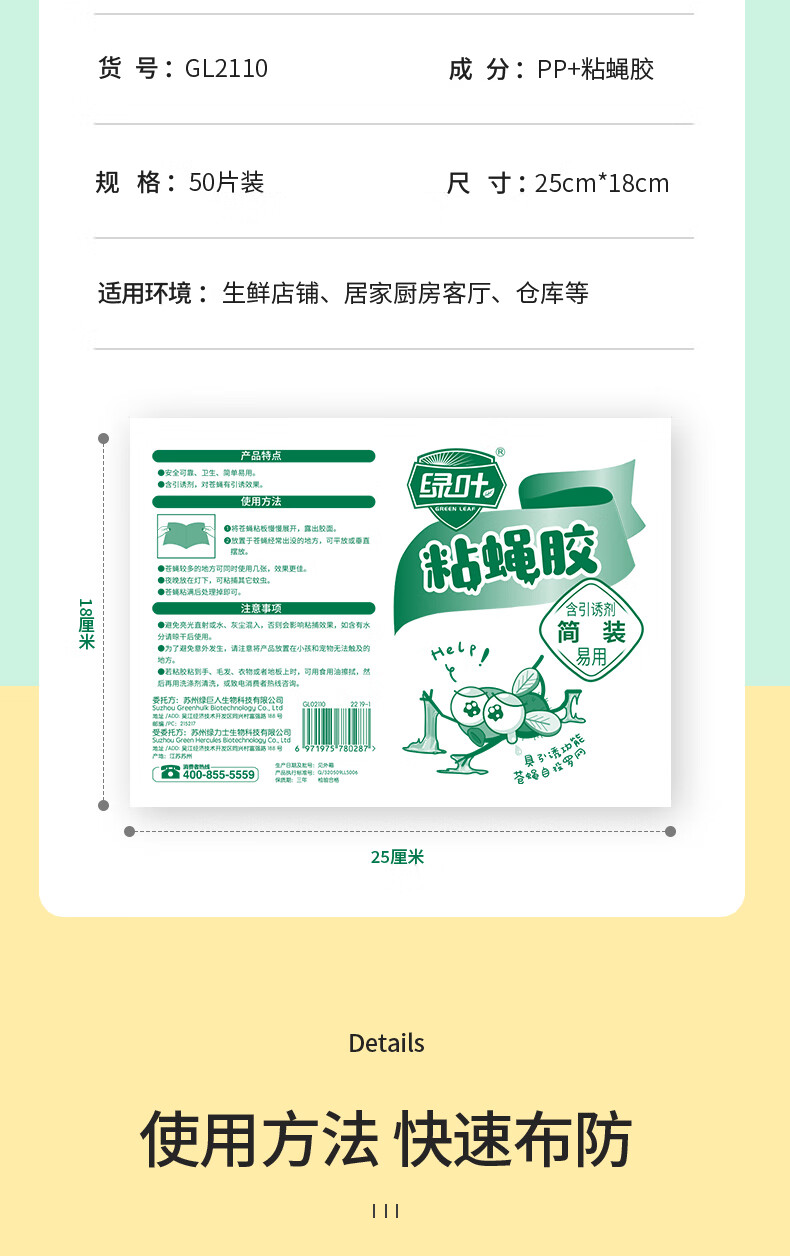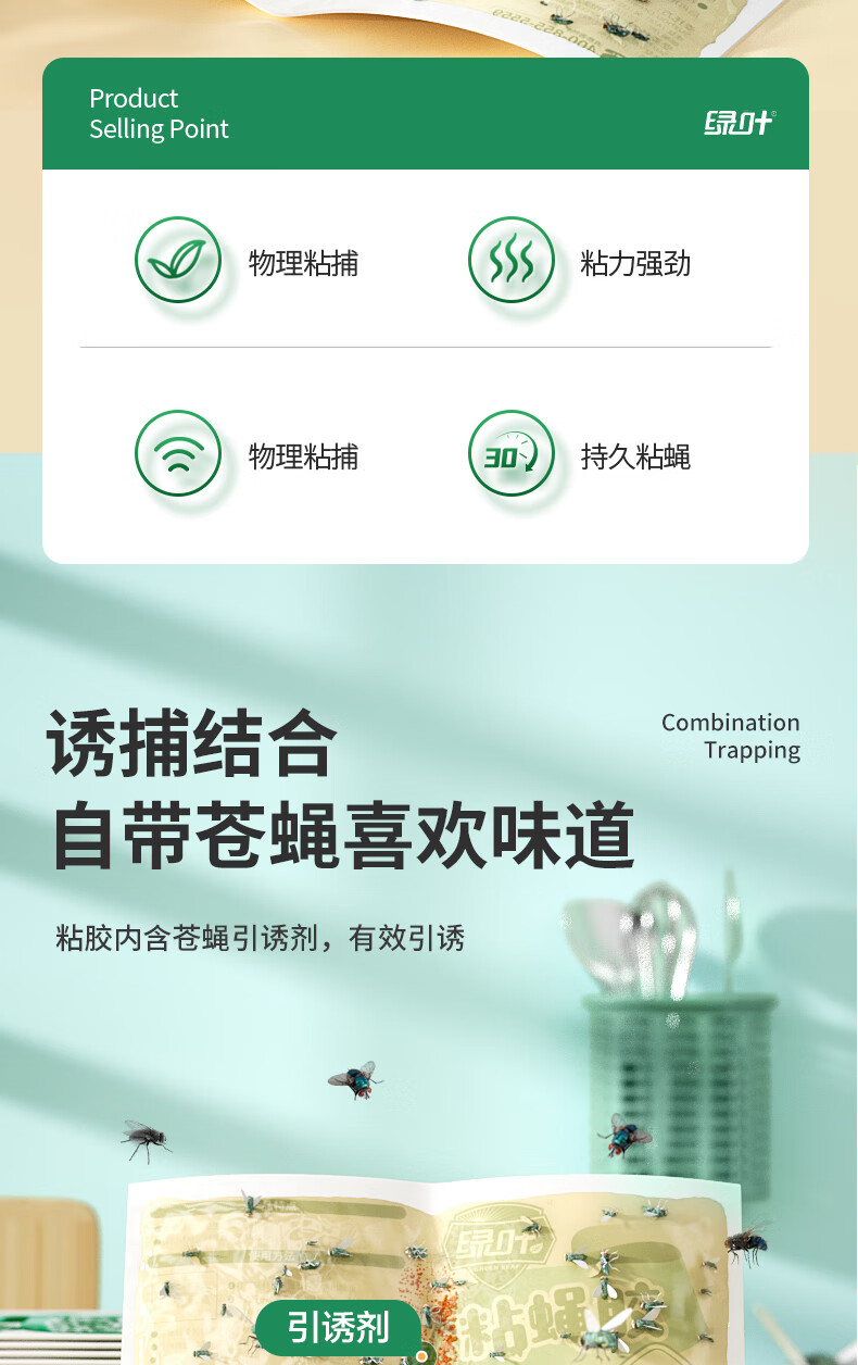 绿叶(Green Leaf)粘蝇纸灭苍蝇器粘蝇胶50片装灭苍蝇粘板