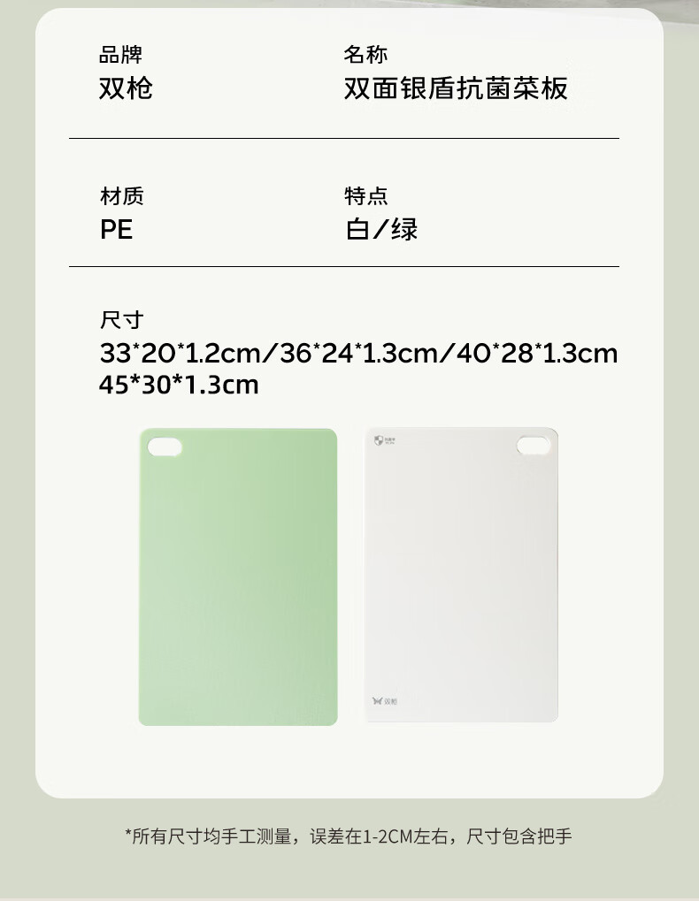 双枪树脂菜板抗菌切菜砧板家用防霉双面生熟分切案板40*28*1.3cm