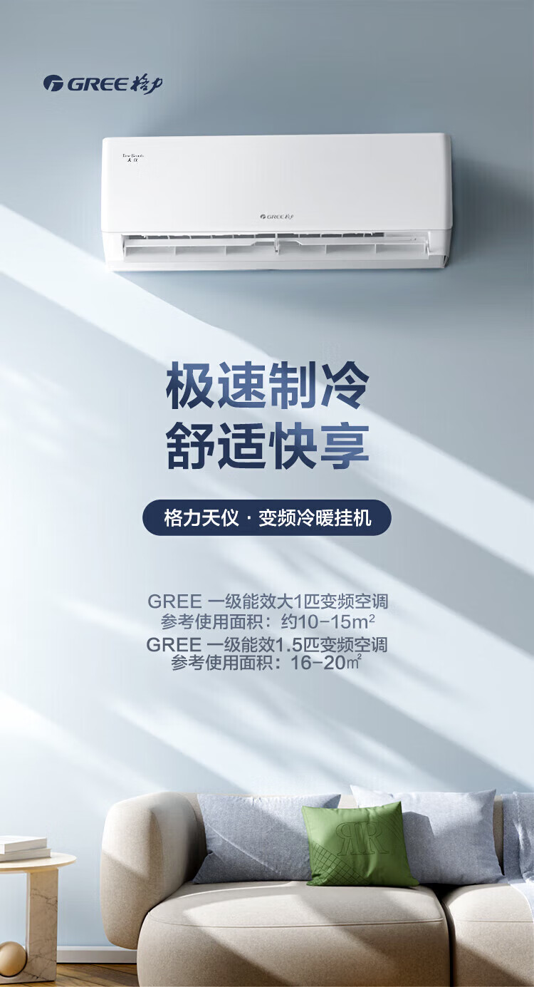 格力(GREE)空调天仪大1匹/1.5匹卧室挂机【以旧换新家电国家补贴20%】 超级省电1级能效京仓发货变频冷暖两用 1.5匹 一级能效 国补指定减20%|超值推荐