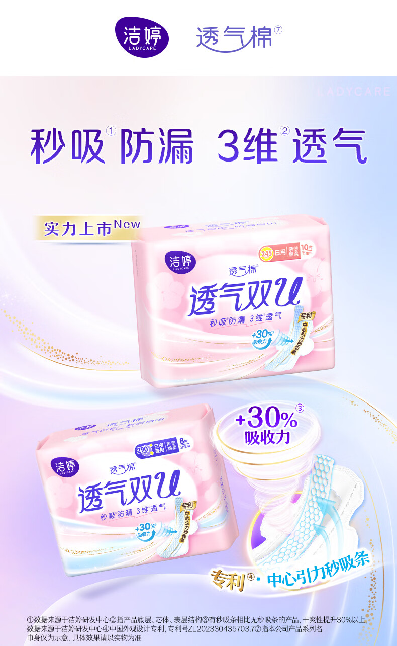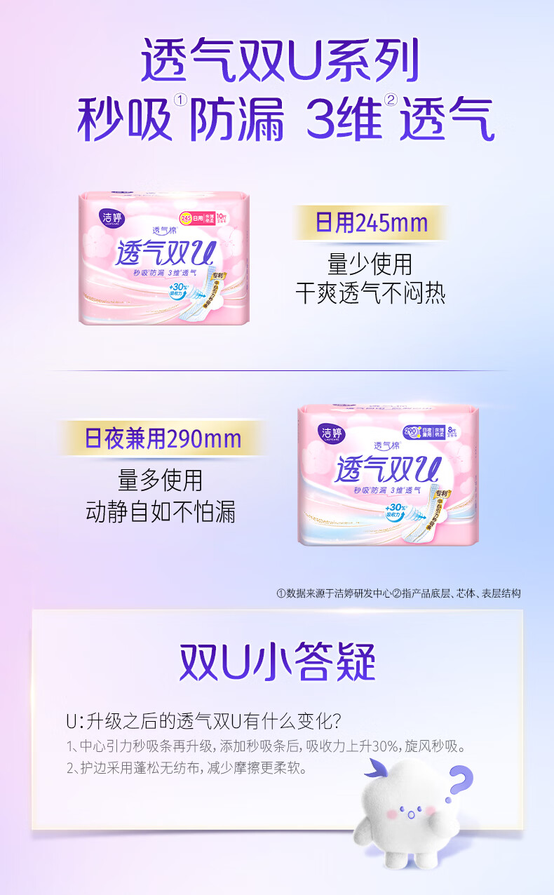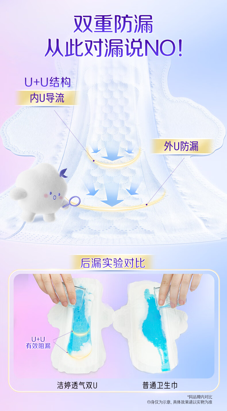 洁婷双u卫生巾透气双U棉柔日用组合装姨妈巾批发