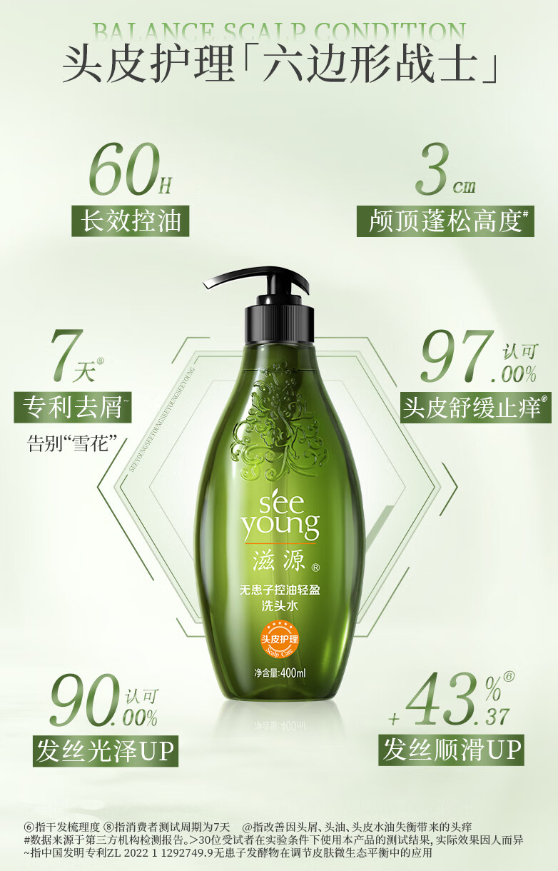 滋源无患子洗发水持久控油洗头膏露去屑止痒蓬松无硅油第1男女士400ml