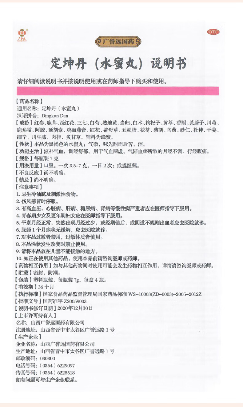 广誉远 定坤丹(水蜜丸)7g*4瓶 滋补气血 调经舒郁 用于月经不调 行经腹痛 补气血女补气养血 OTC 老字号