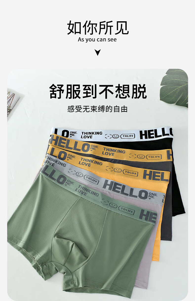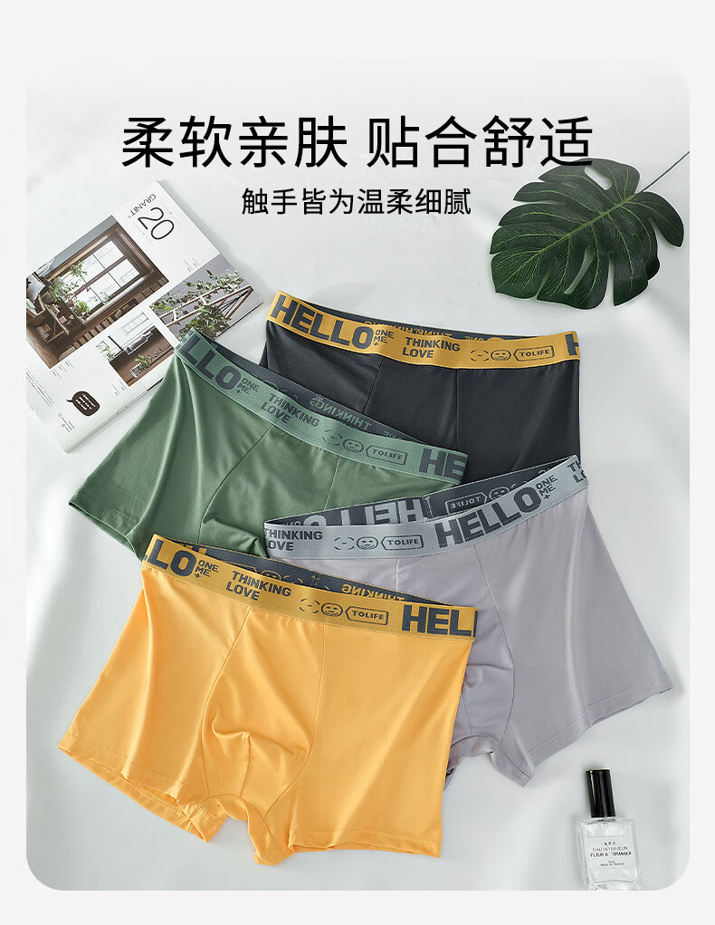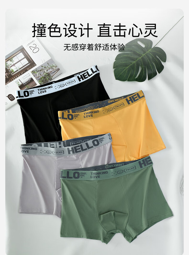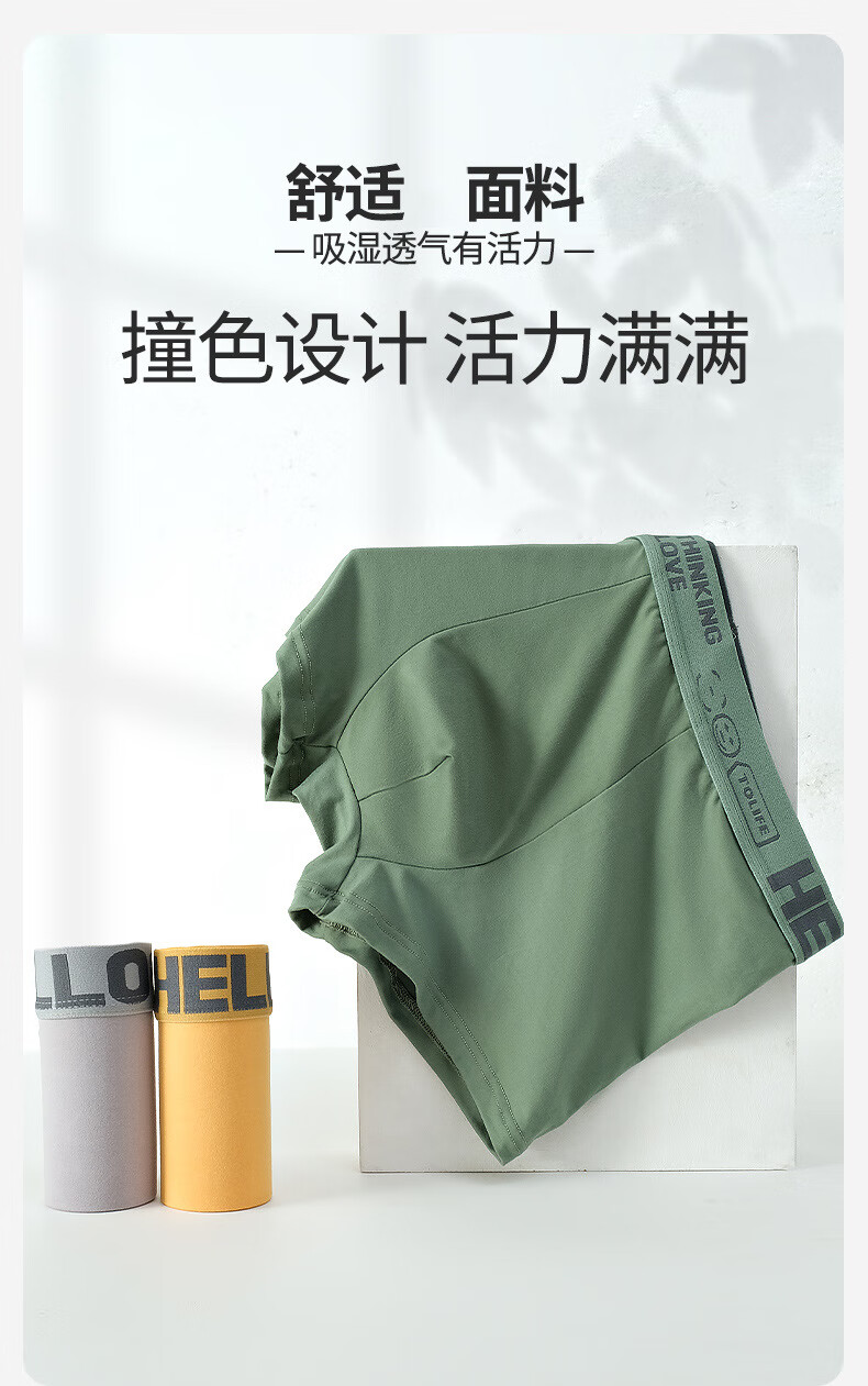 宜而爽男士透气内裤男平角裤抗菌短裤男生底裤四角裤头男款 A组【黑色+米白+深灰+浅灰】 4条 3XL (145-175斤)