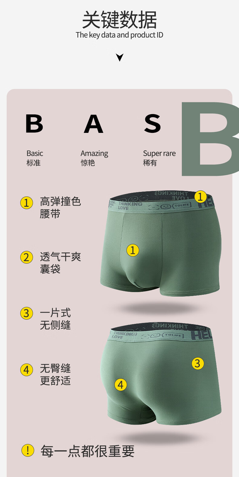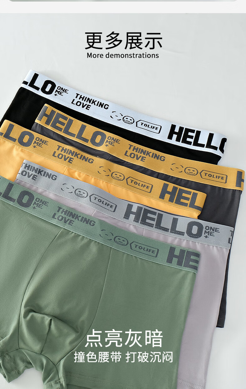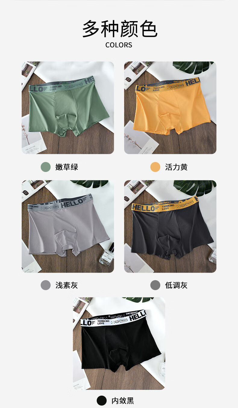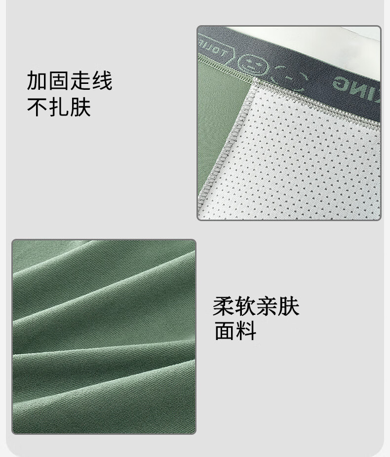宜而爽男士透气内裤男平角裤抗菌短裤男生底裤四角裤头男款 A组【黑色+米白+深灰+浅灰】 4条 3XL (145-175斤)
