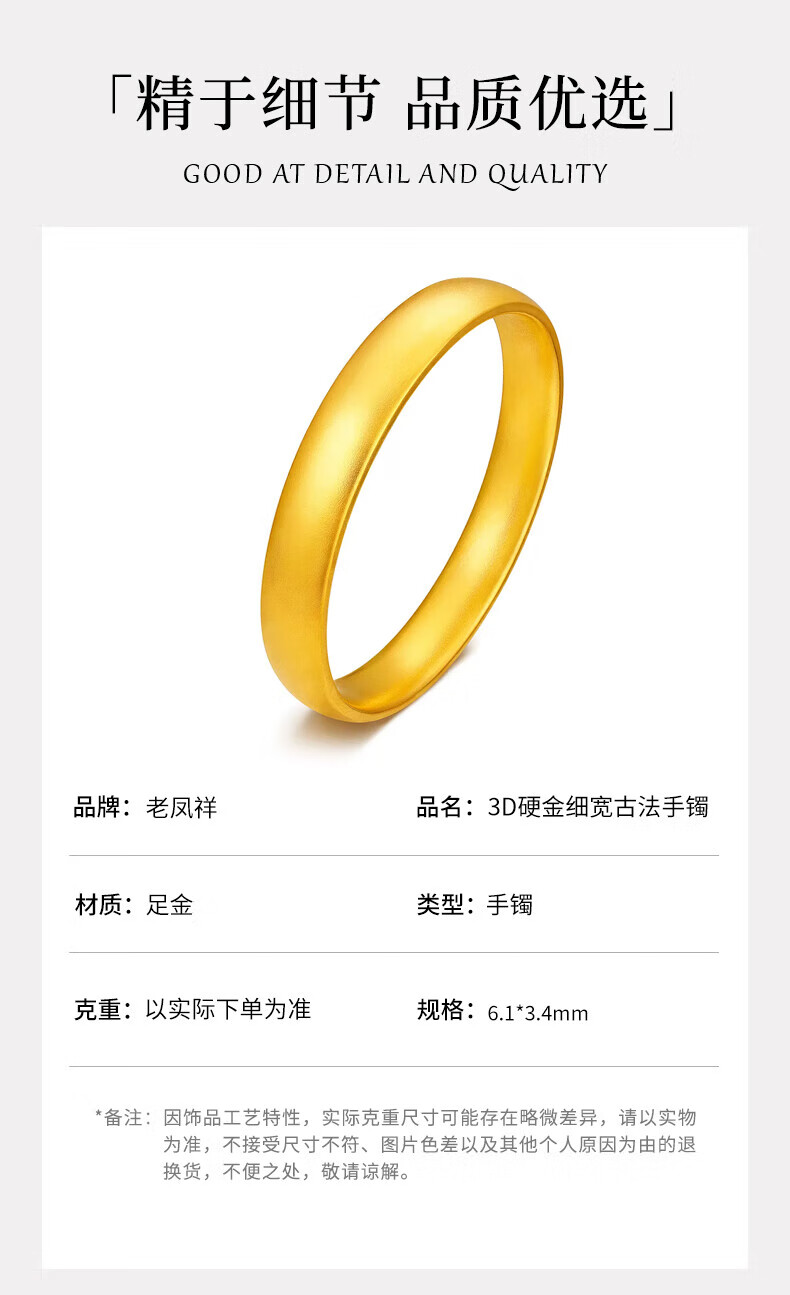 老凤祥三金宽面黄金手镯素圈足金显粗泥鳅背古法金手镯老婆生日礼物 足金泥鳅背黄金手镯 约80g(定制圈口5-7工作日发)