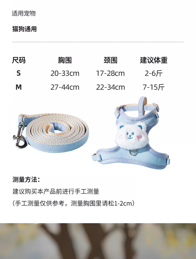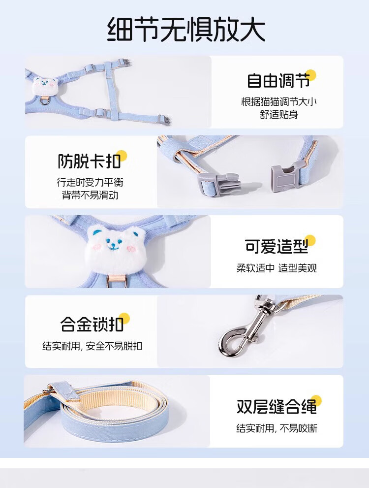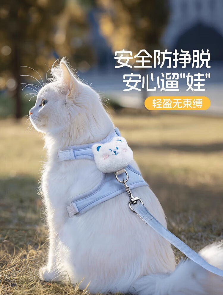 憨憨乐园猫咪牵引绳可调节遛猫绳子可爱幼猫外出专用胸背小型犬宠物用品s