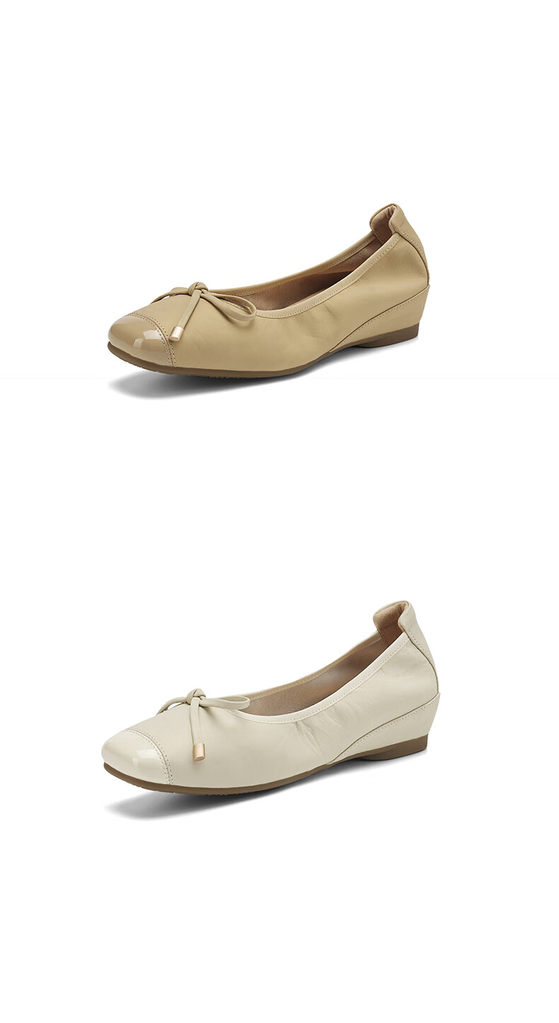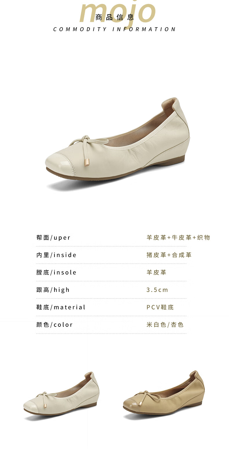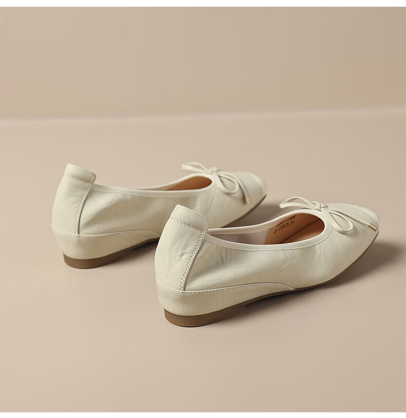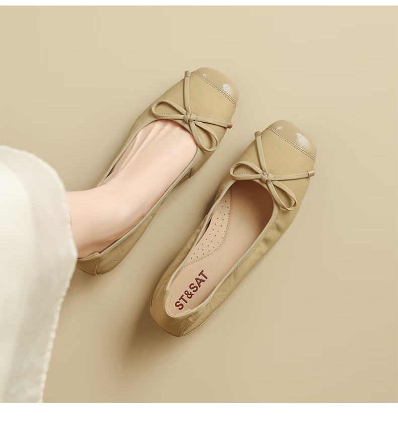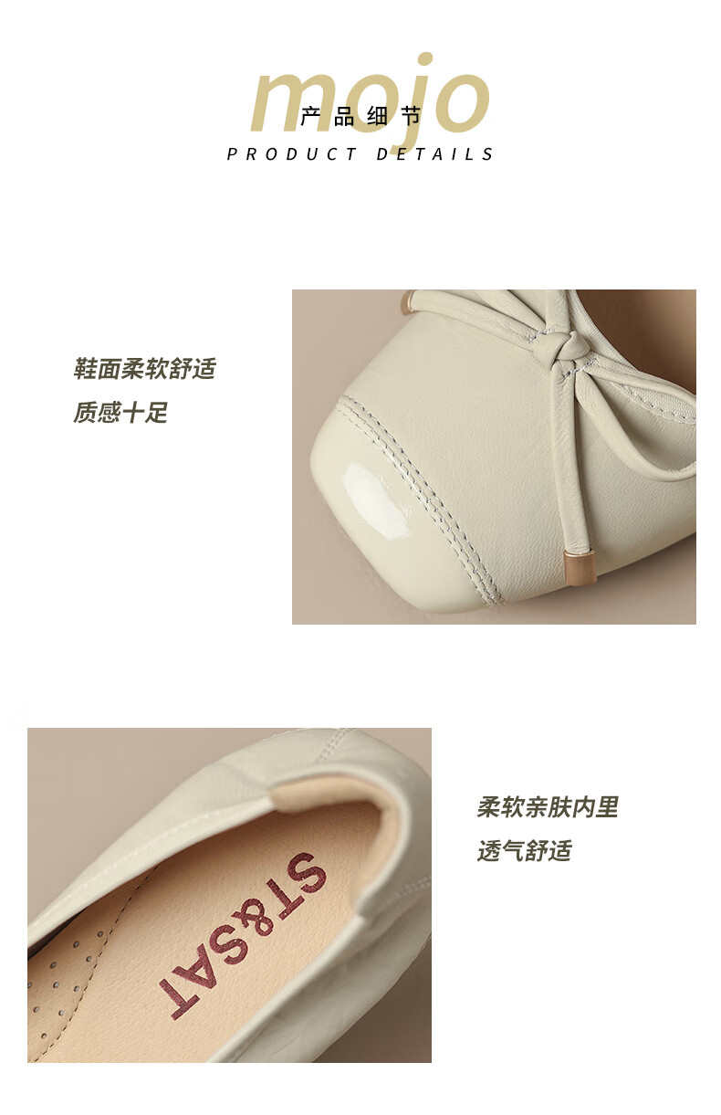 星期六(St&Sat)轻奢羊皮时尚玛丽珍鞋女一脚蹬芭蕾鞋蝴蝶结浅口单鞋JXSSD3111WPK 米白色 35