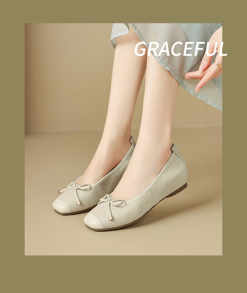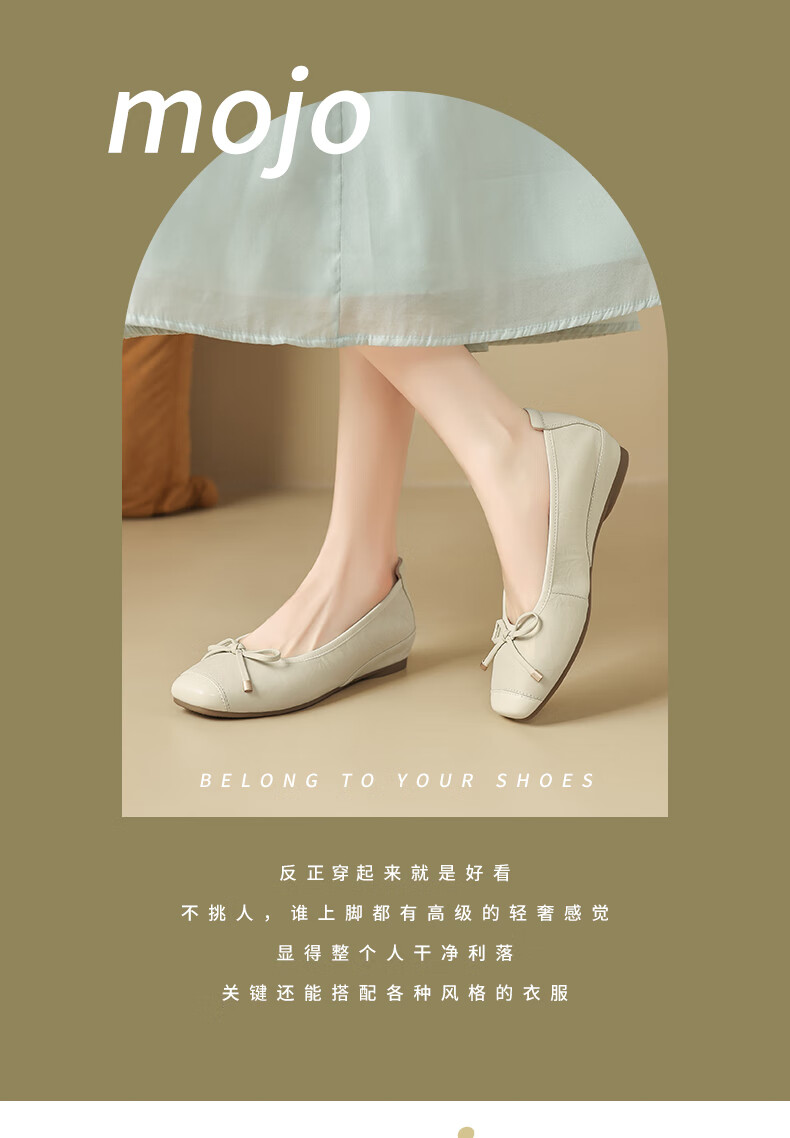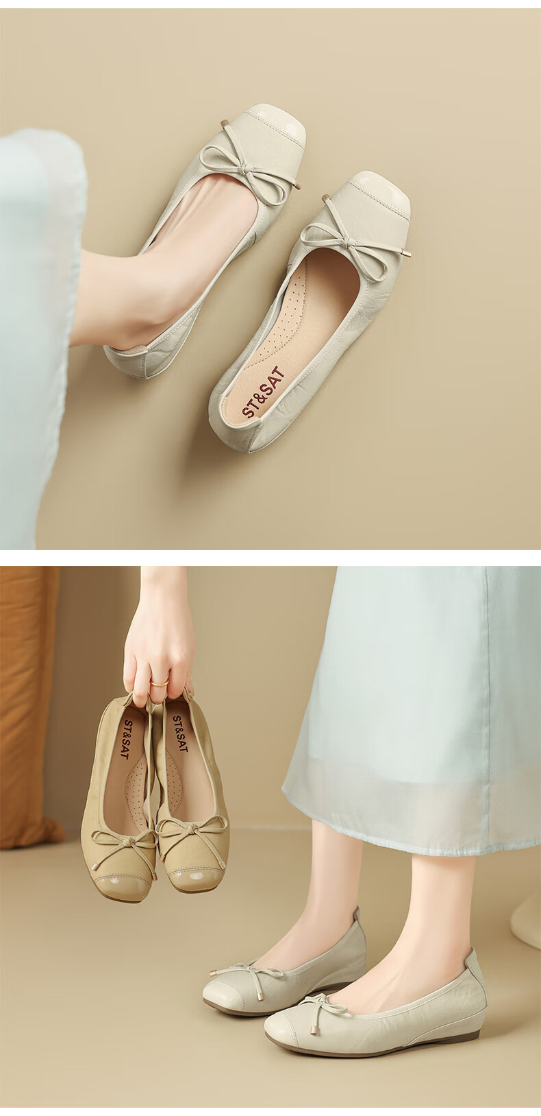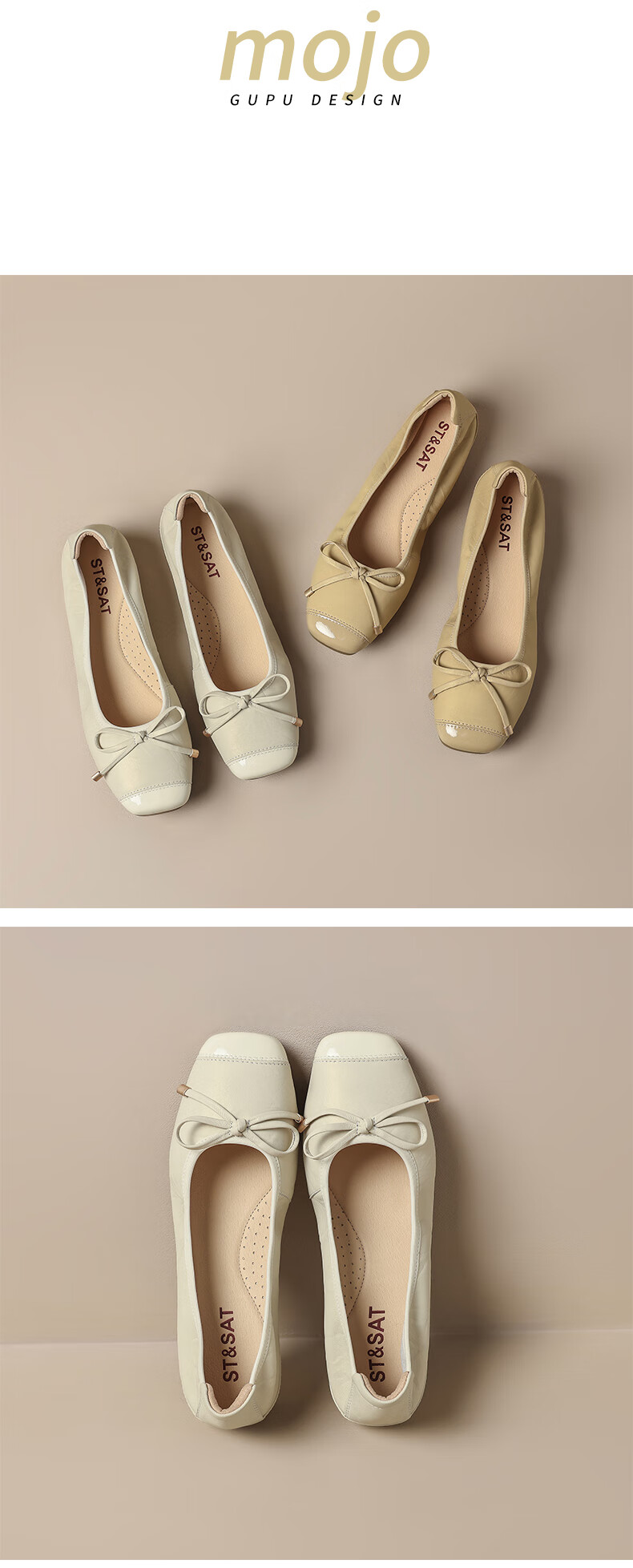 星期六(St&Sat)轻奢羊皮时尚玛丽珍鞋女一脚蹬芭蕾鞋蝴蝶结浅口单鞋JXSSD3111WPK 米白色 35