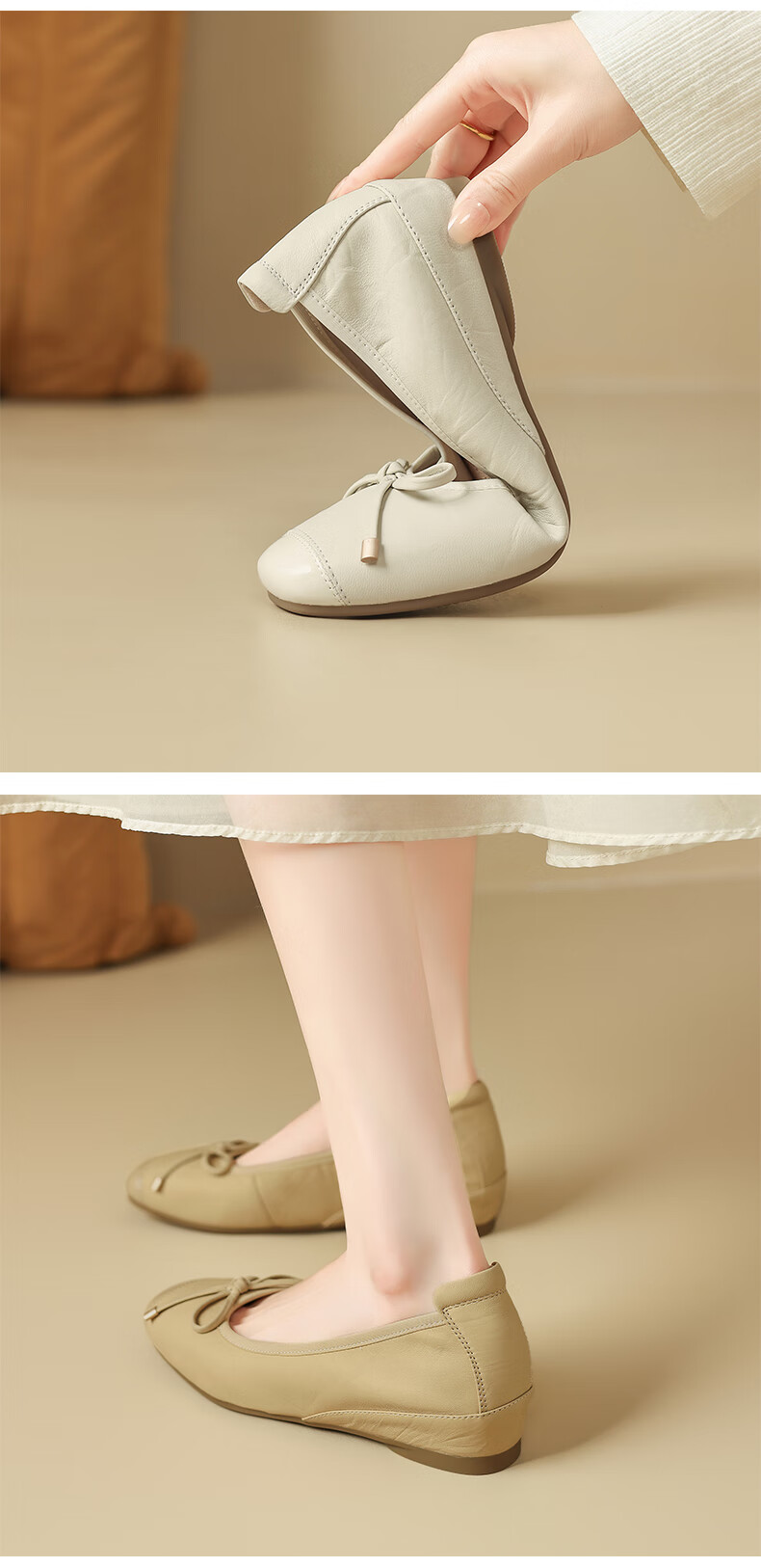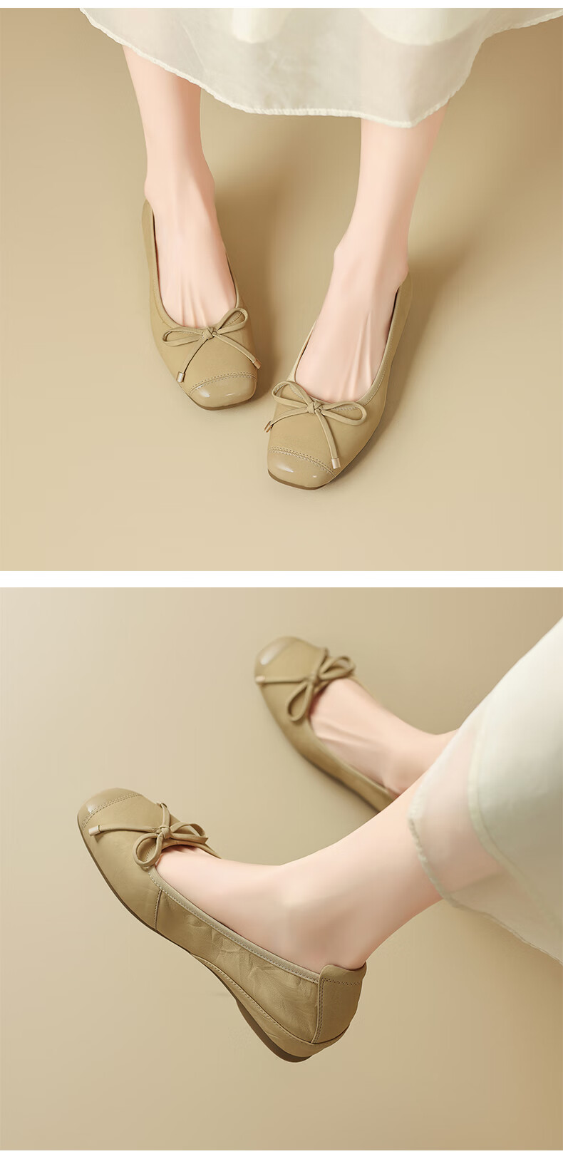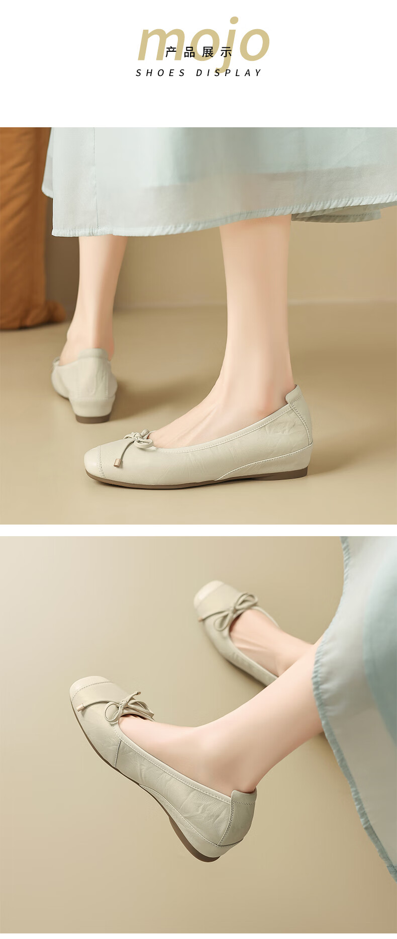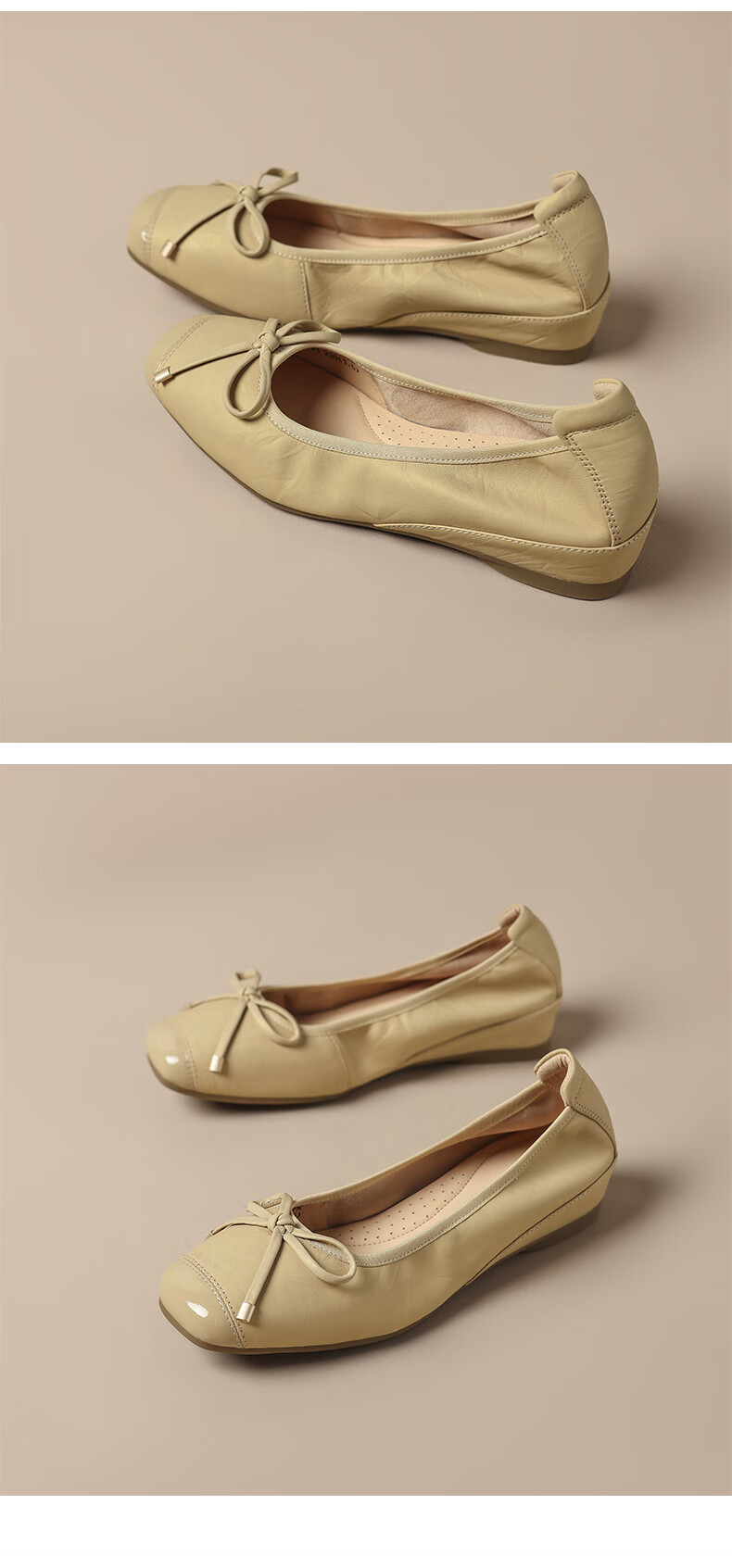星期六(St&Sat)轻奢羊皮时尚玛丽珍鞋女一脚蹬芭蕾鞋蝴蝶结浅口单鞋JXSSD3111WPK 米白色 35