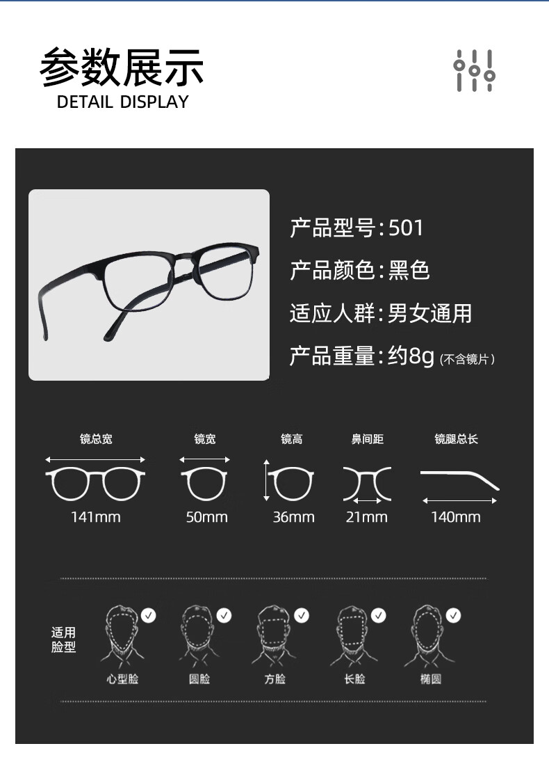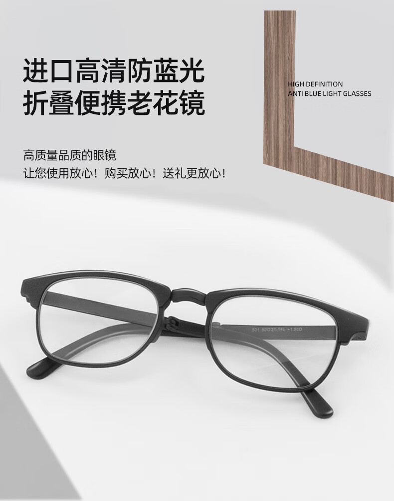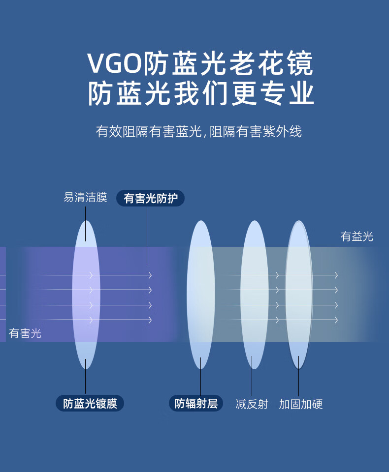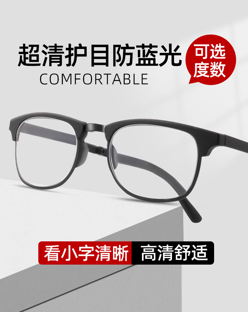 VGO老花镜男女通用时尚超轻高清防蓝光远光镜老年人眼镜501开学