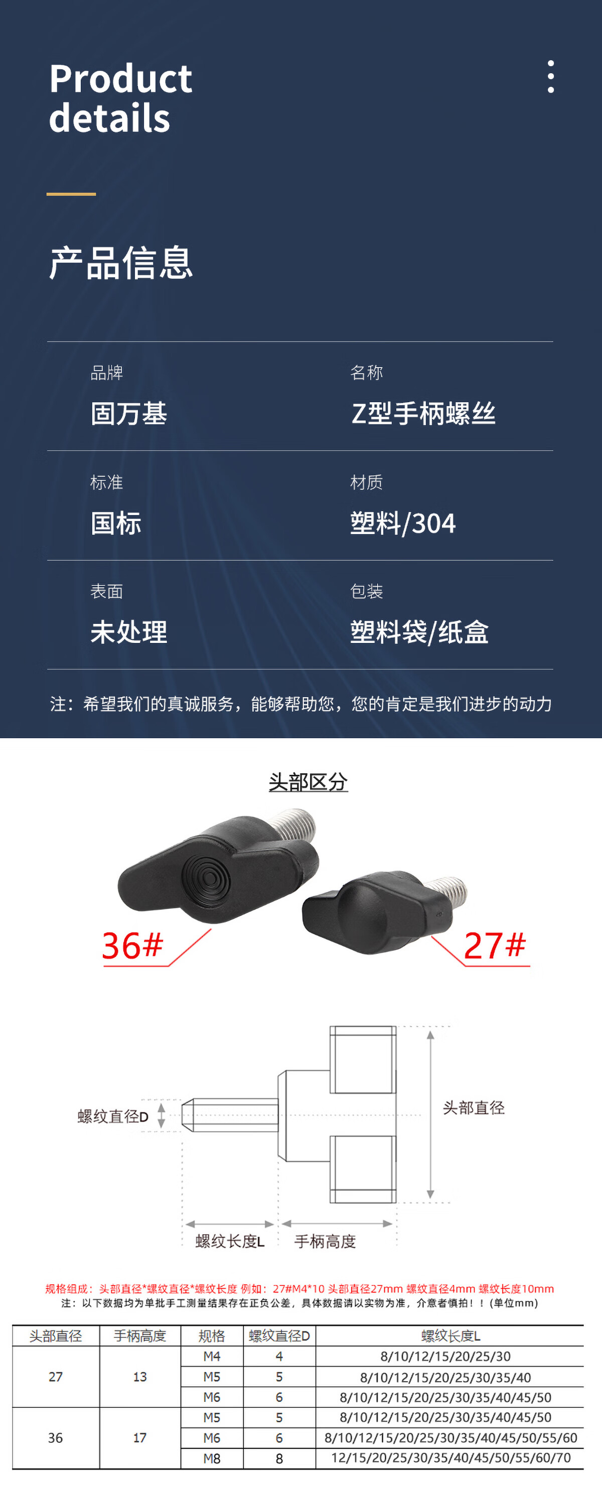 固万基304不锈钢Z型手柄螺丝手拧螺丝塑料头机械把手T形螺栓M4-M8 27#-M4*8[10个]