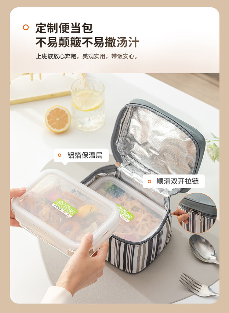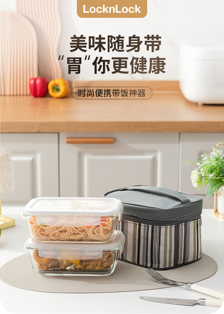 乐扣乐扣耐热玻璃保鲜盒微波炉饭盒便当盒餐盒户外野餐套装750ML*2+包