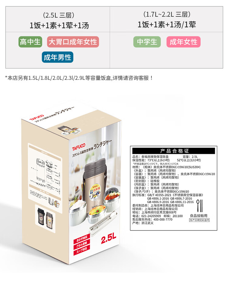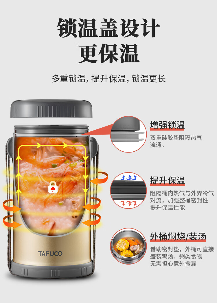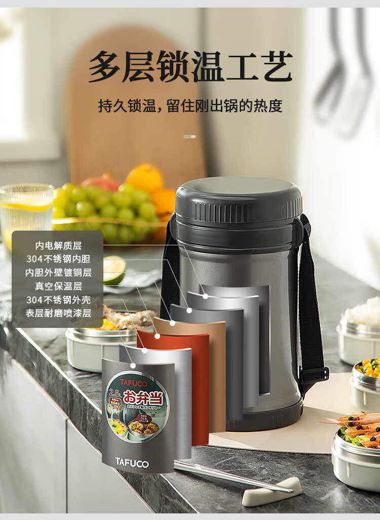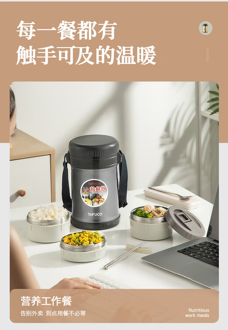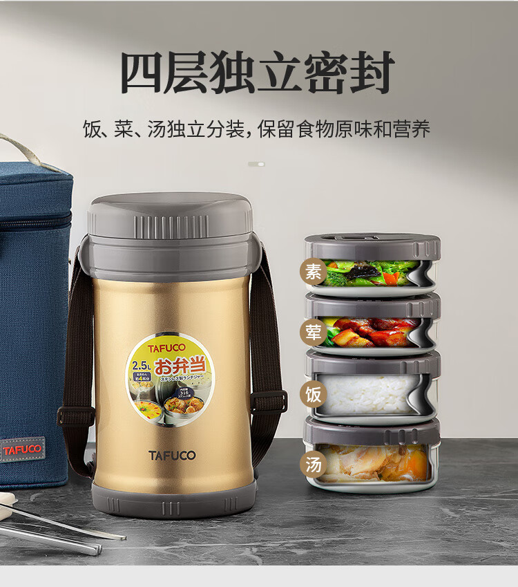 泰福高(TAFUCO)保温饭盒小超长保温汤桶多层便携24小时上班族学生便当餐盒T2538
