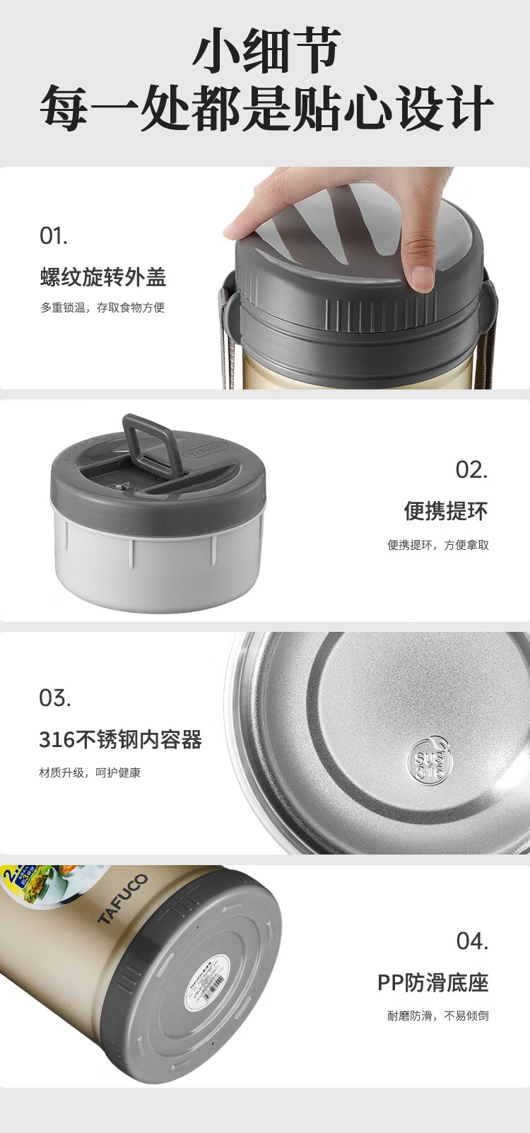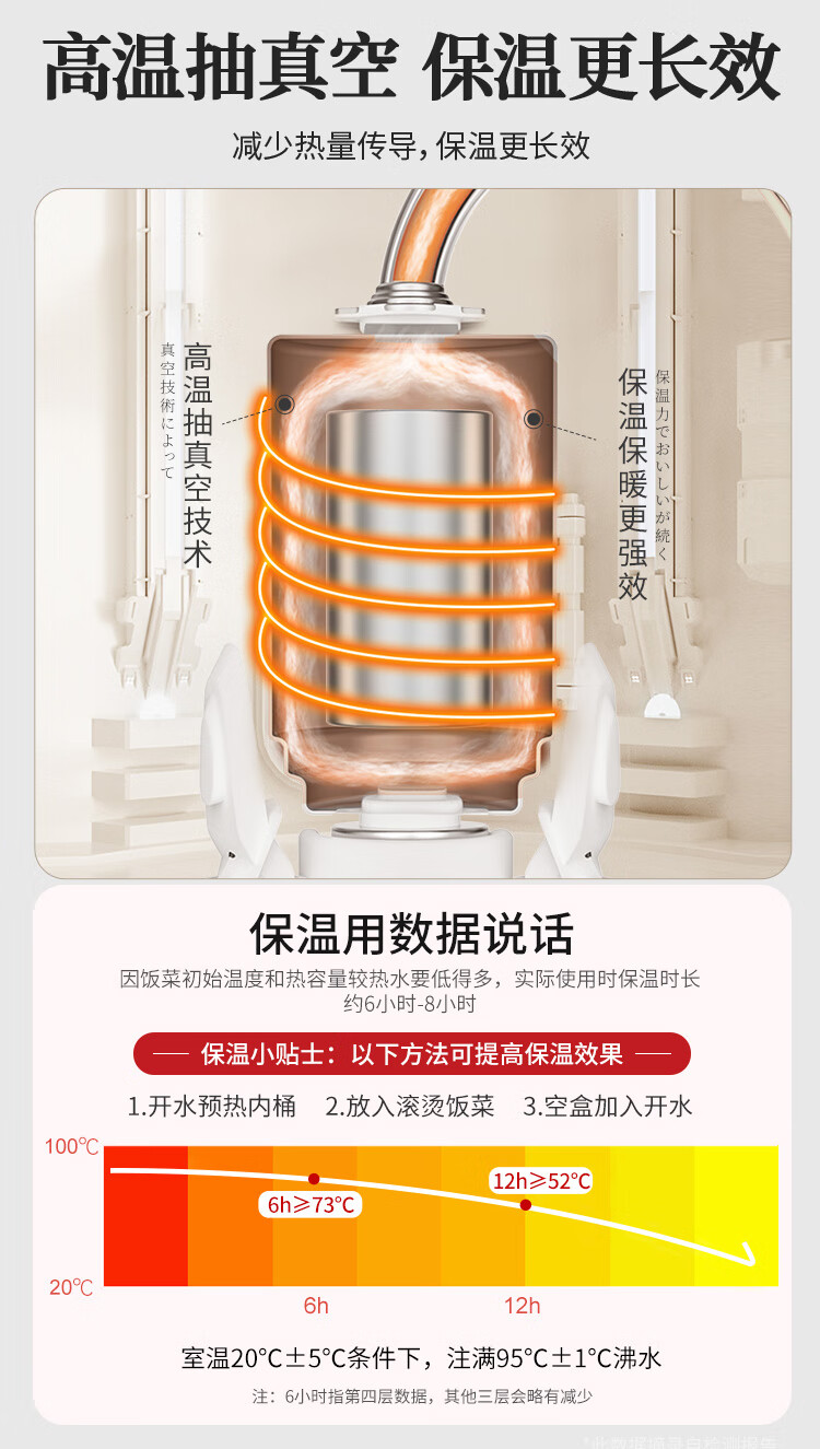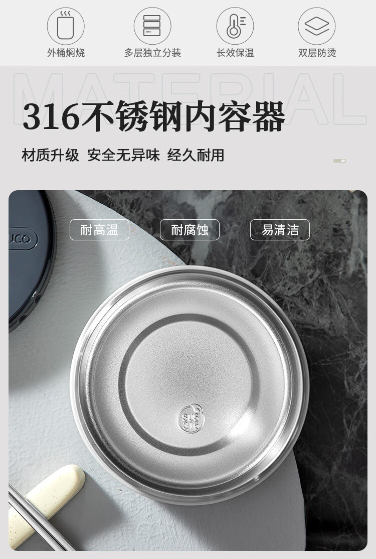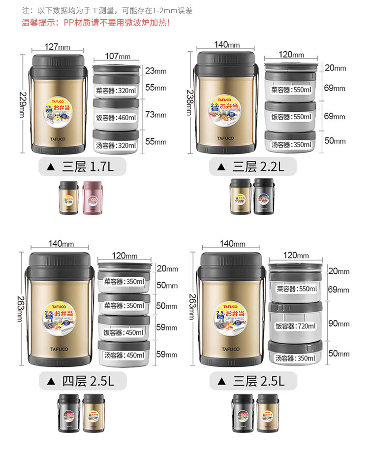 泰福高(TAFUCO)保温饭盒小超长保温汤桶多层便携24小时上班族学生便当餐盒T2538