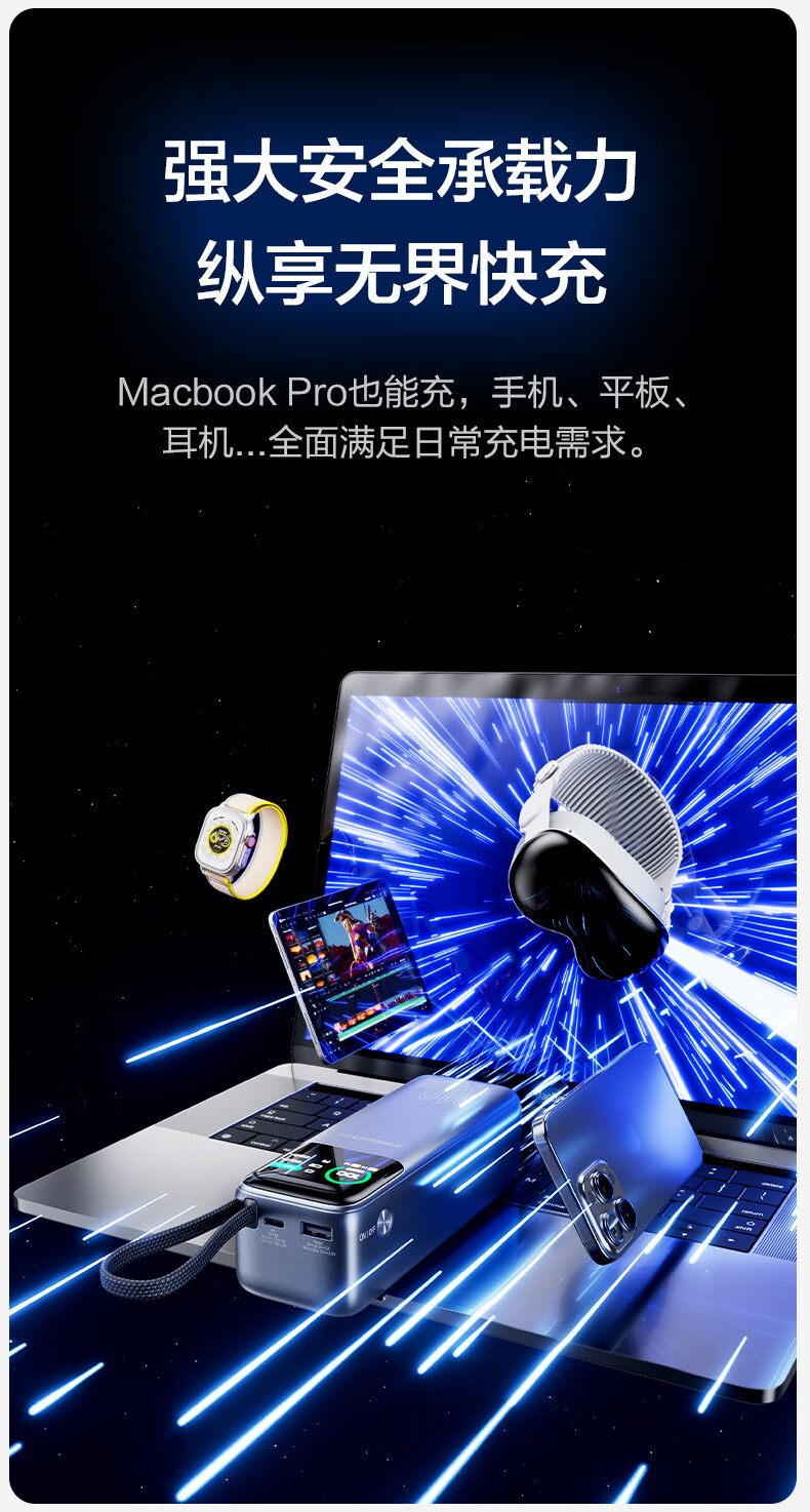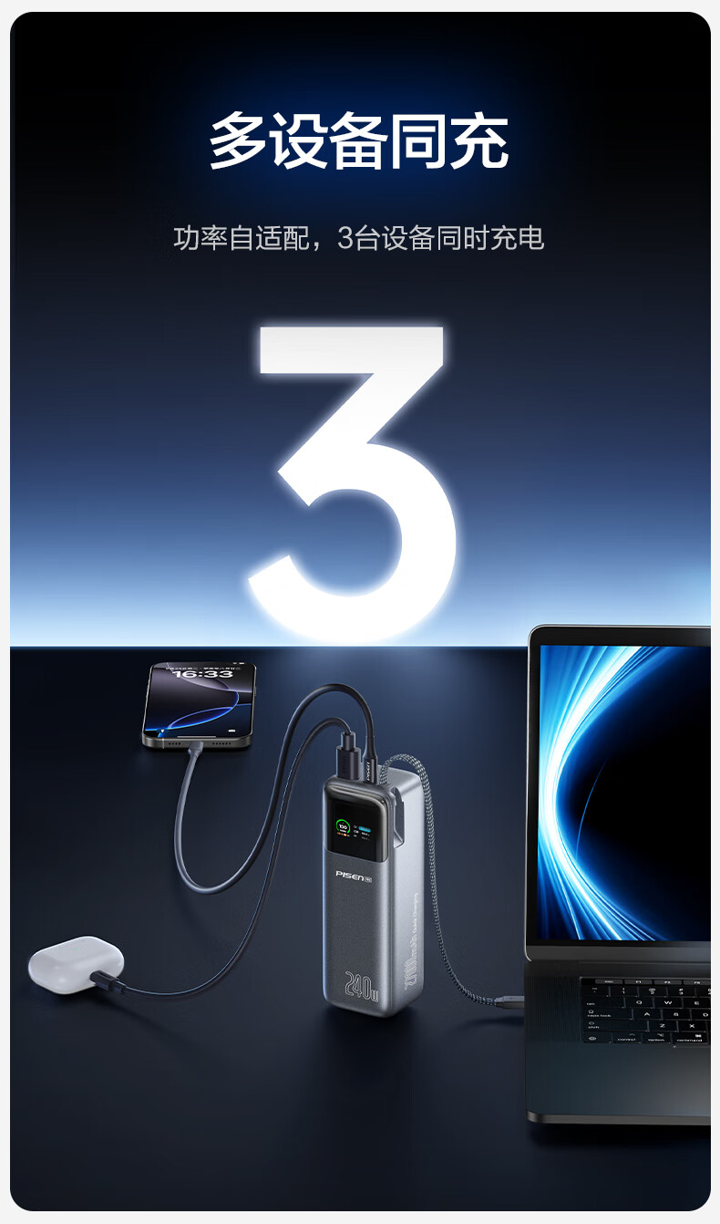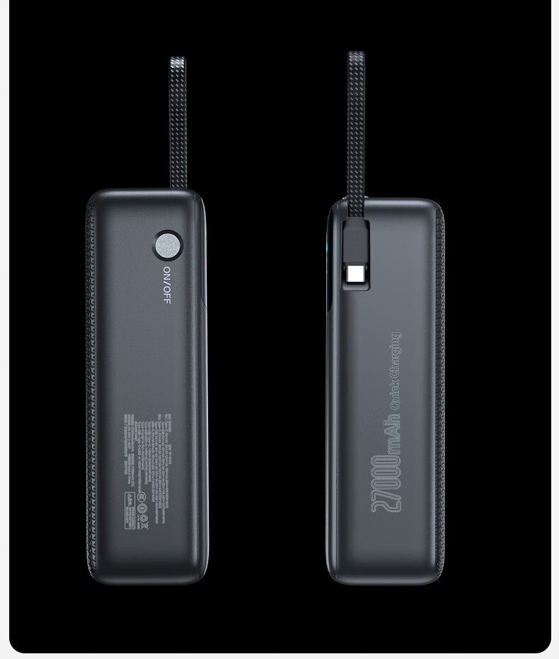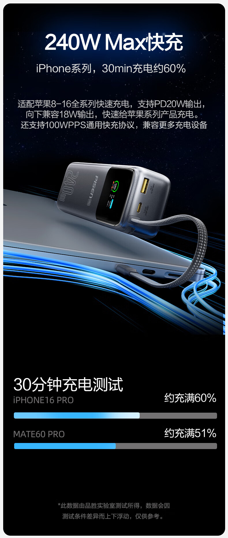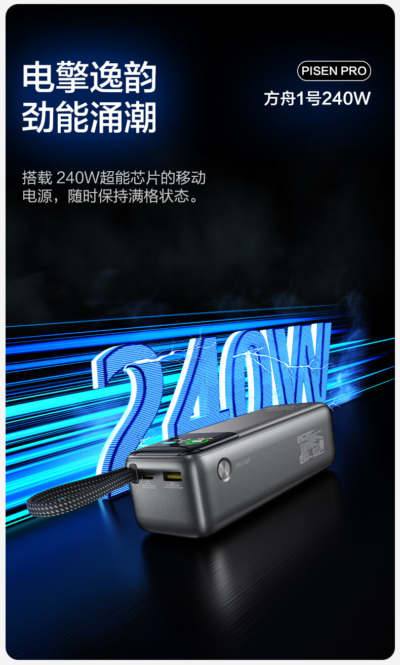 品胜充电宝240W总功率带线140W快充27000mAh移动电源可上飞机适用小米17苹果笔记本17promax/Air60W40W