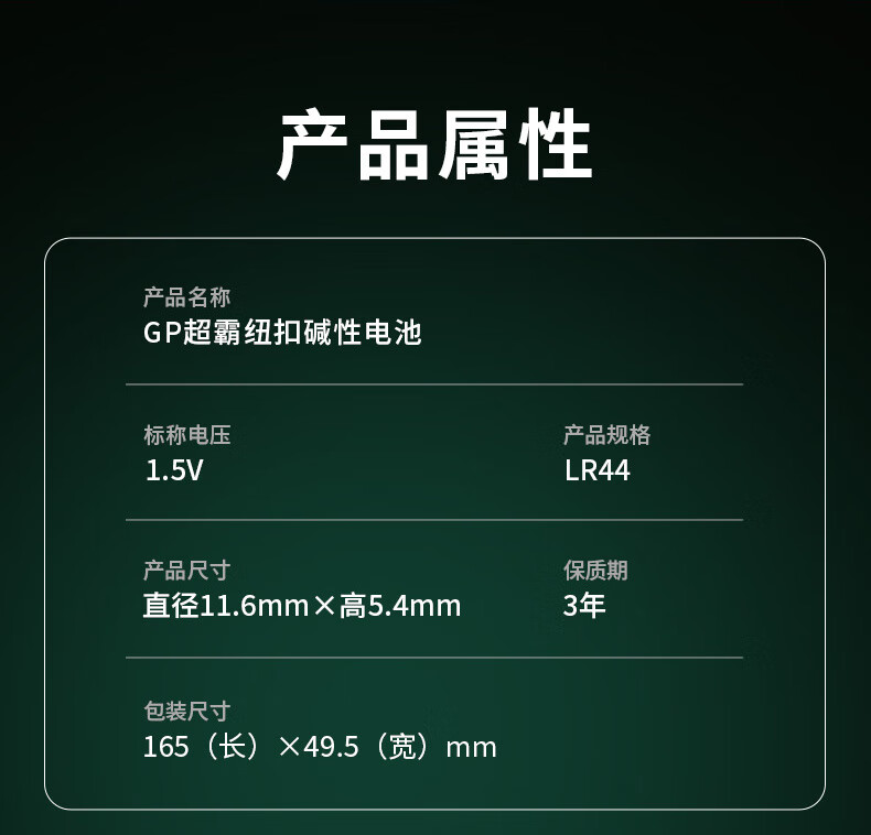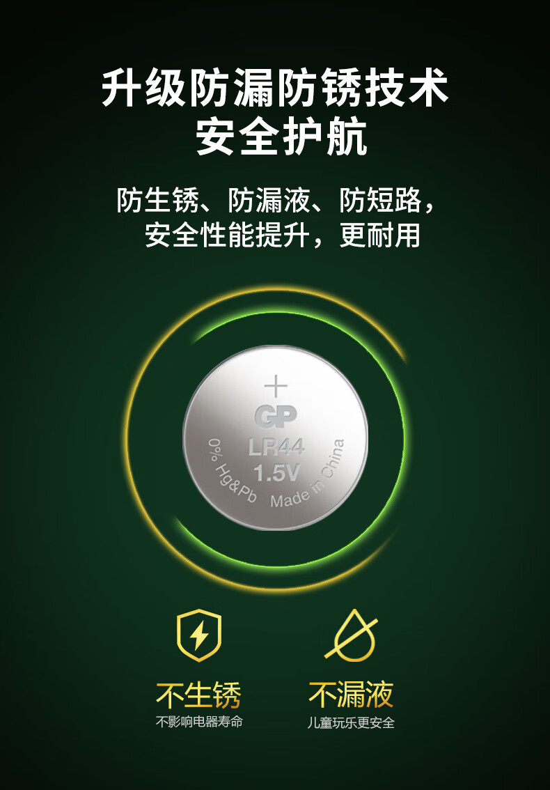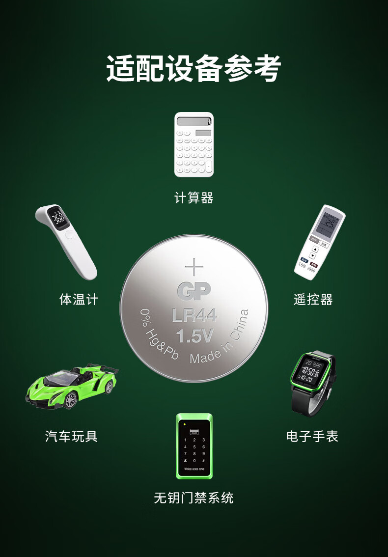 超霸(GP)纽扣电池LR44/AG13/A76/L1154/SR443/357A/10粒电子手表遥控器电子秤汽车钥匙门铃等电池商超同款