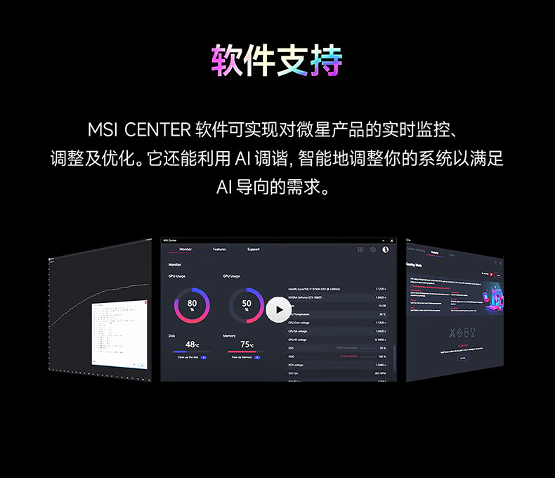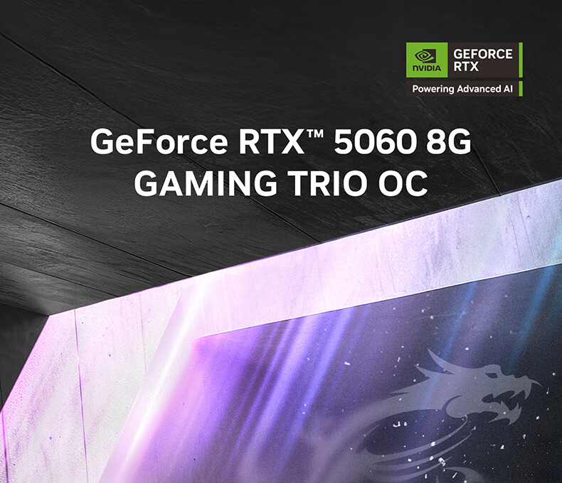 微星(MSI)魔龙 GeForce RTX 5060 8G GAMING TRIO OC AI推理 电竞游戏设计智能学习独立显卡