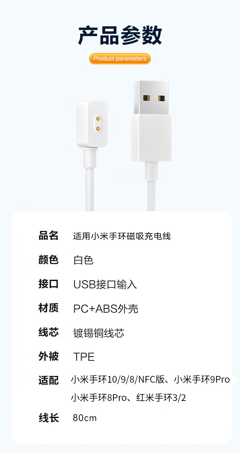 科沃【热销百万】适用于小米手环10/9/8充电线Pro/NFC/Redmi3/2红米watch543青春版充电器磁吸快充底座