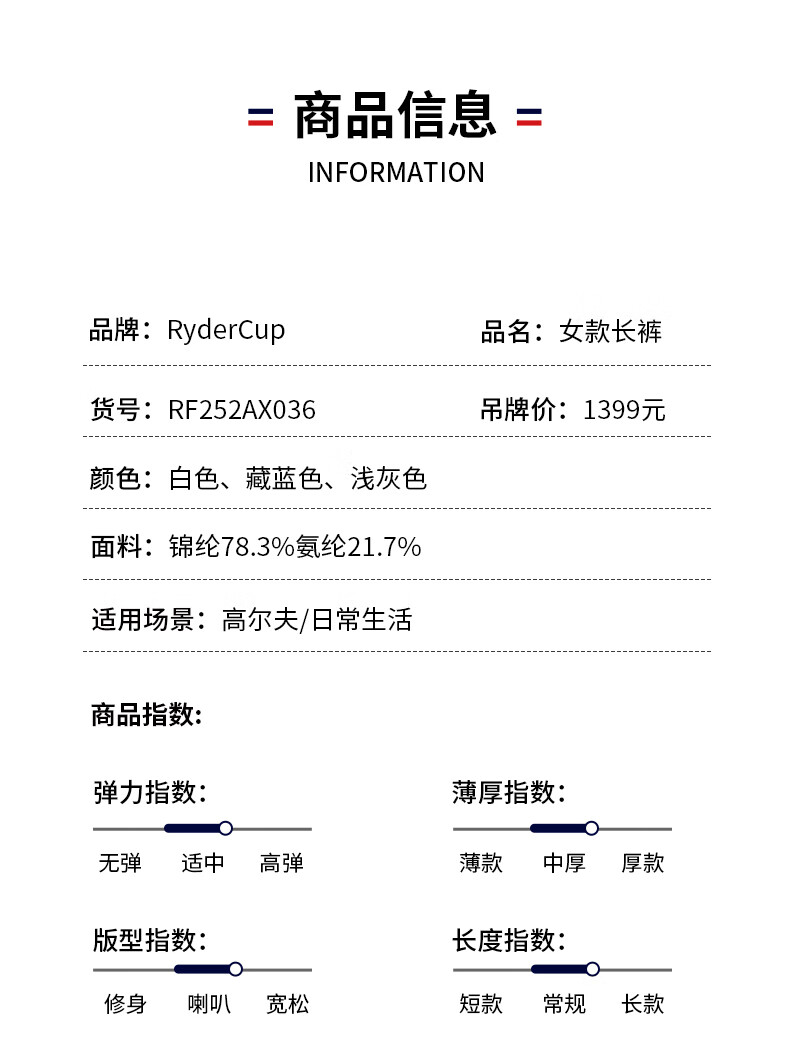 RYDER CUP莱德杯高尔夫女装长裤25秋冬弹力舒适磨毛保暖防泼水运动喇叭裤女 白色 L