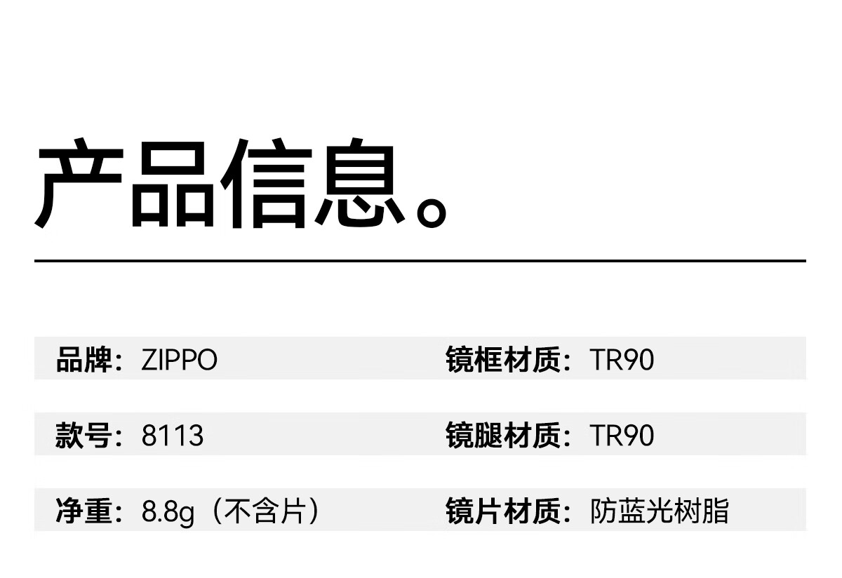 ZIPPO美国防蓝光老花镜男女士日系超轻进口基材高清镜片礼物8113开学