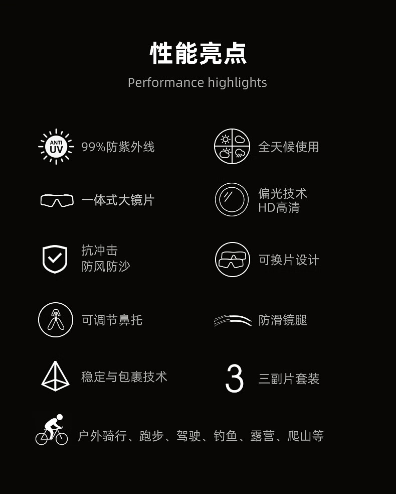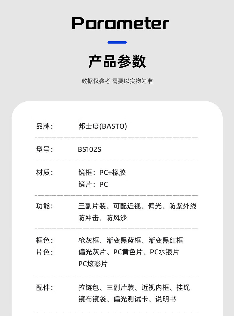 邦士度运动眼镜太阳镜户外防紫外线骑行跑步眼镜BS102S高清偏光系列开学