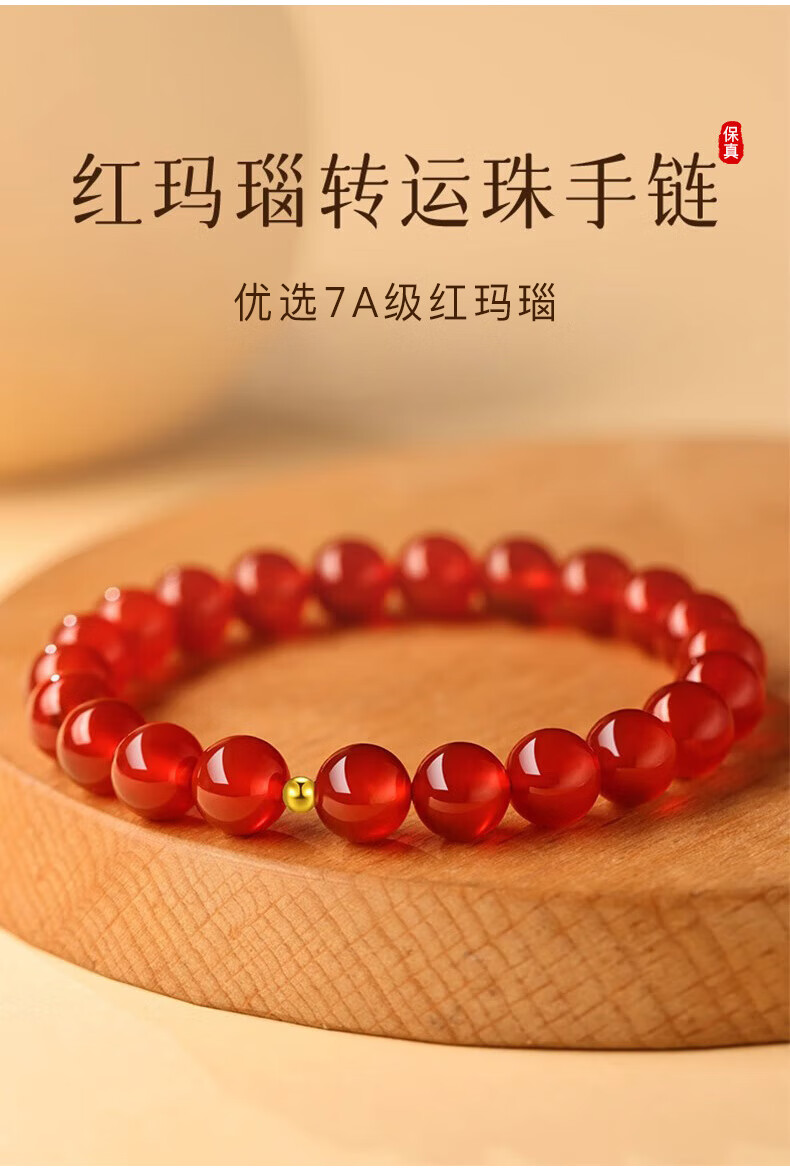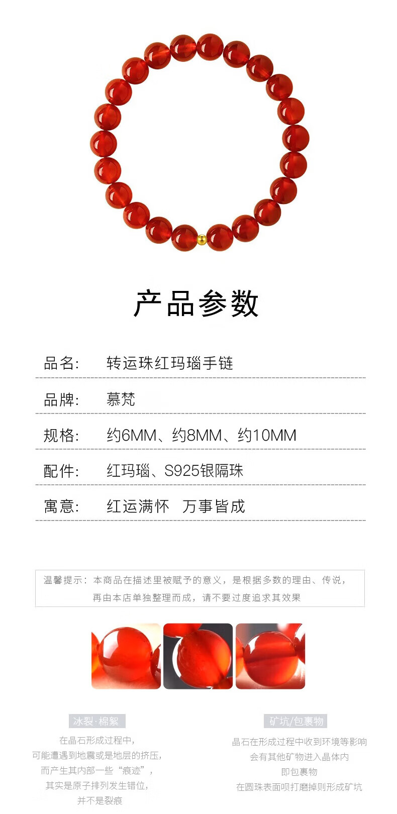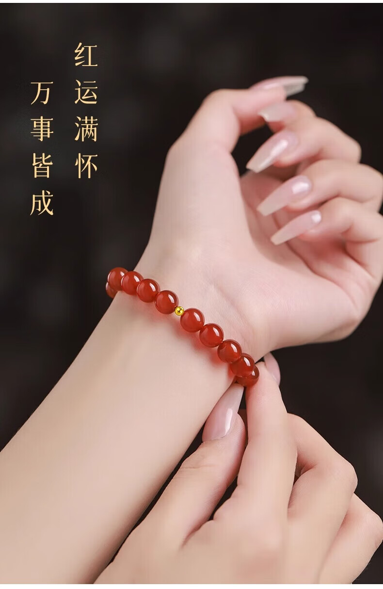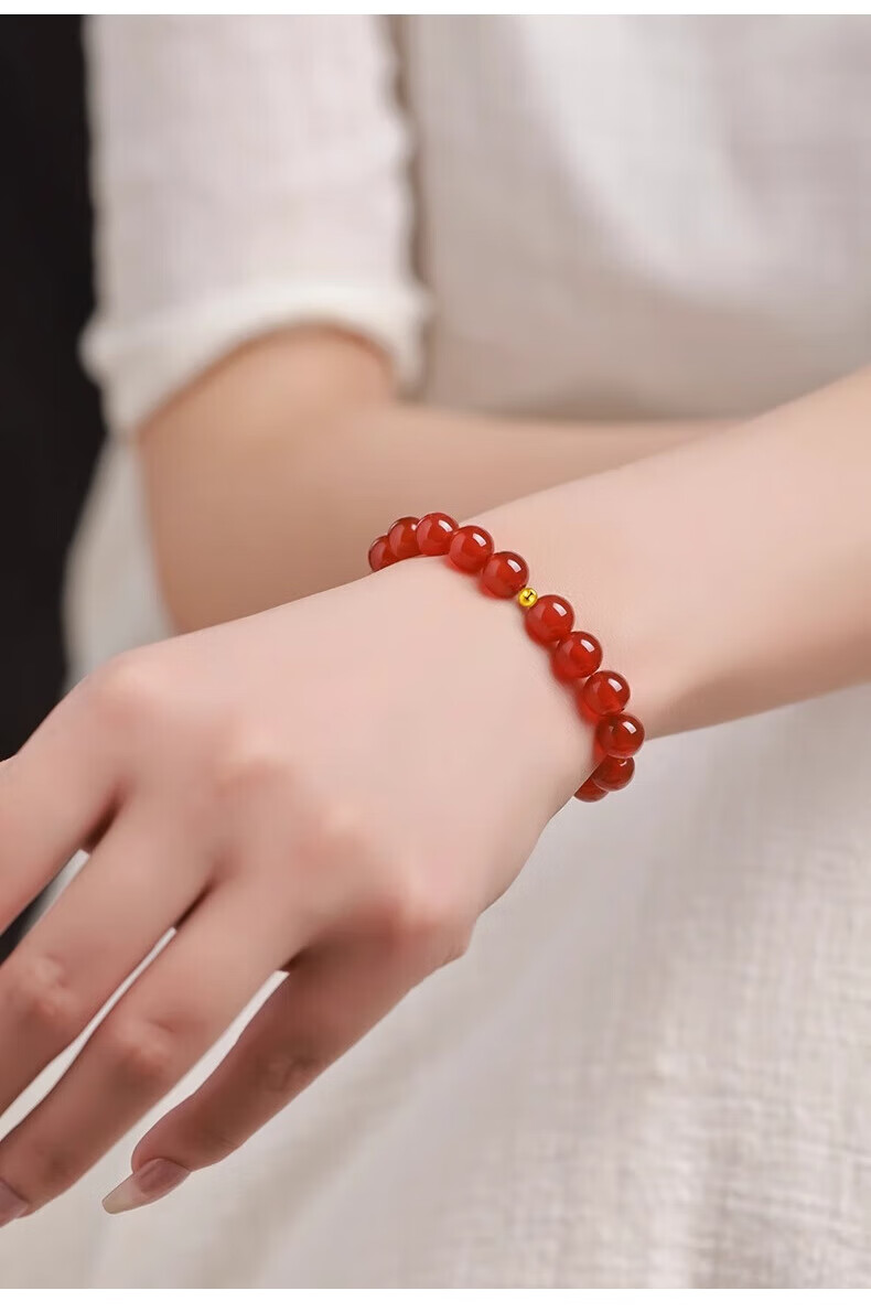 慕梵红玛瑙转运珠手串S925银简约手链生日礼物送男女朋友礼物带礼盒