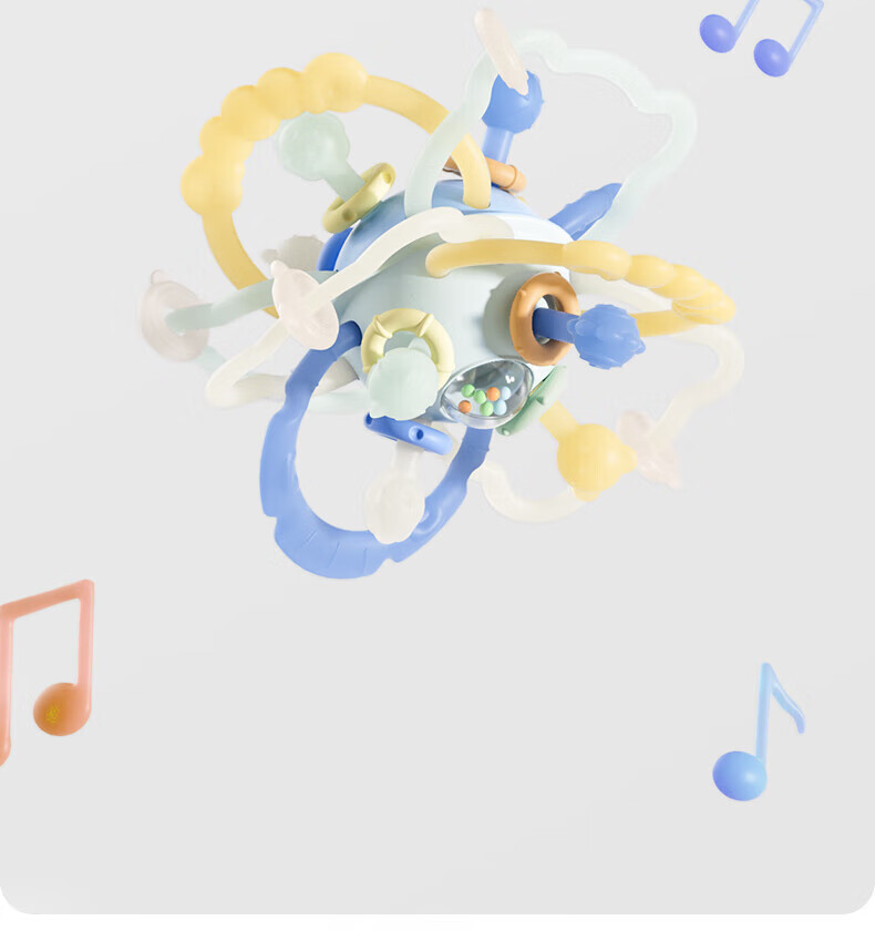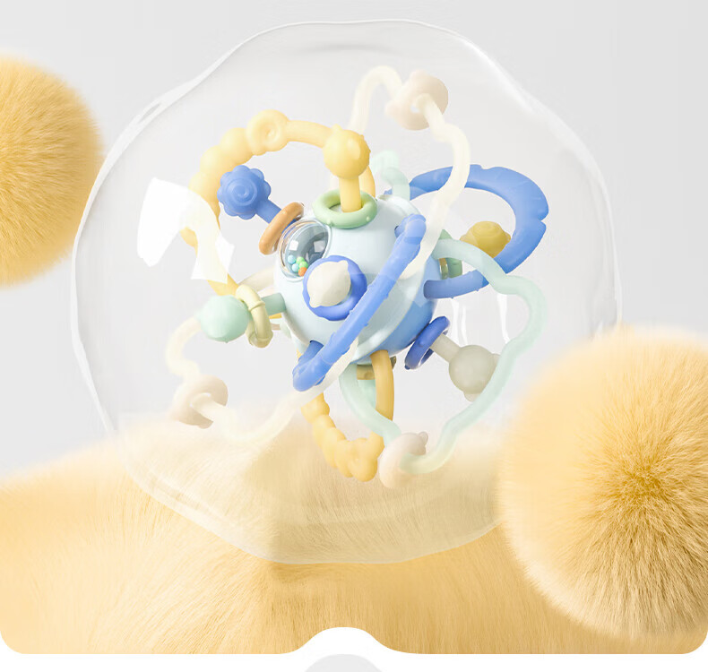 贝肽斯曼哈顿手抓球婴儿童硅胶可咬牙胶磨牙安抚玩具宝宝早教益智玩具 安柏蓝