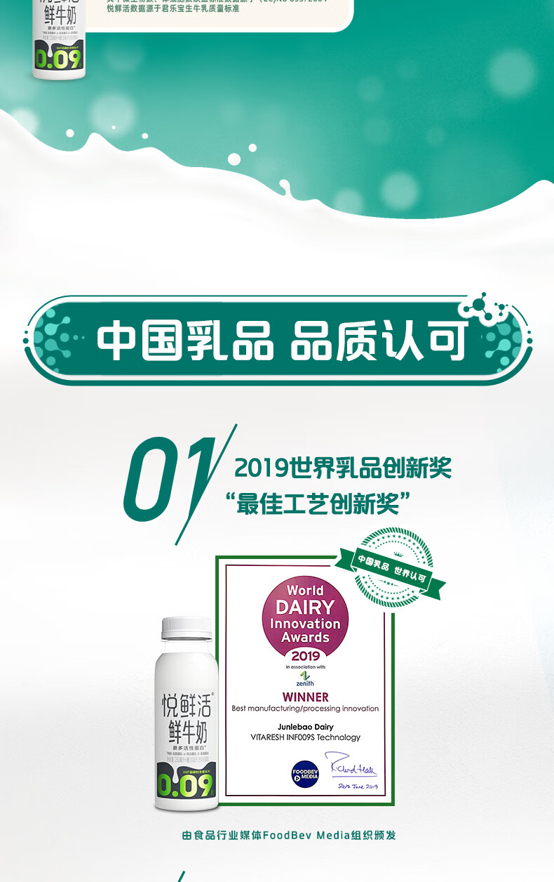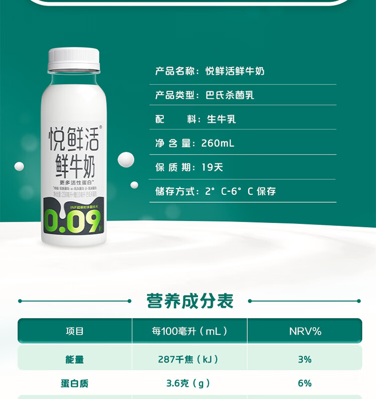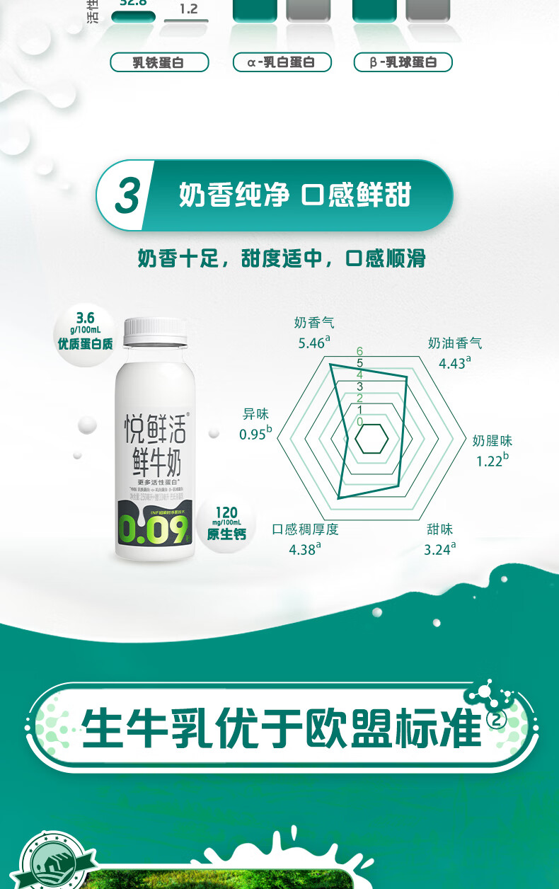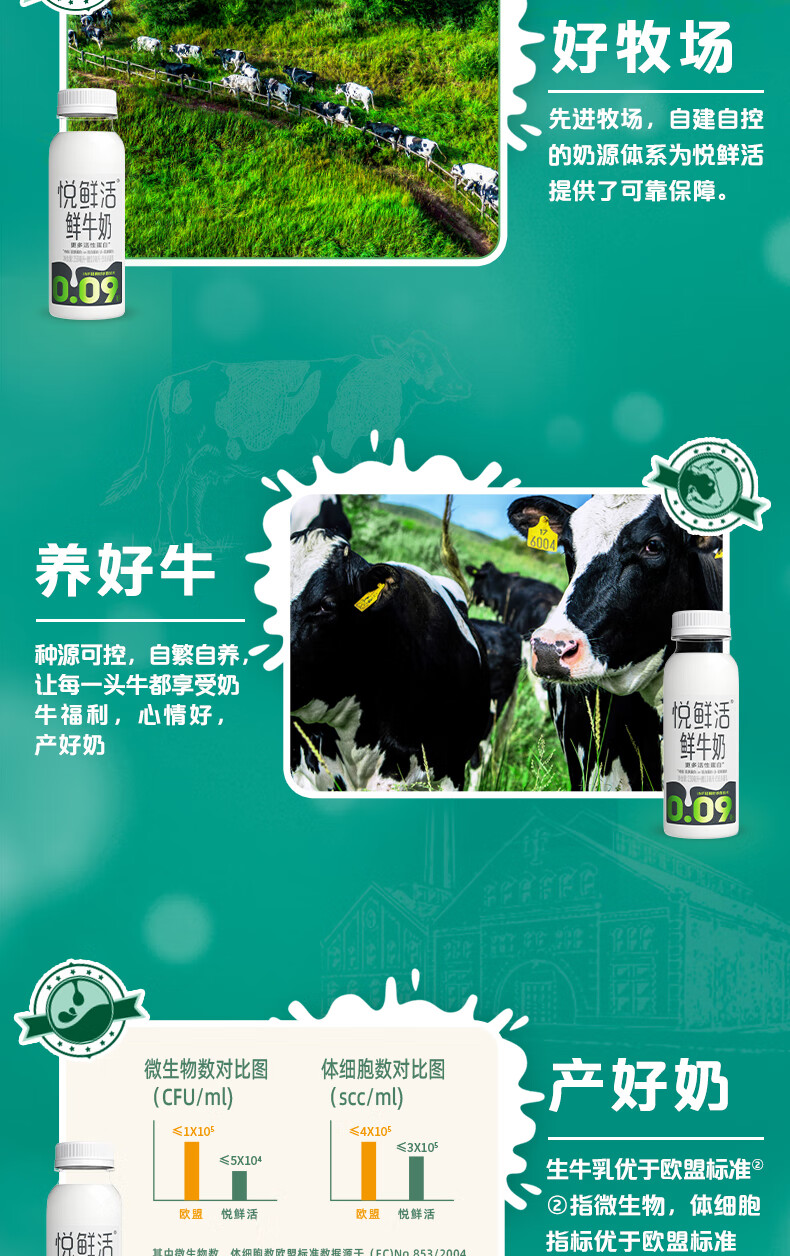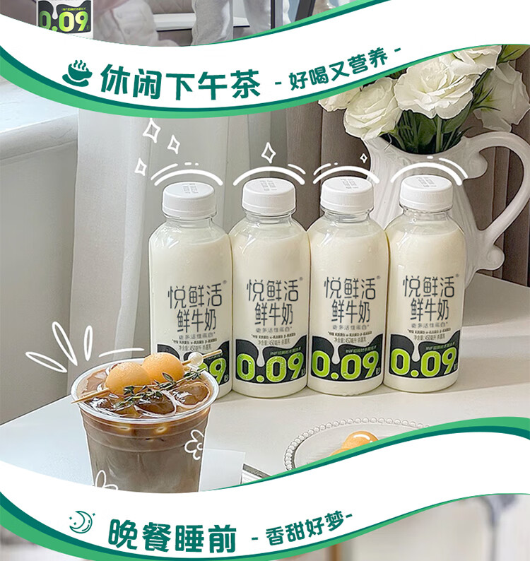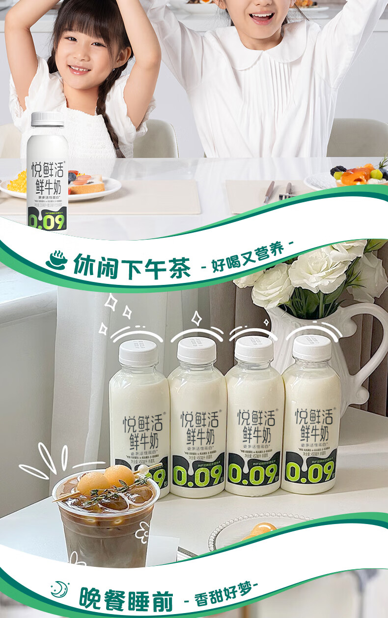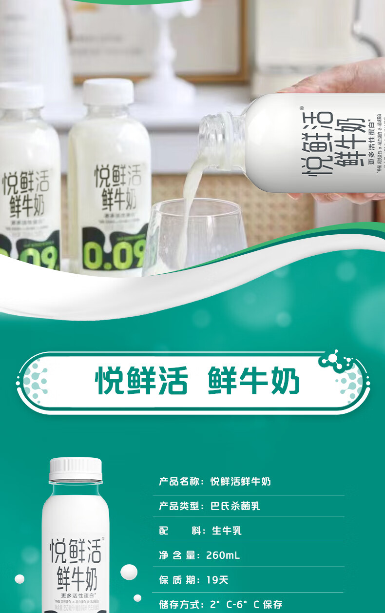 悦鲜活低温鲜牛奶保留更多活性蛋白450ml组合 A2型260ml*5瓶+260*5瓶