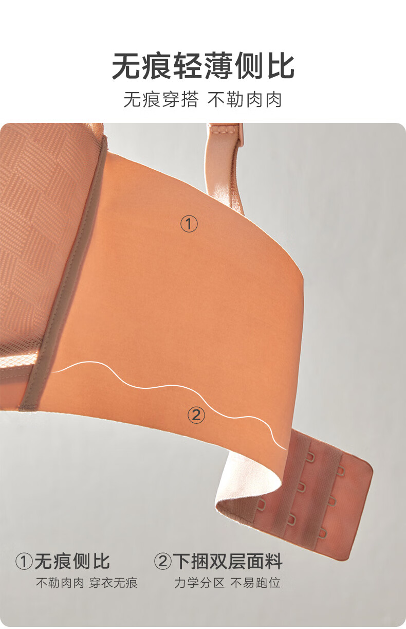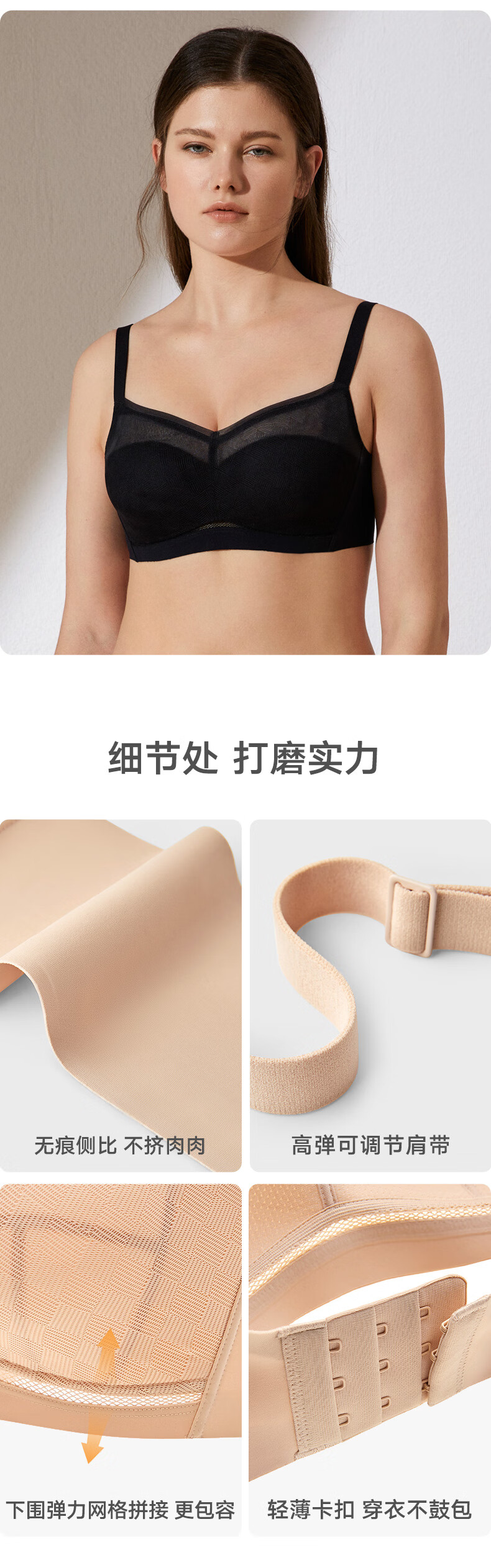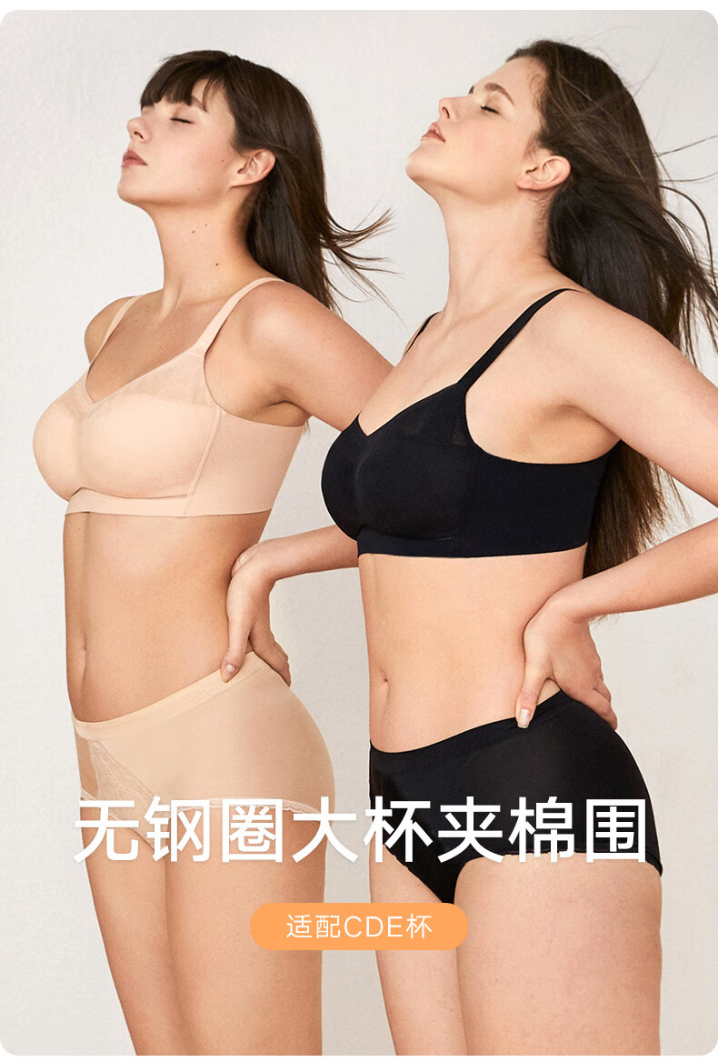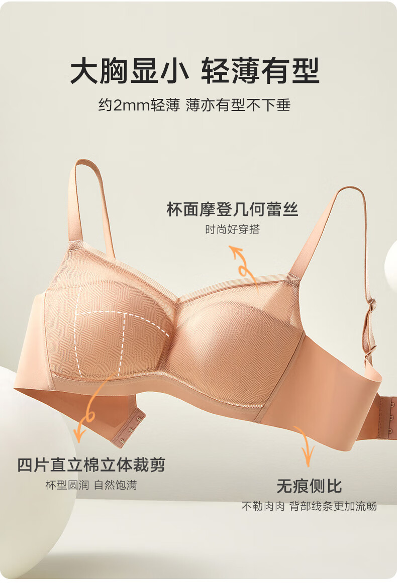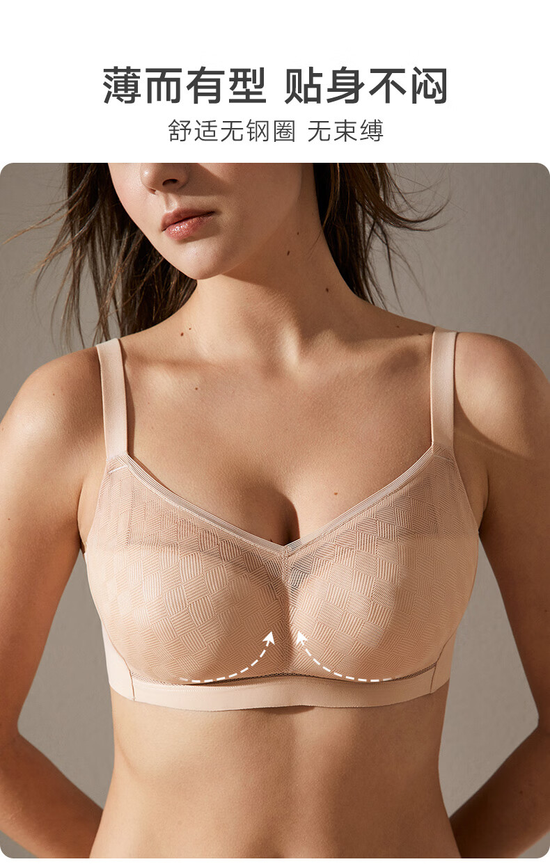 曼妮芬无钢圈大杯夹棉文胸轻薄大胸显小内衣 肤色 80C