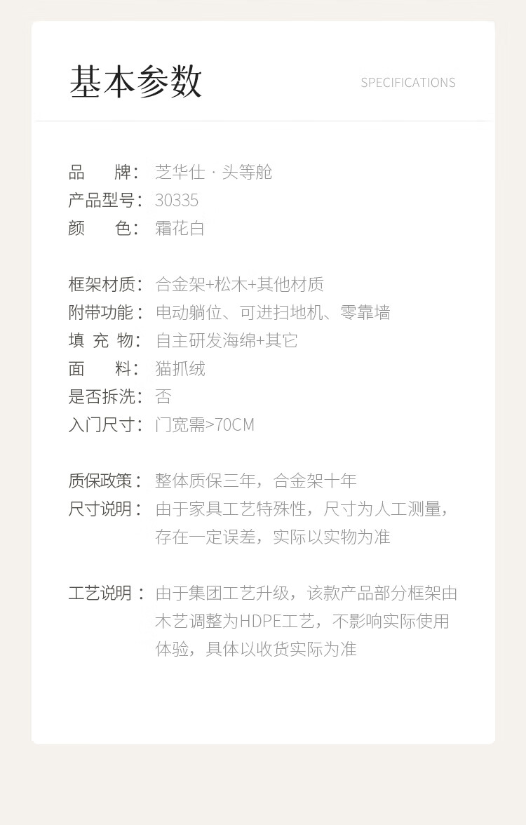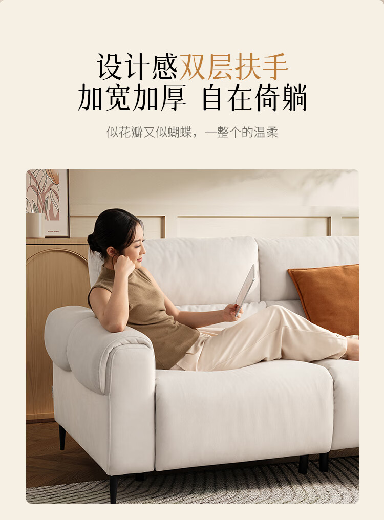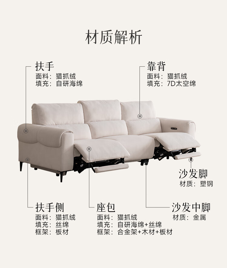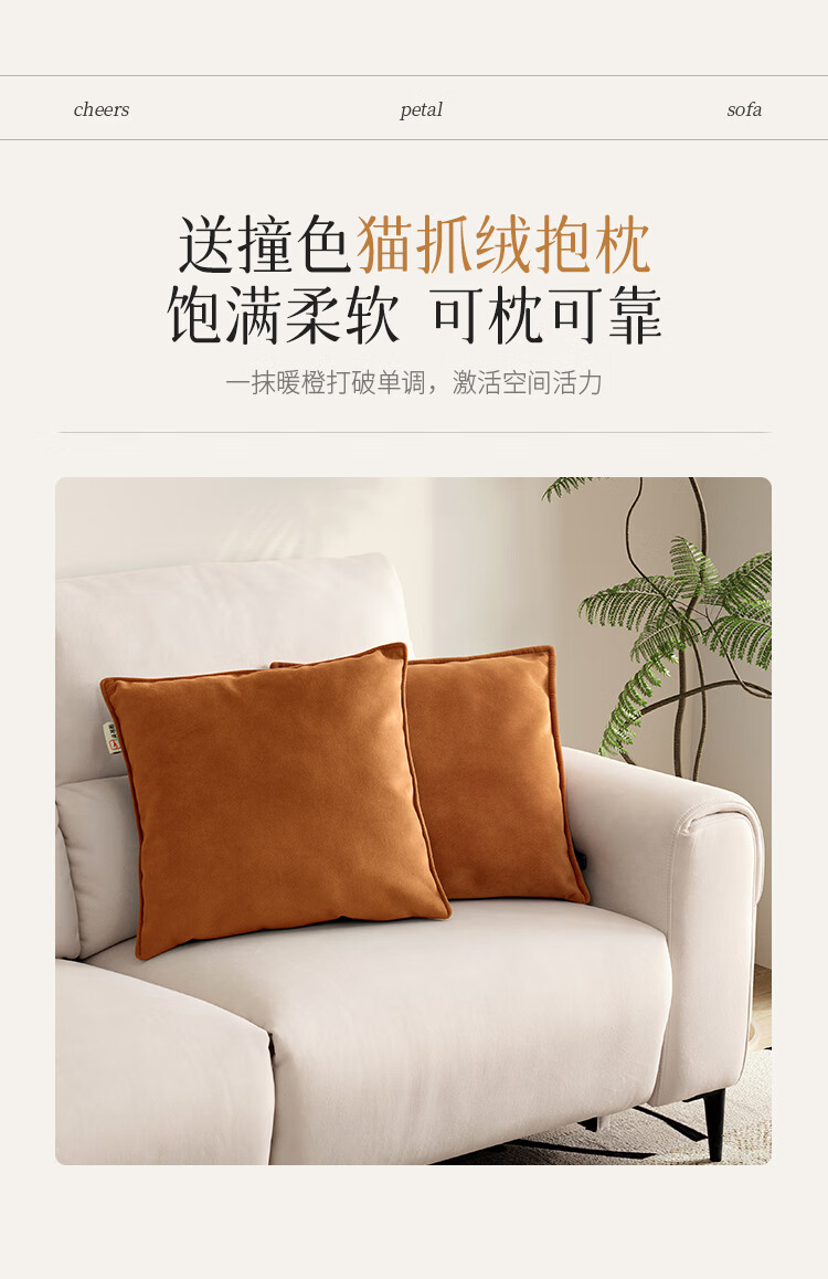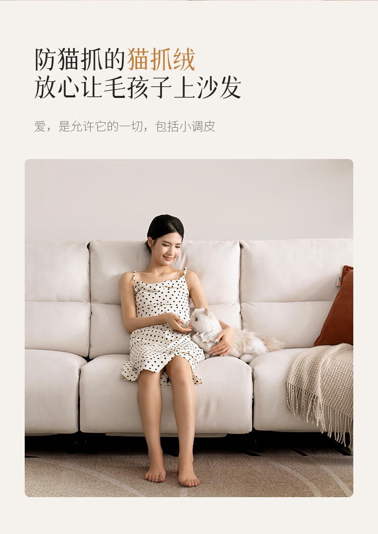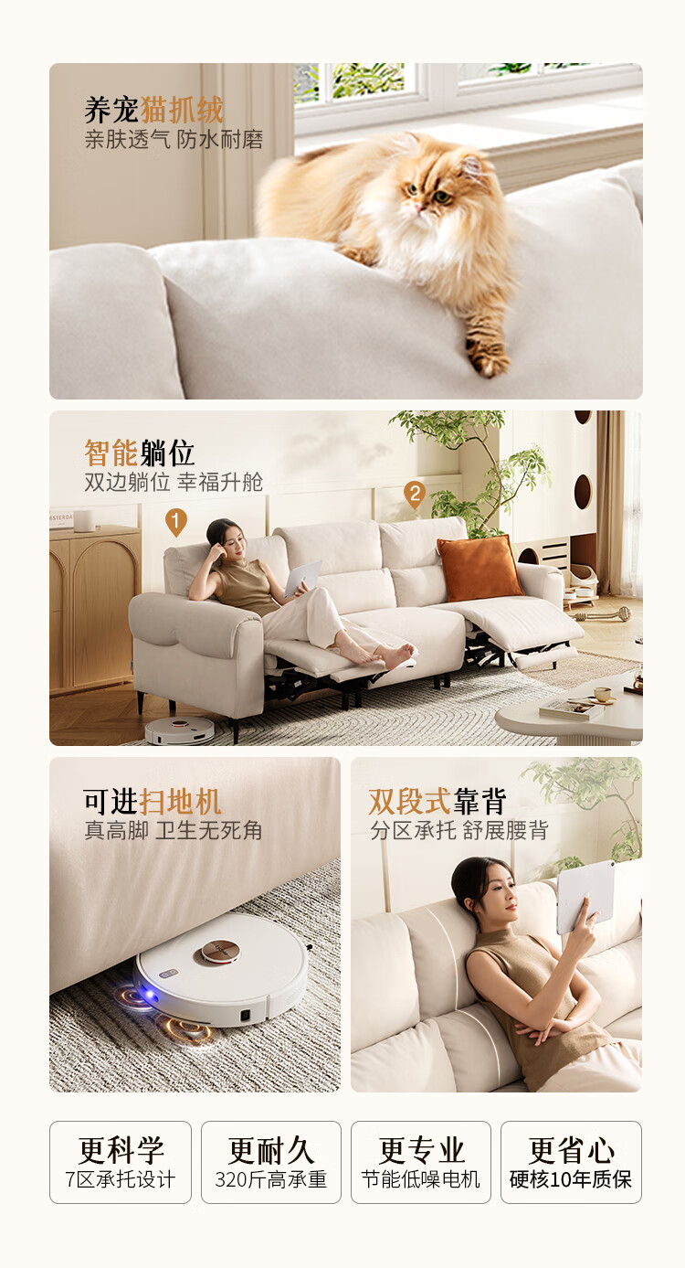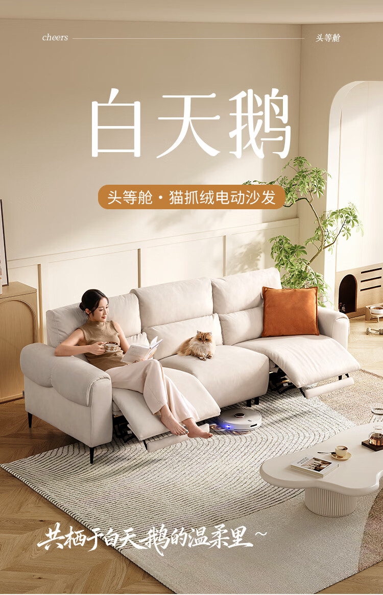芝华仕(CHEERS)头等舱时尚猫抓绒布沙发零靠墙奶油风客厅家具30335白2.72M双电
