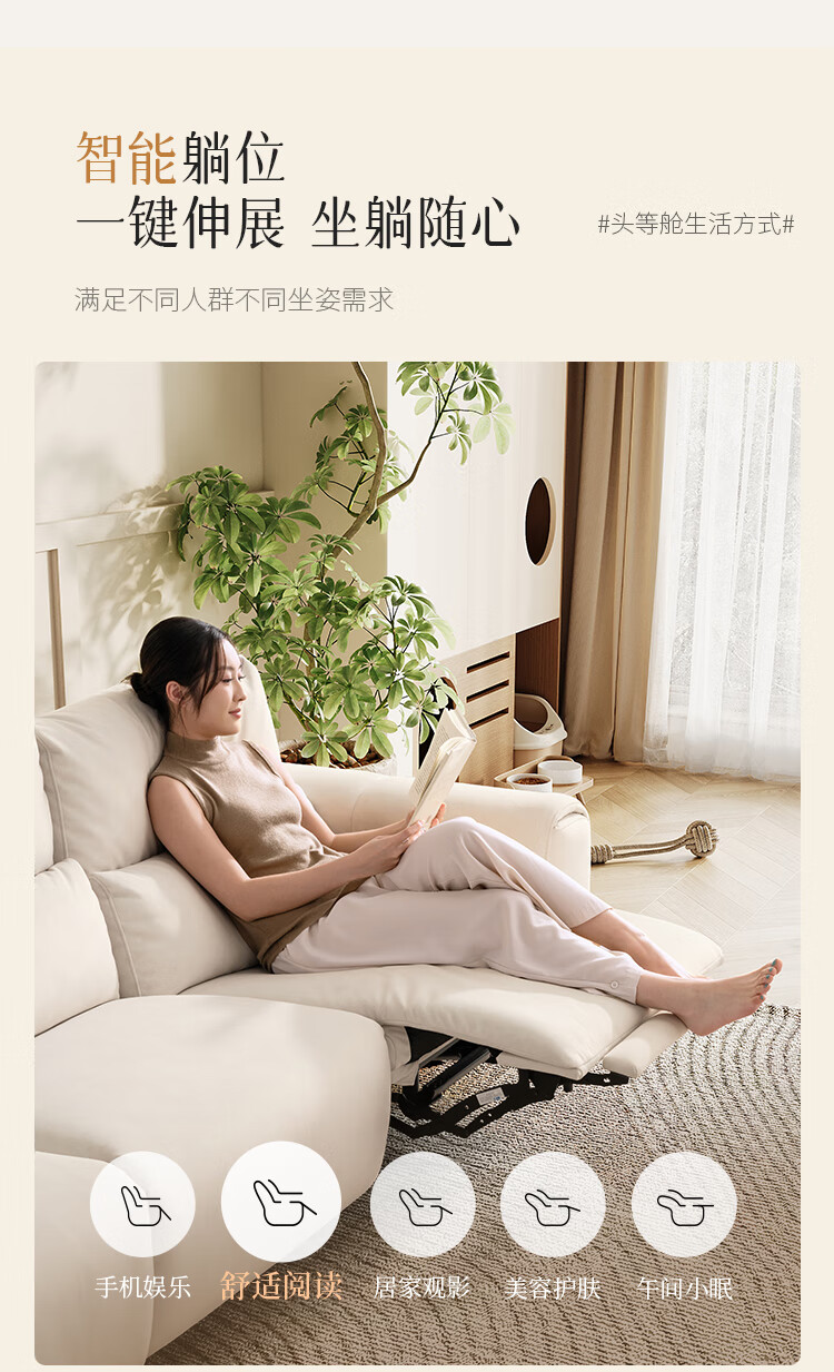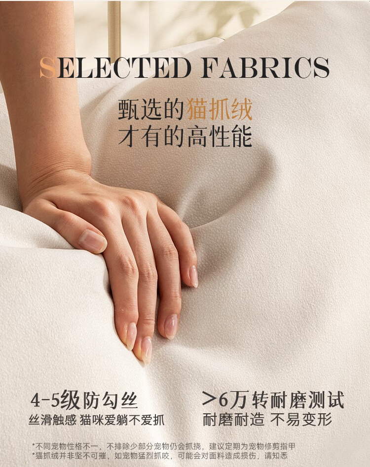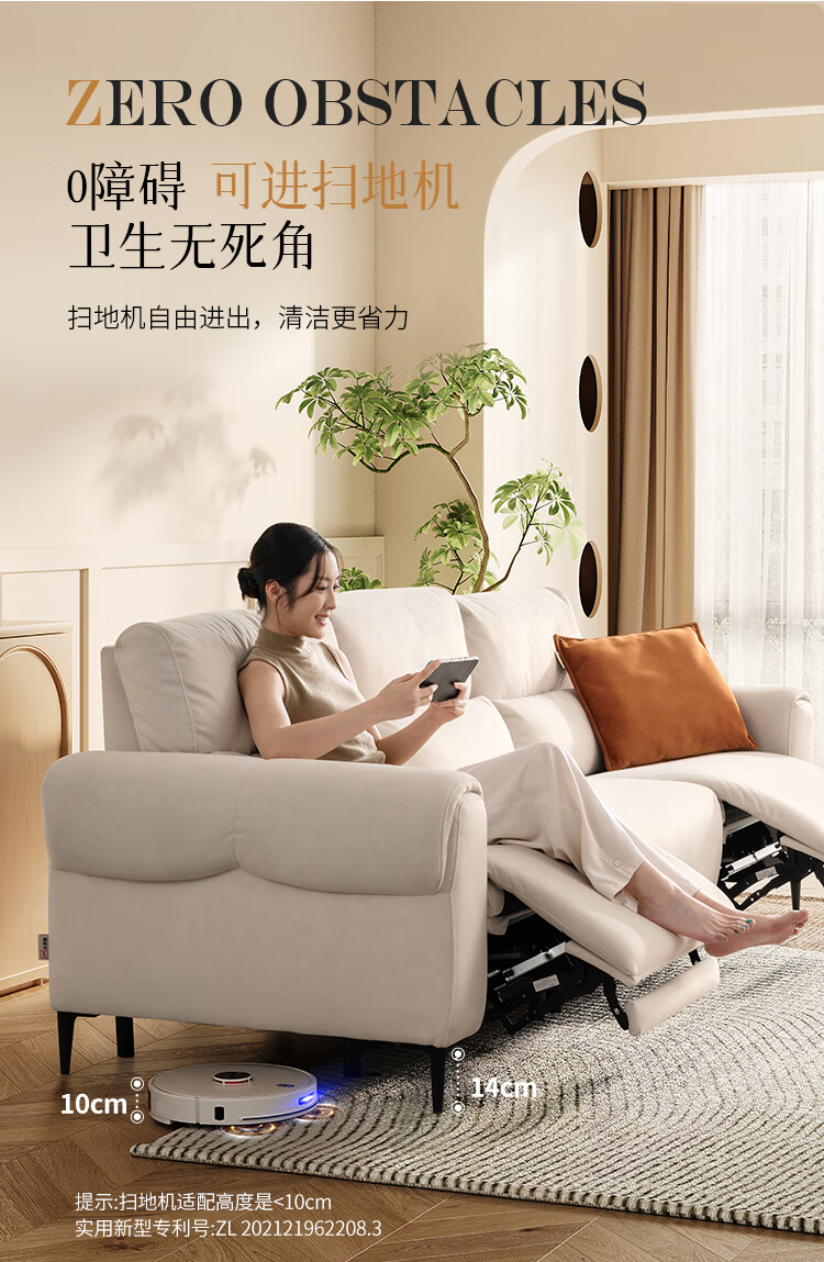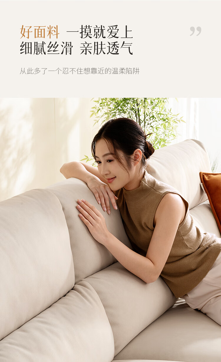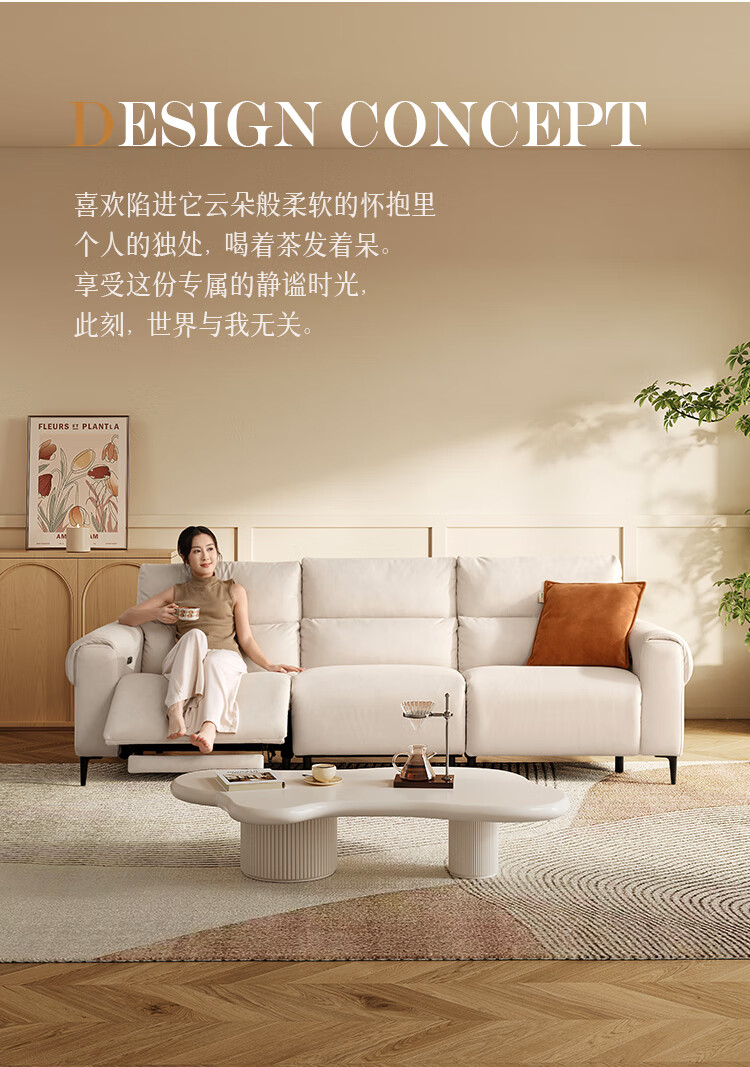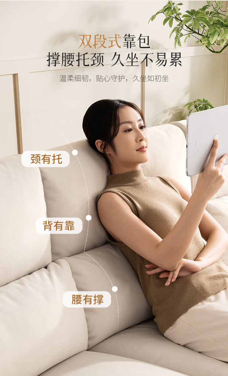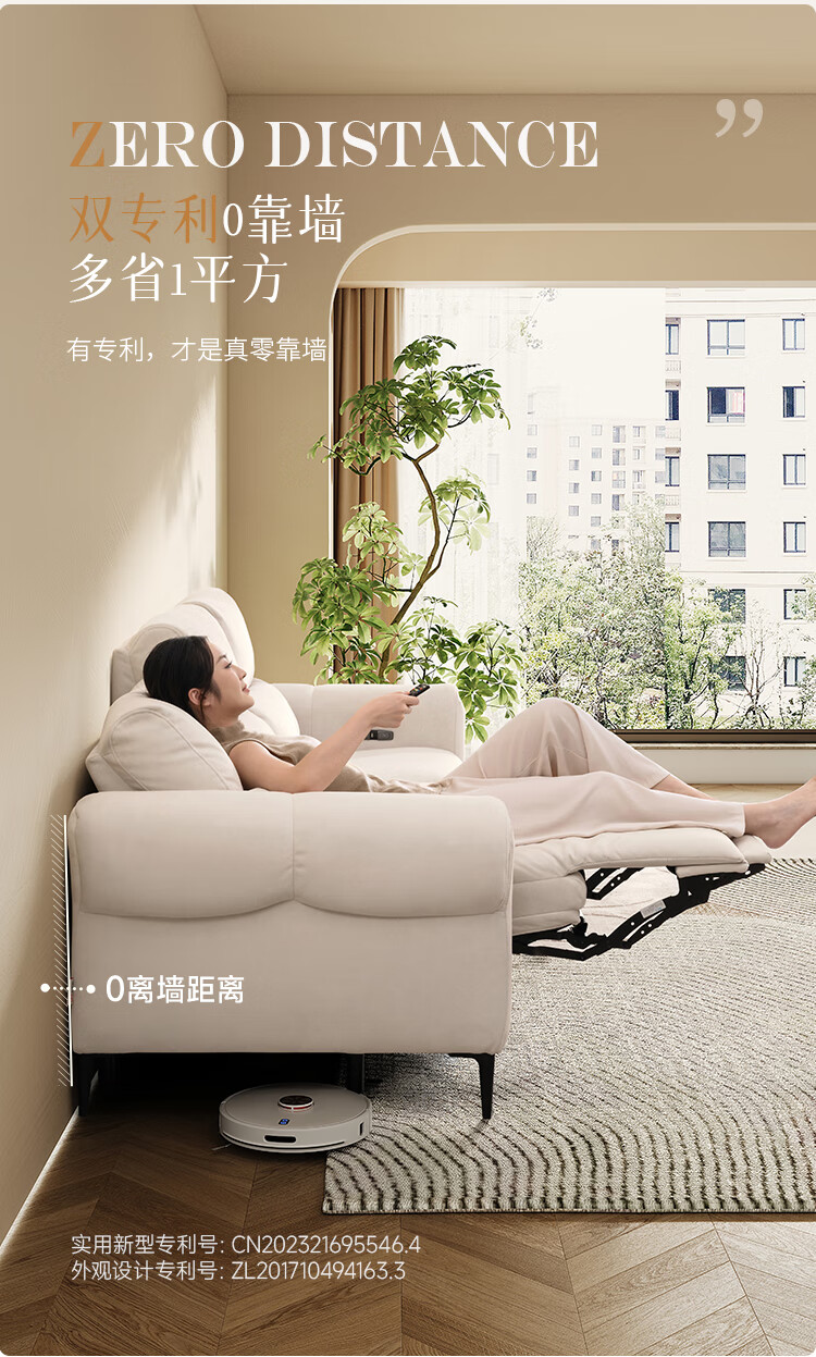 芝华仕(CHEERS)头等舱时尚猫抓绒布沙发零靠墙奶油风客厅家具30335白2.72M双电