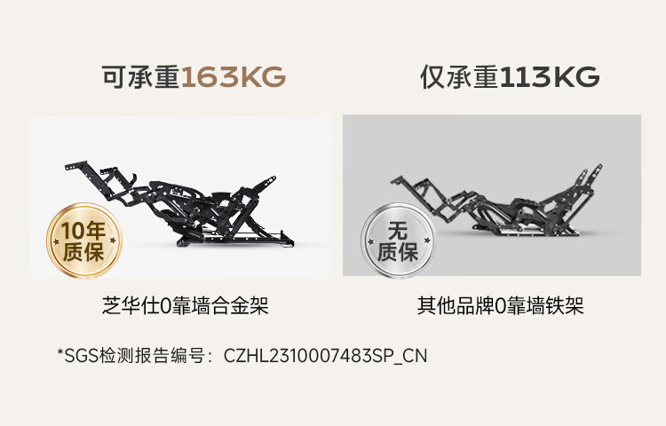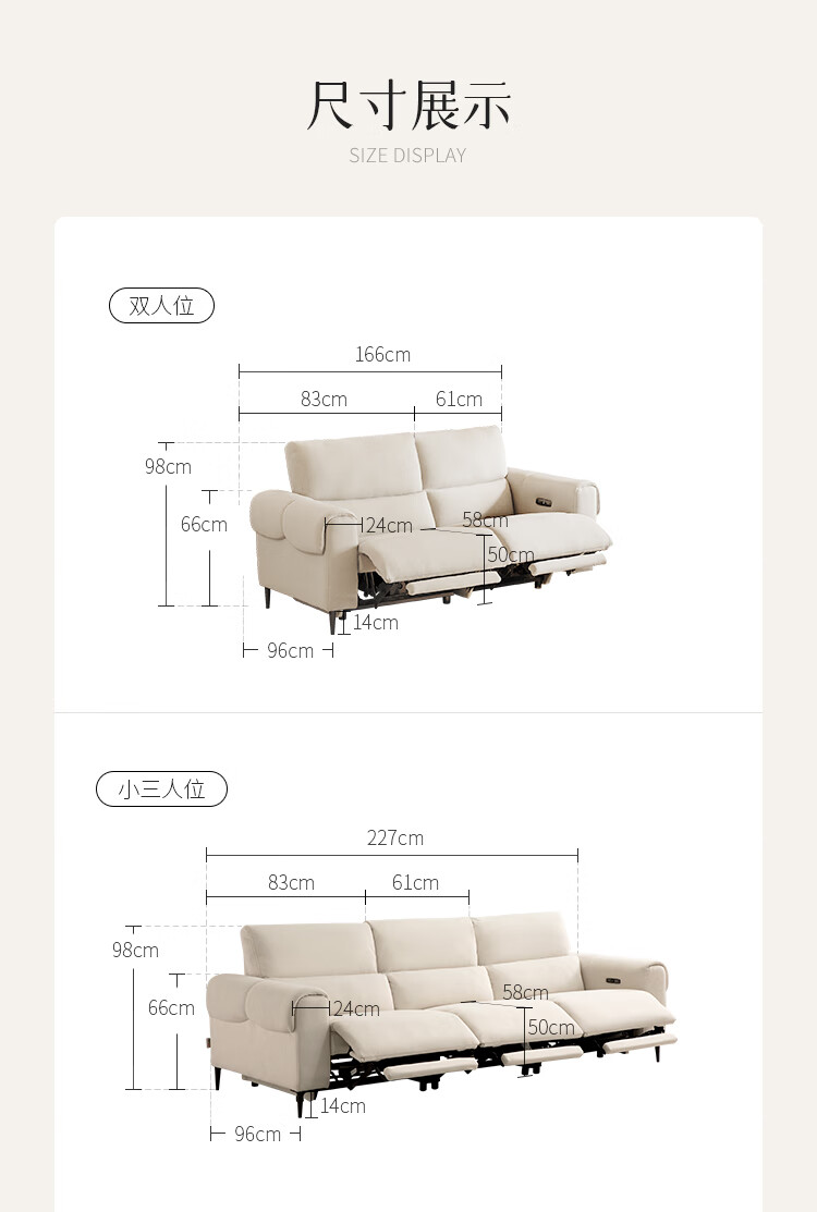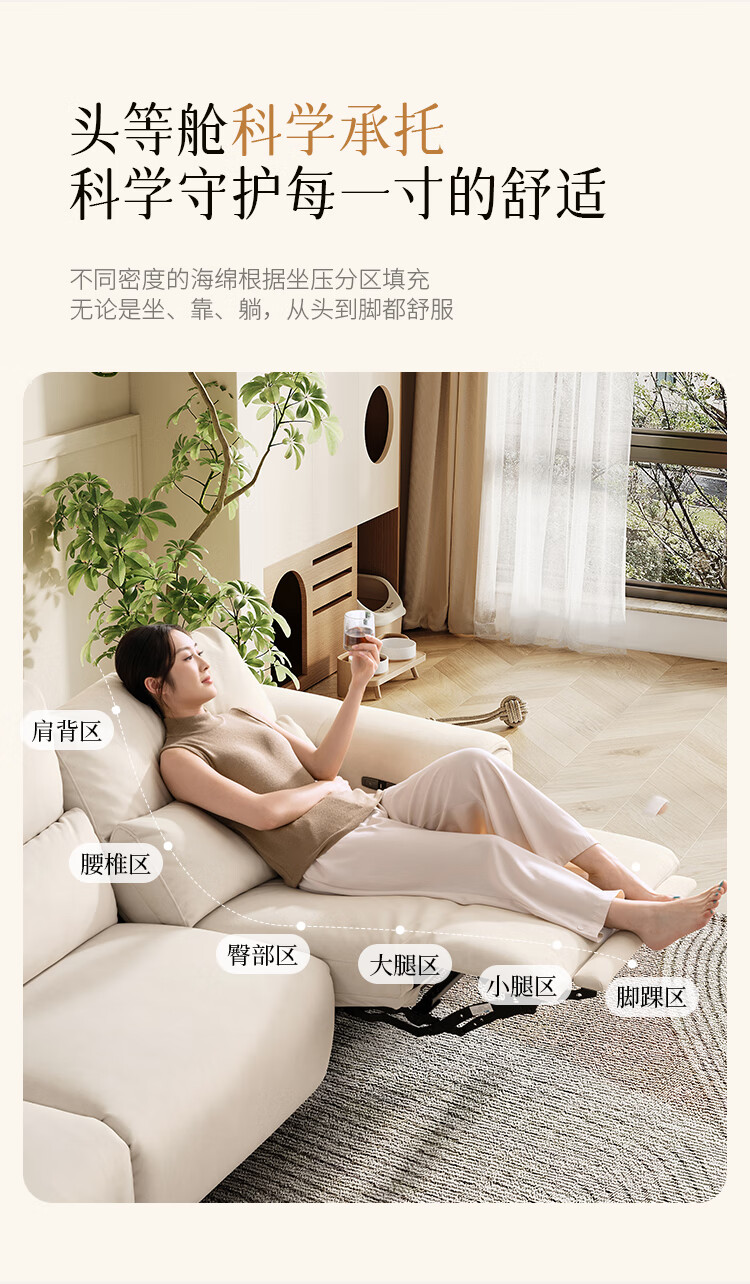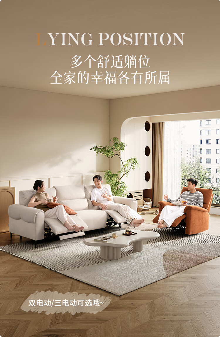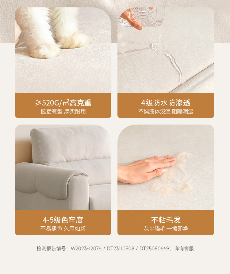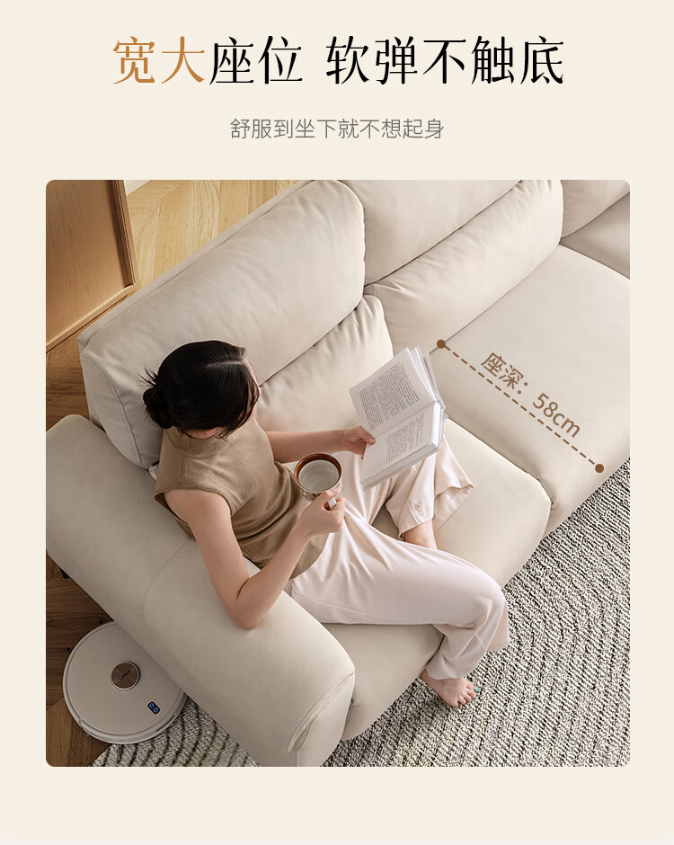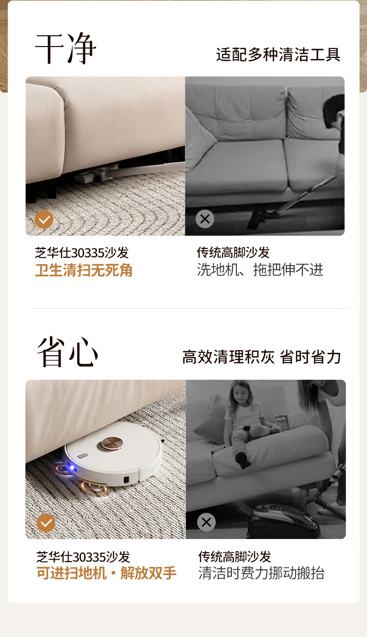芝华仕(CHEERS)头等舱时尚猫抓绒布沙发零靠墙奶油风客厅家具30335白2.72M双电