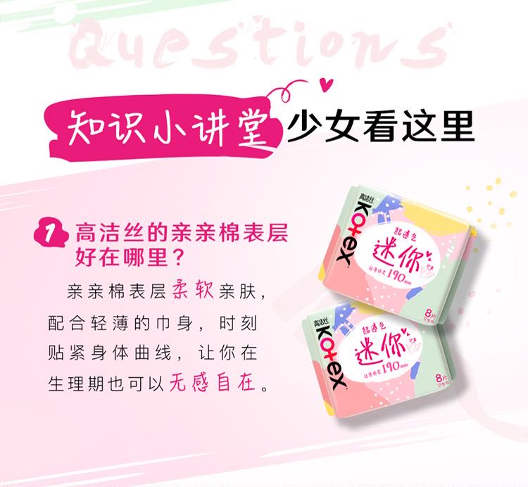 高洁丝【柔滑呵护】少女肌卫生巾240mm2包*18片日用姨妈巾京东自营旗舰
