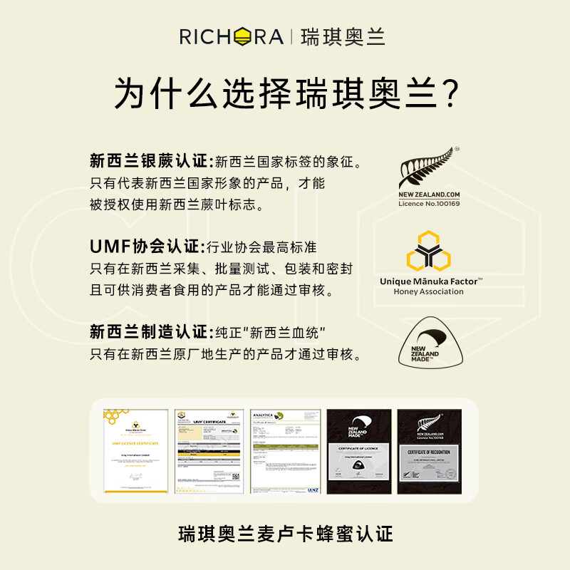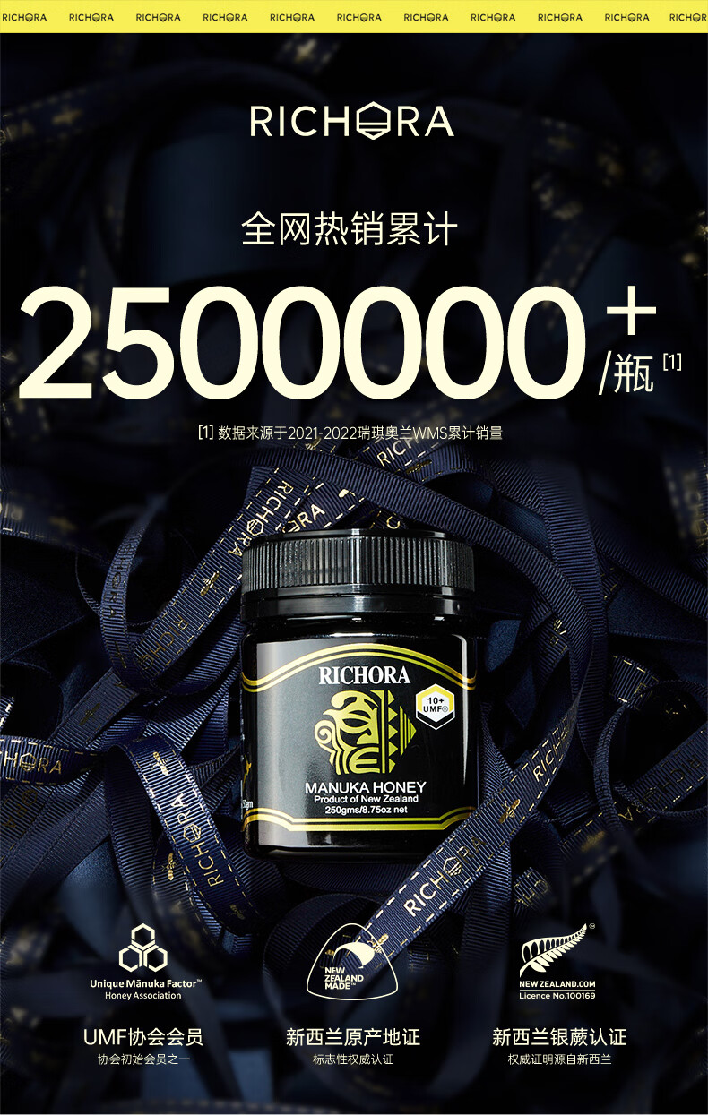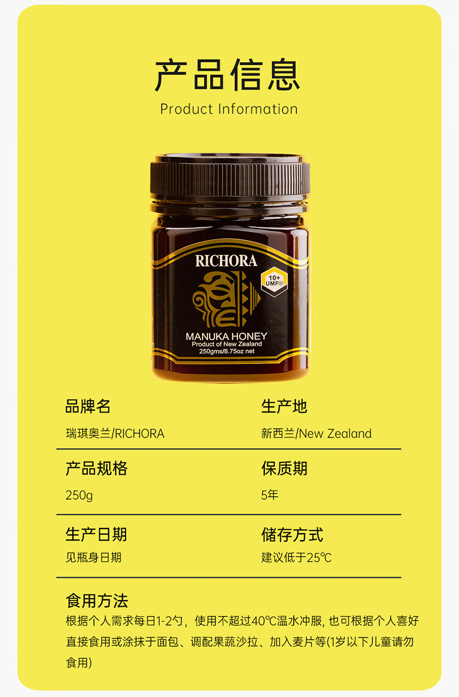 瑞琪奥兰(RICHORA)新西兰原装进口麦卢卡蜂蜜UMF10+250g生日礼物送长辈滋补营养品