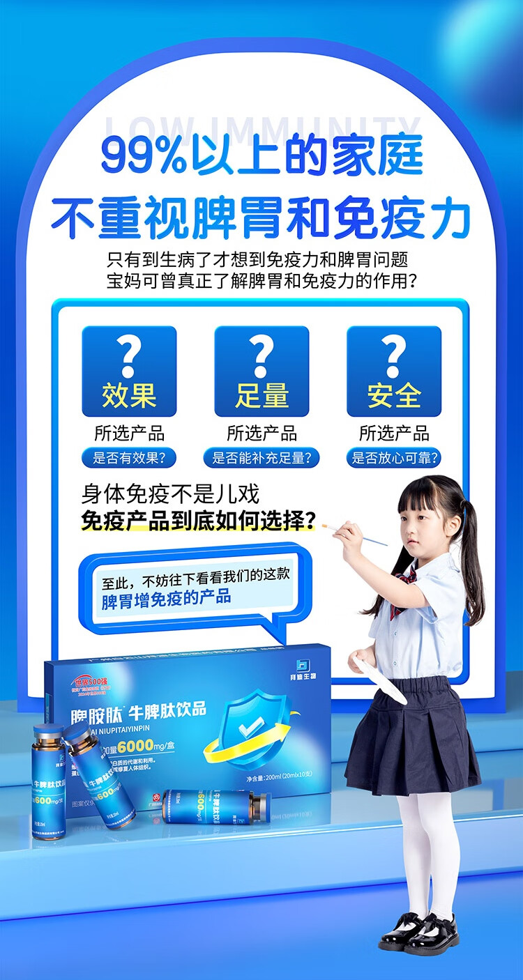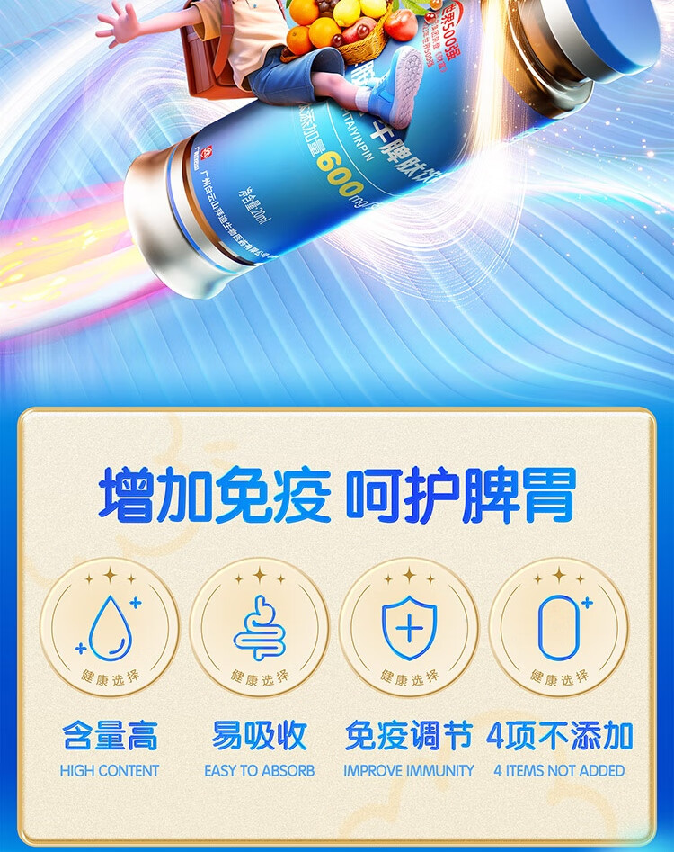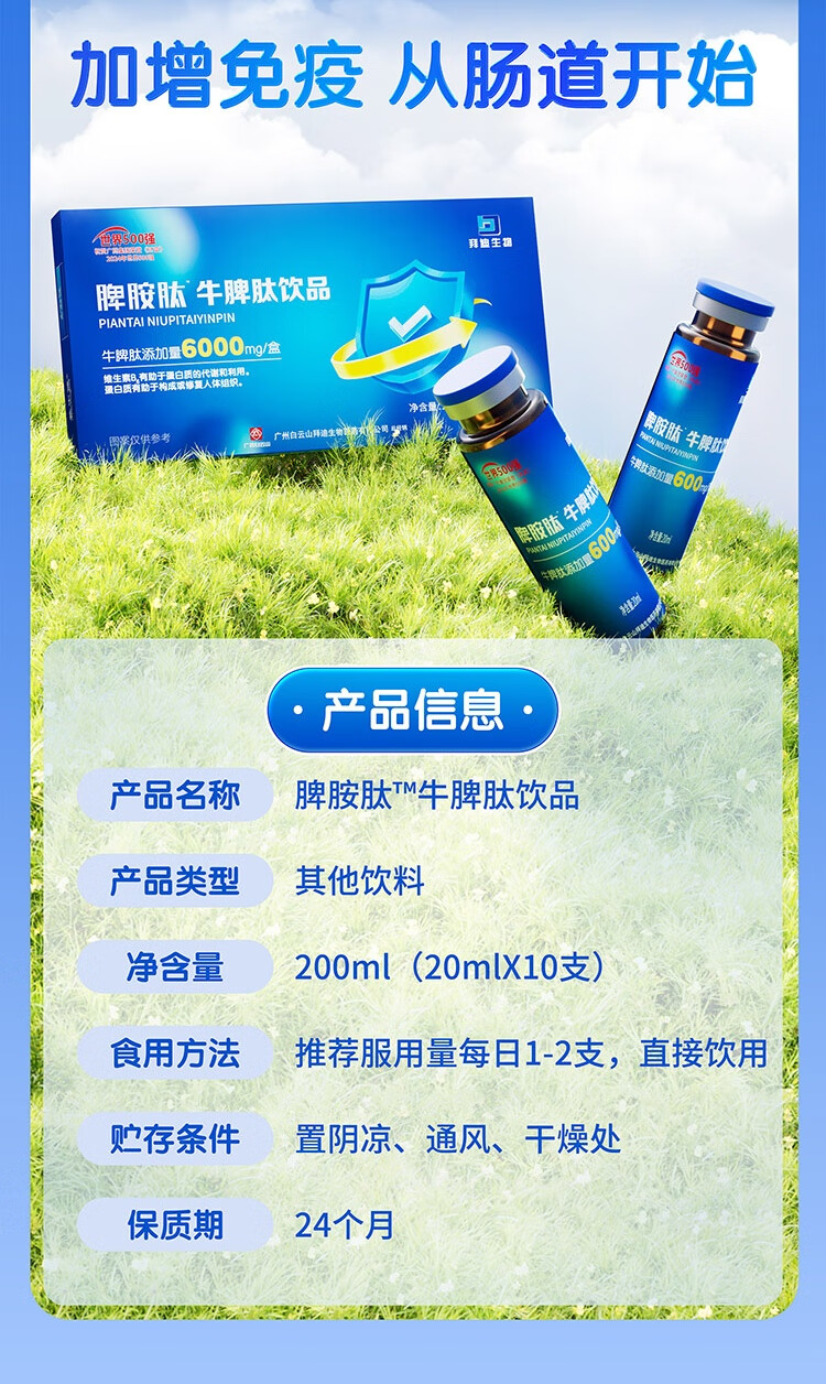 白云山牛脾氨肽鸡内金口服液小分子脾氨肽儿童免疫抵抗力调理脾胃虚积食