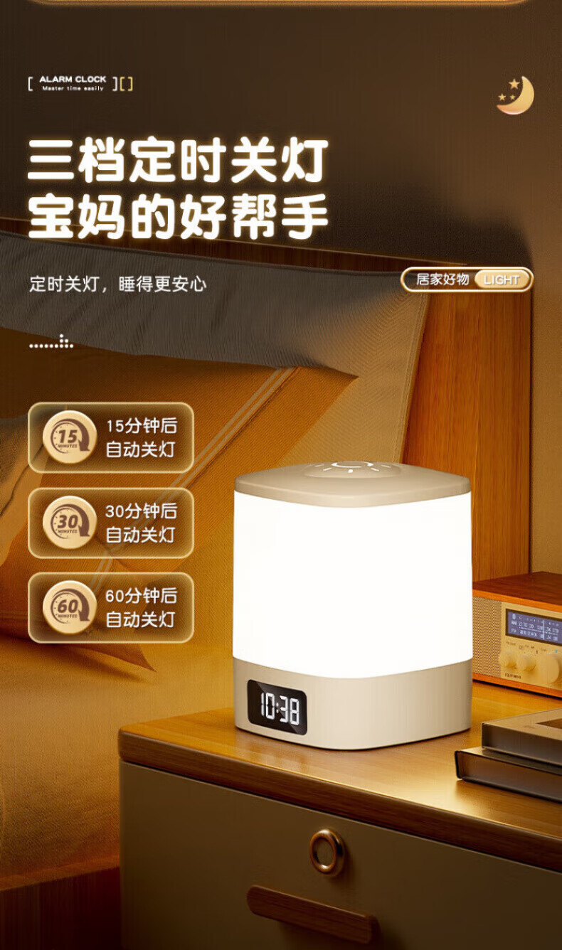DEATKN德国台灯拍拍灯护眼遥控小夜灯床头灯感卧室充电婴儿喂奶 [时钟遥控款]6000mwh+三色温
