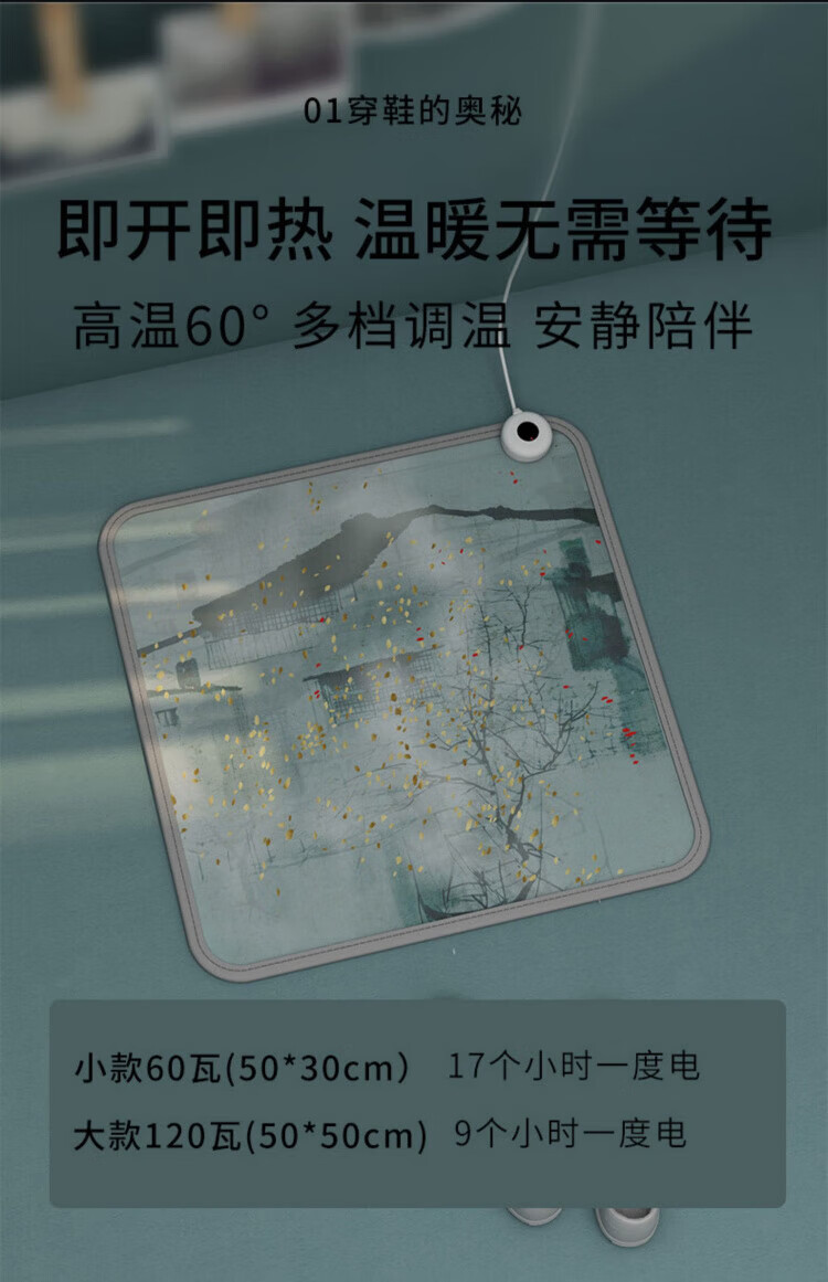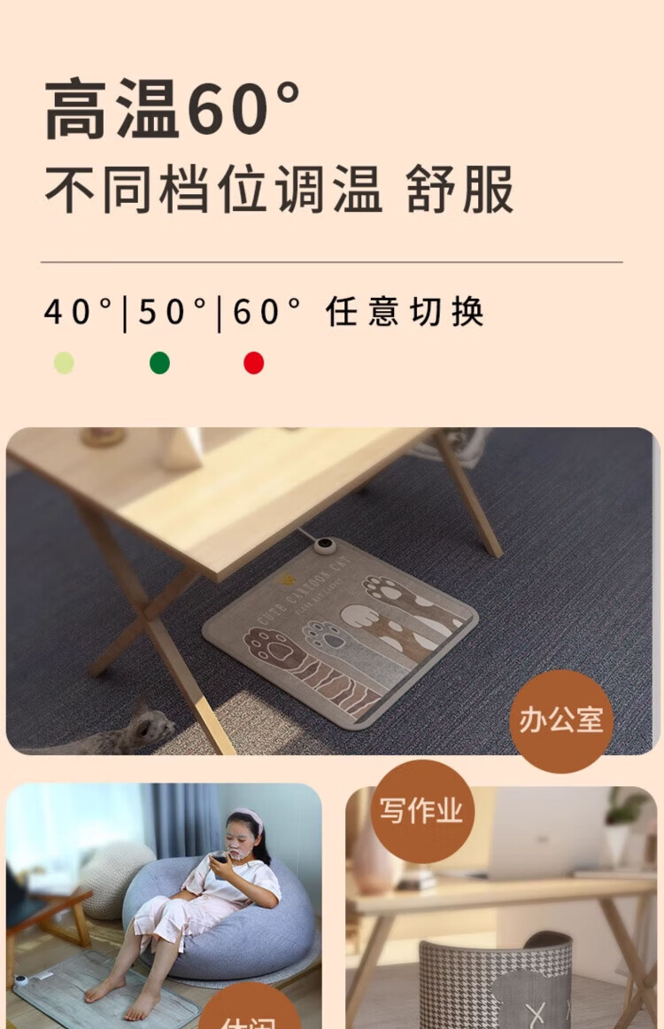 WCZ德国暖脚神器取暖脚垫办公室脚底加热垫暖脚宝冬天电热其它日用 定时50*30岩石灰4小时智能关机