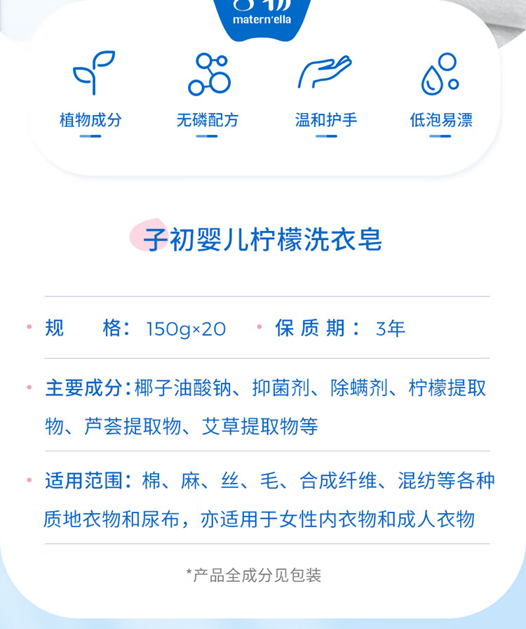 子初婴儿洗衣皂肥皂儿童洗衣皂宝宝尿布皂内衣皂柠檬洗衣皂150g*20包