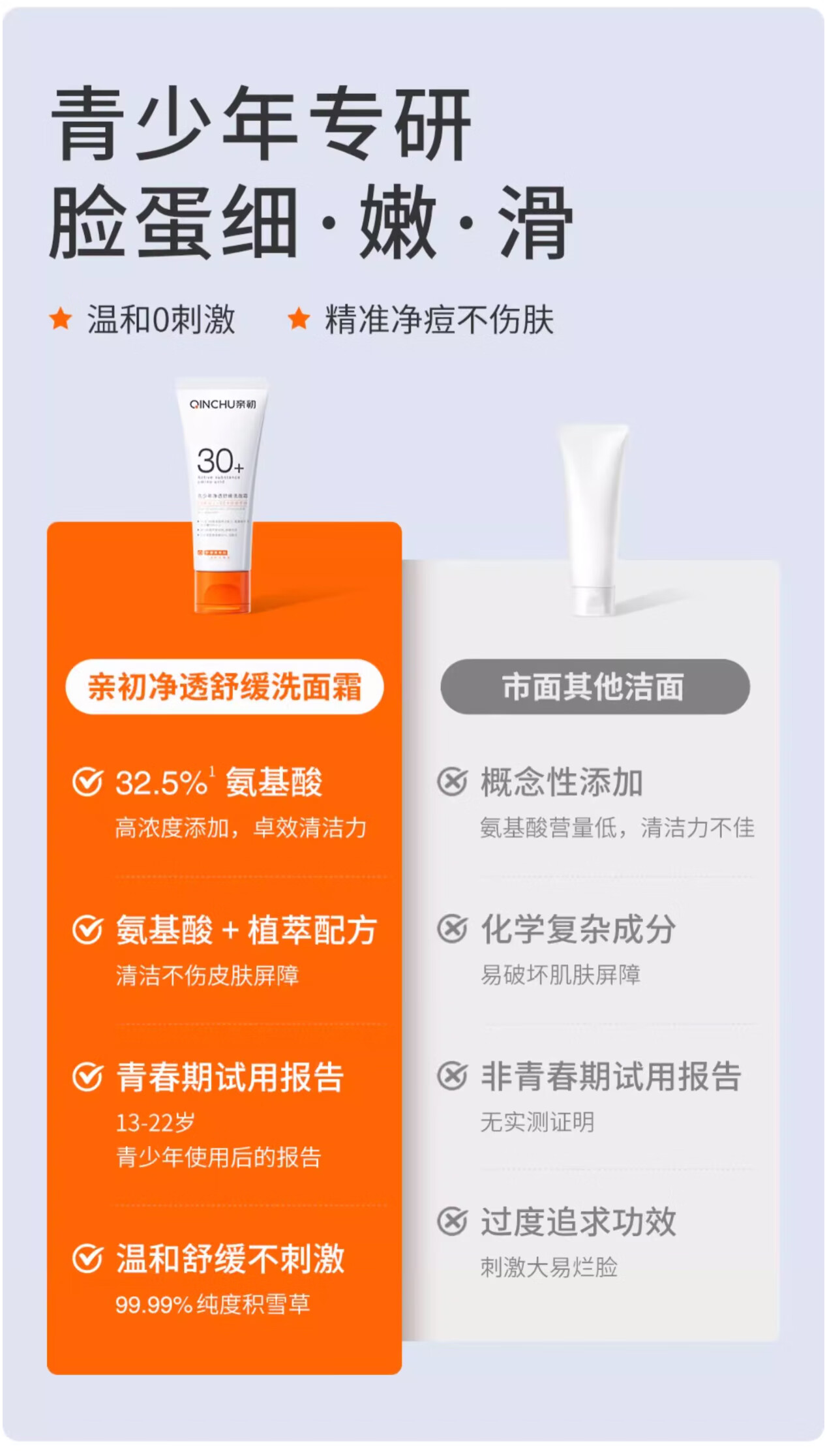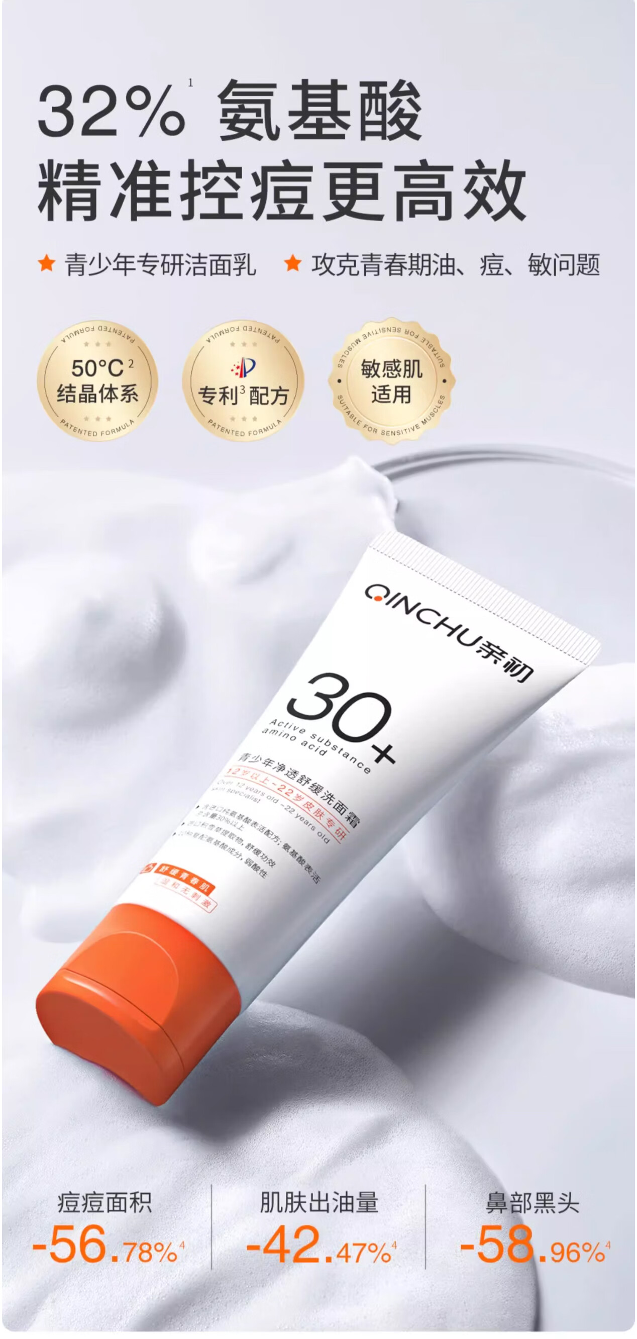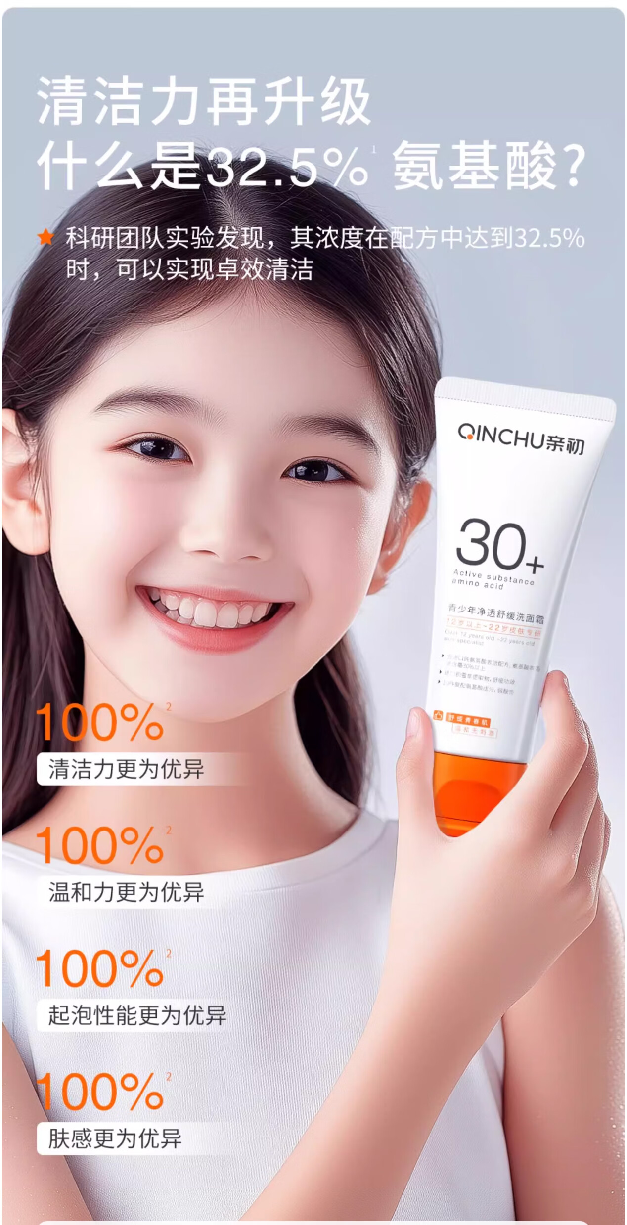 亲初青少年洗面奶12-18岁青春期男孩女孩学生专用儿童控油祛痘护肤品