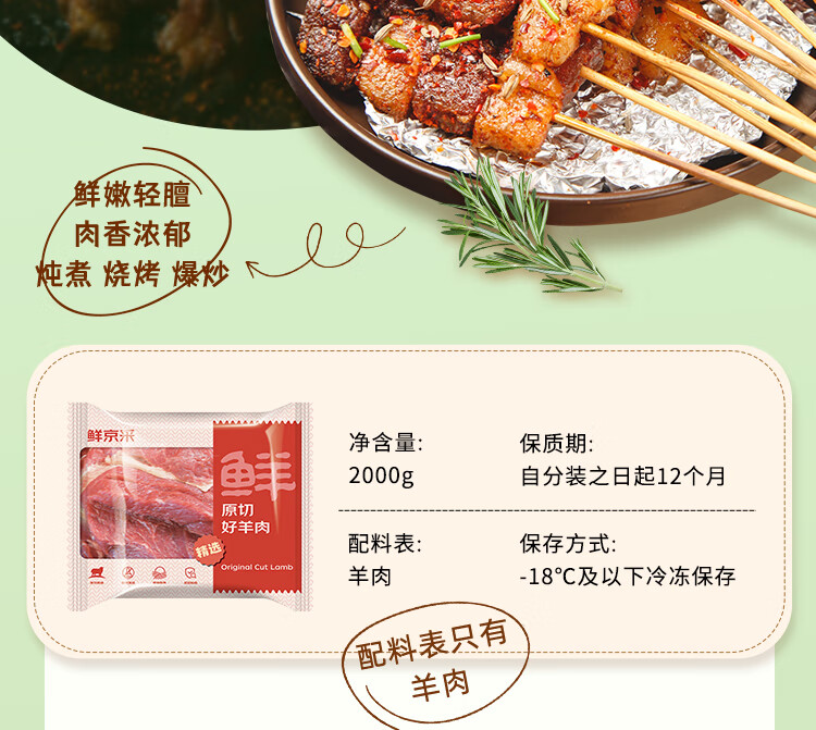 鲜京采进口原切去骨羊后腿肉4斤 烧烤炖煮食材 羊肉 京东自有品牌