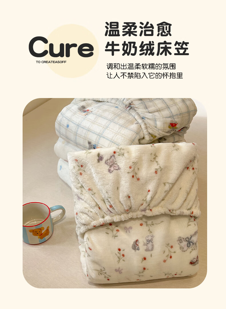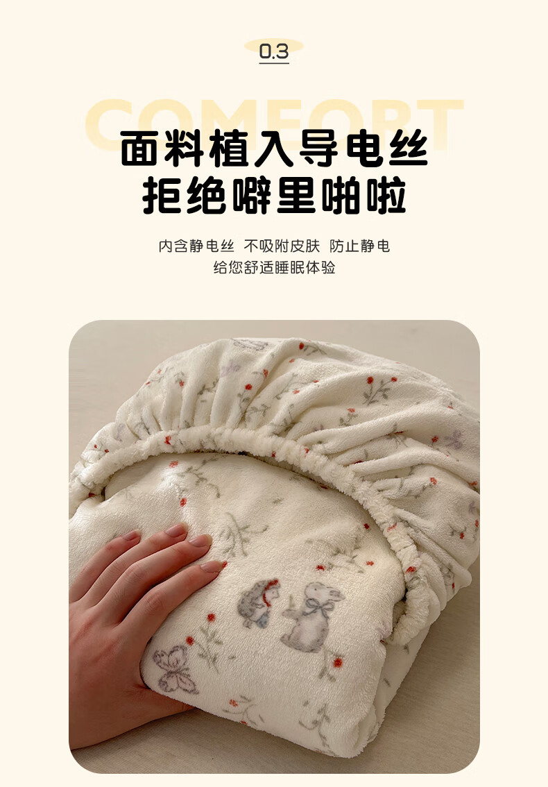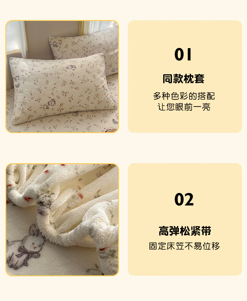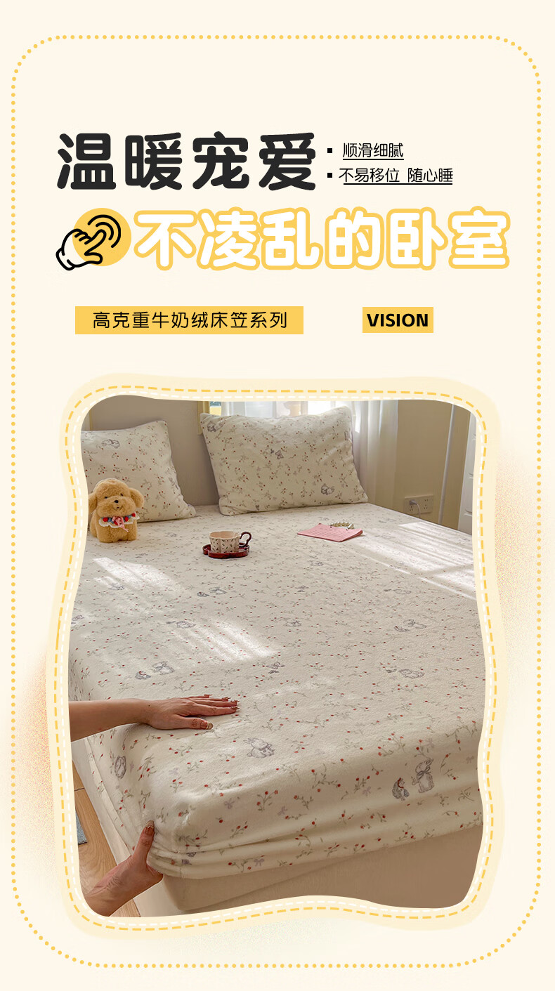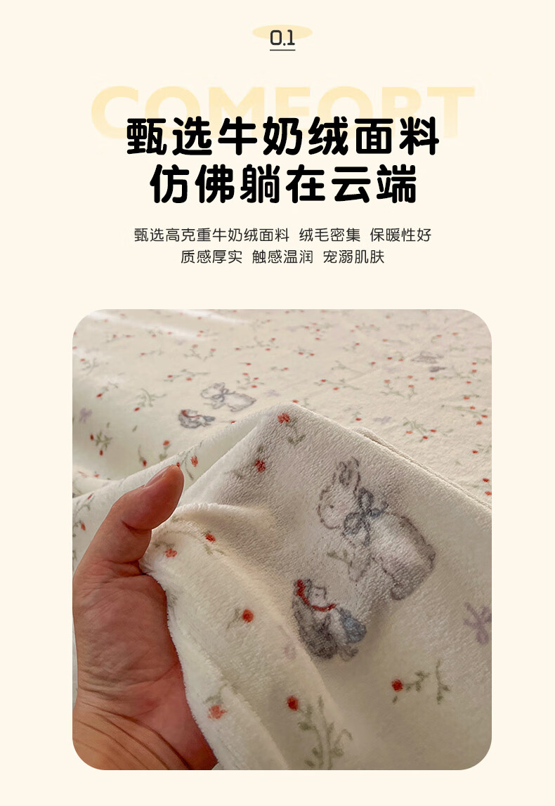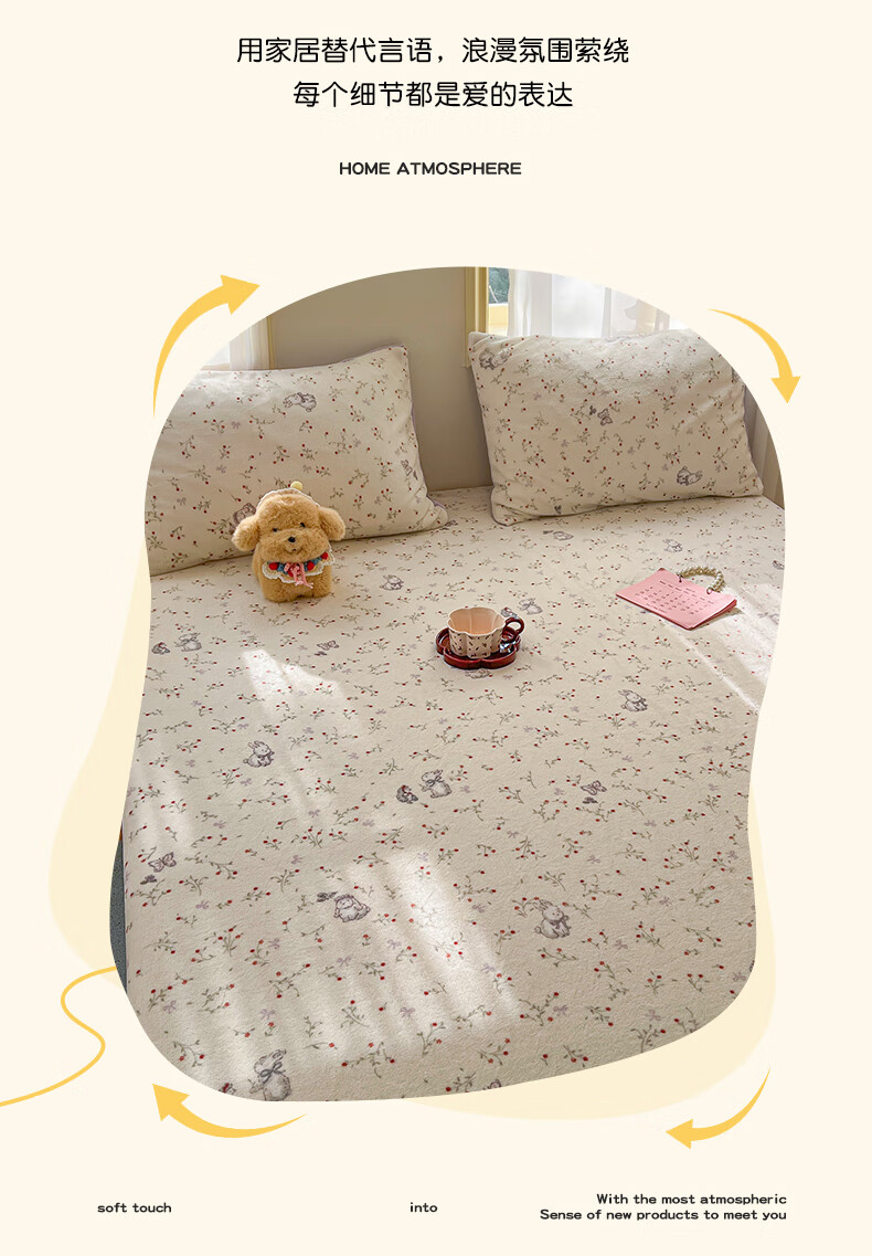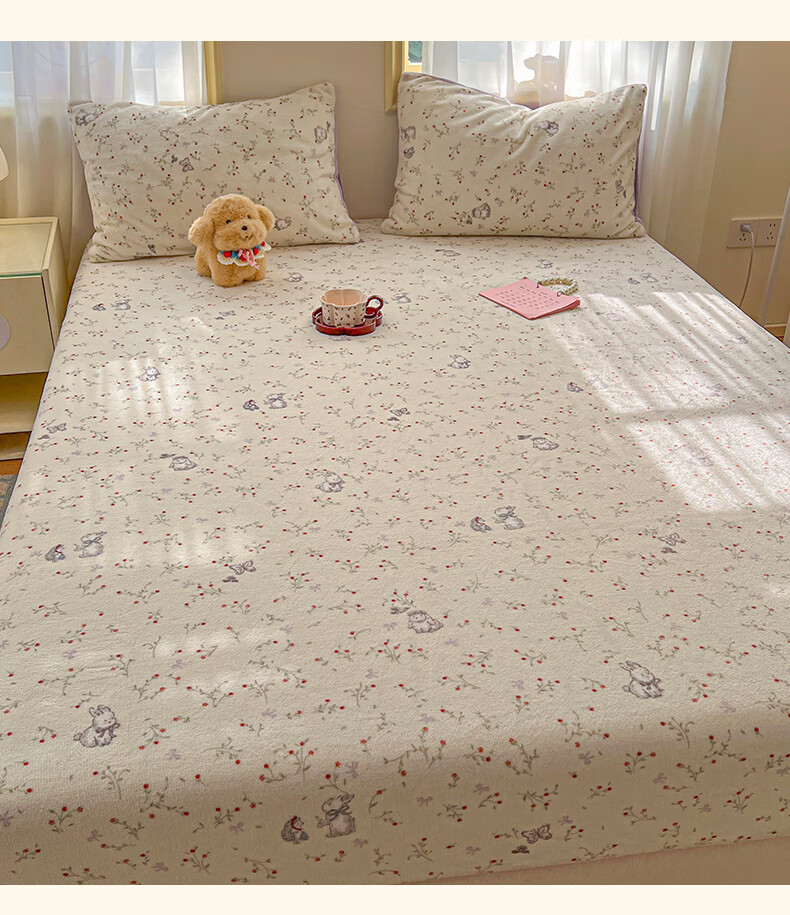 苏萱ins牛奶绒床笠单件冬季加绒珊瑚绒床罩宿舍床垫保护罩床单三件套 小兔芋泥 90x190cm床笠单件