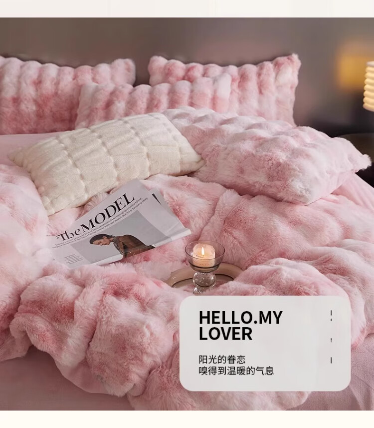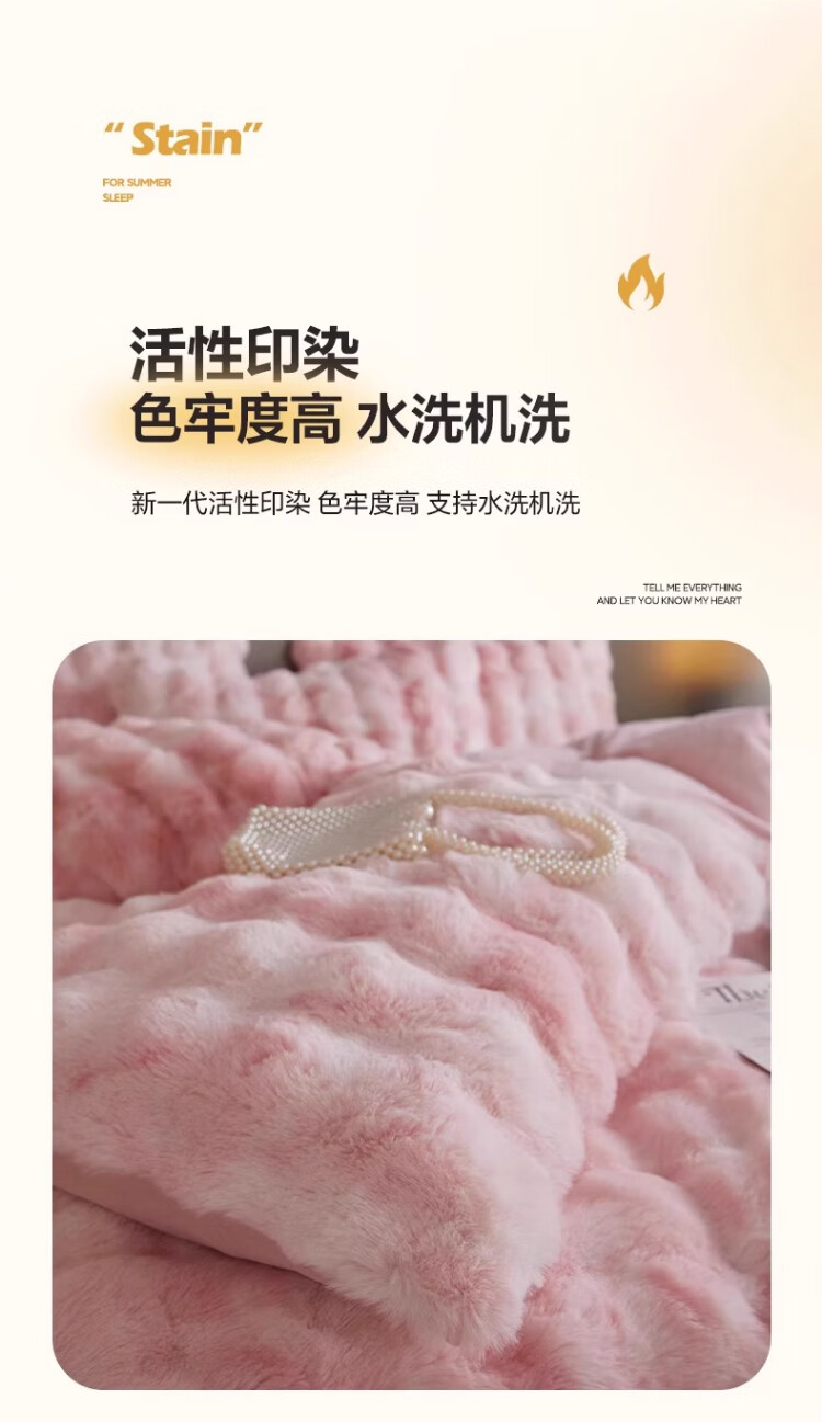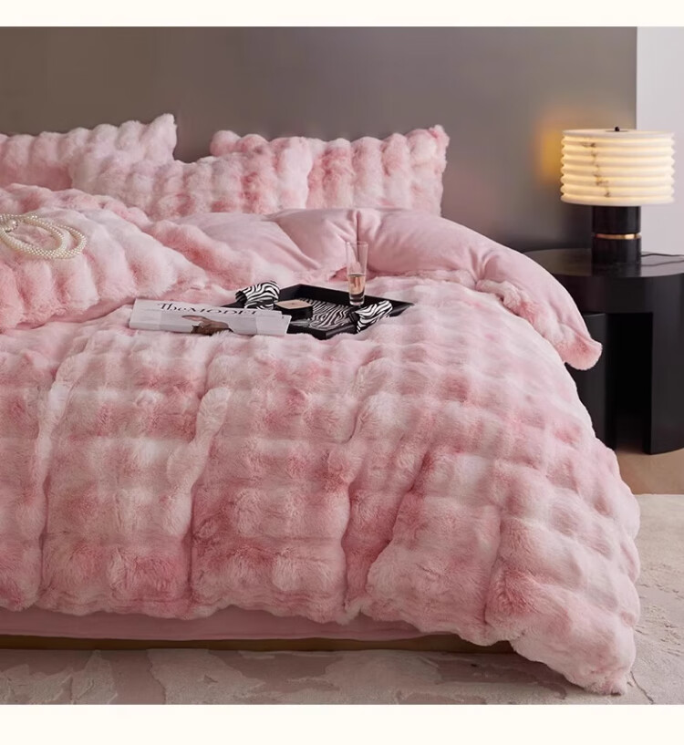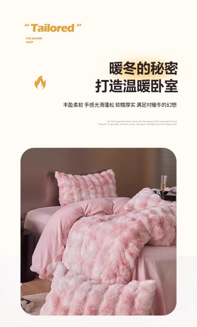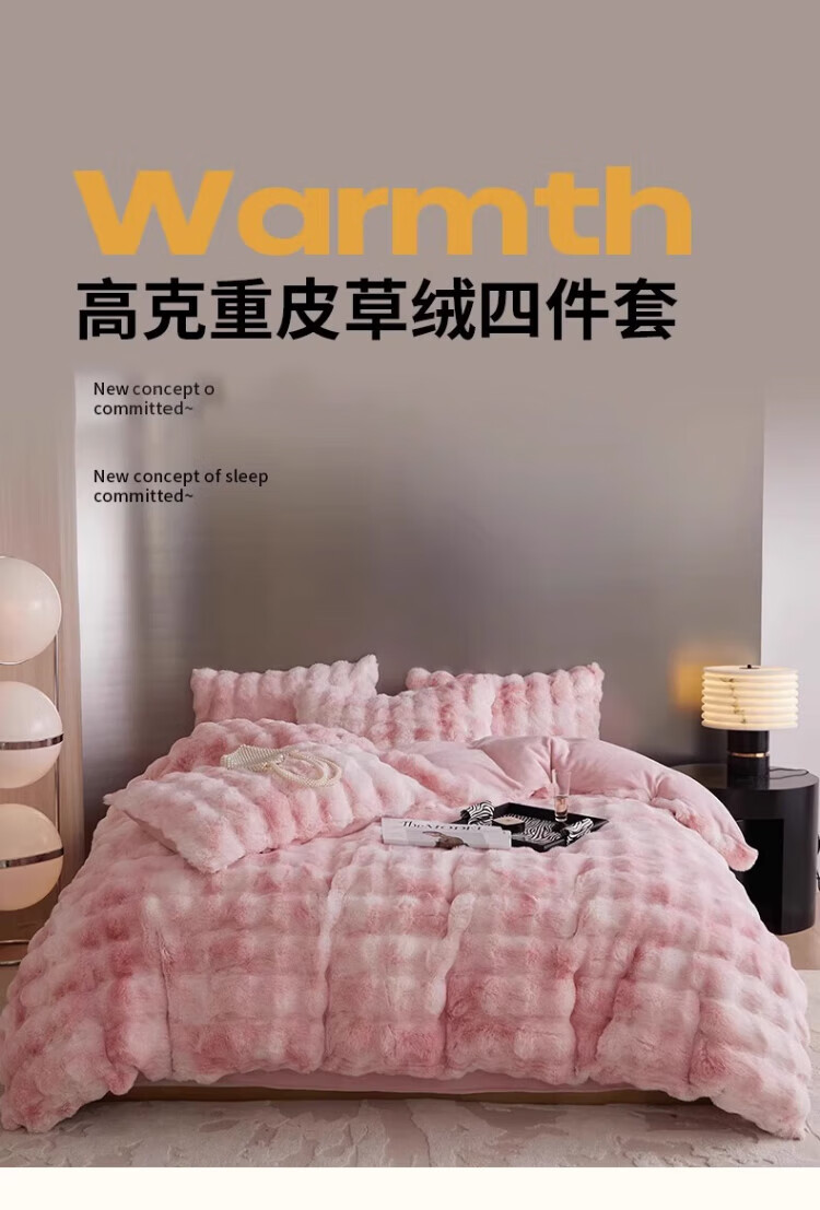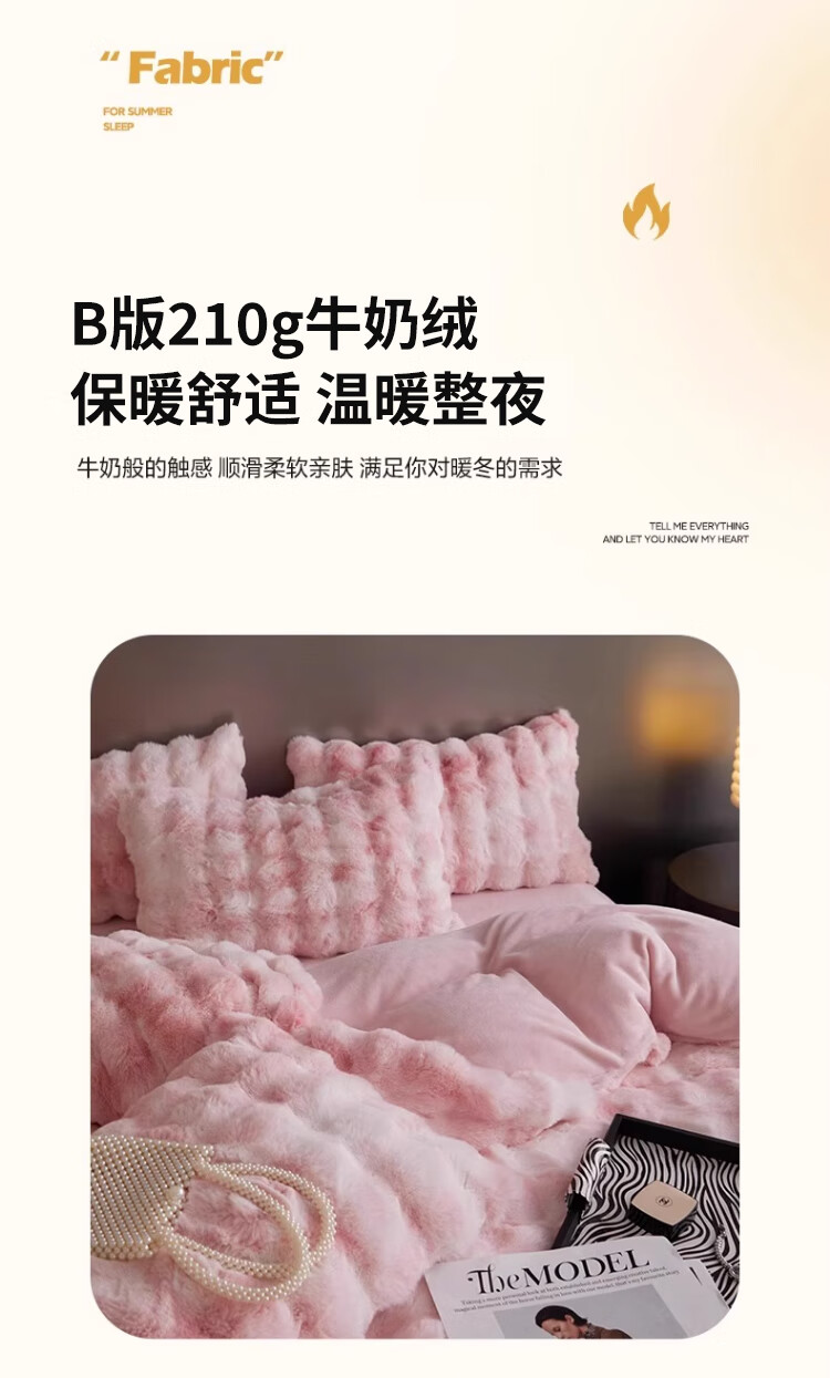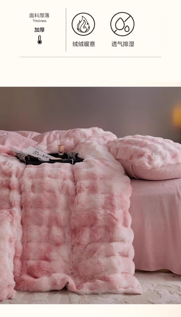 无印良品兔毛绒床上用品四件套秋冬季加绒加厚牛奶绒珊瑚绒被套床单三件套 升级长兔绒-暖白【柔软保暖】 1.5/1.8m 床单款 四件/被套200*230