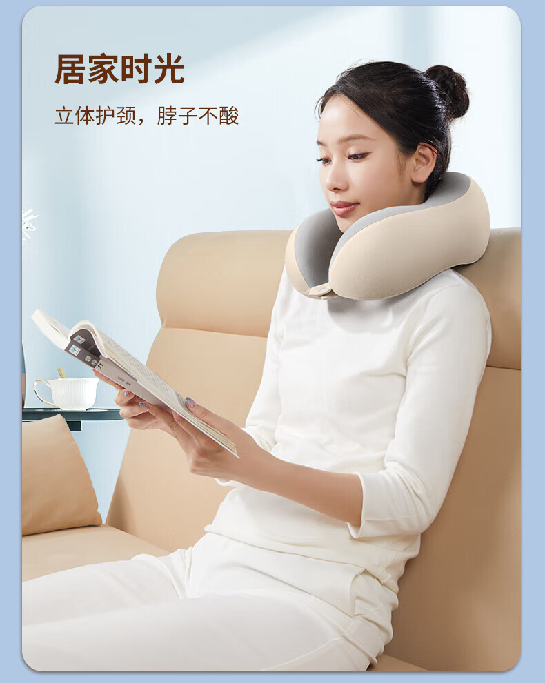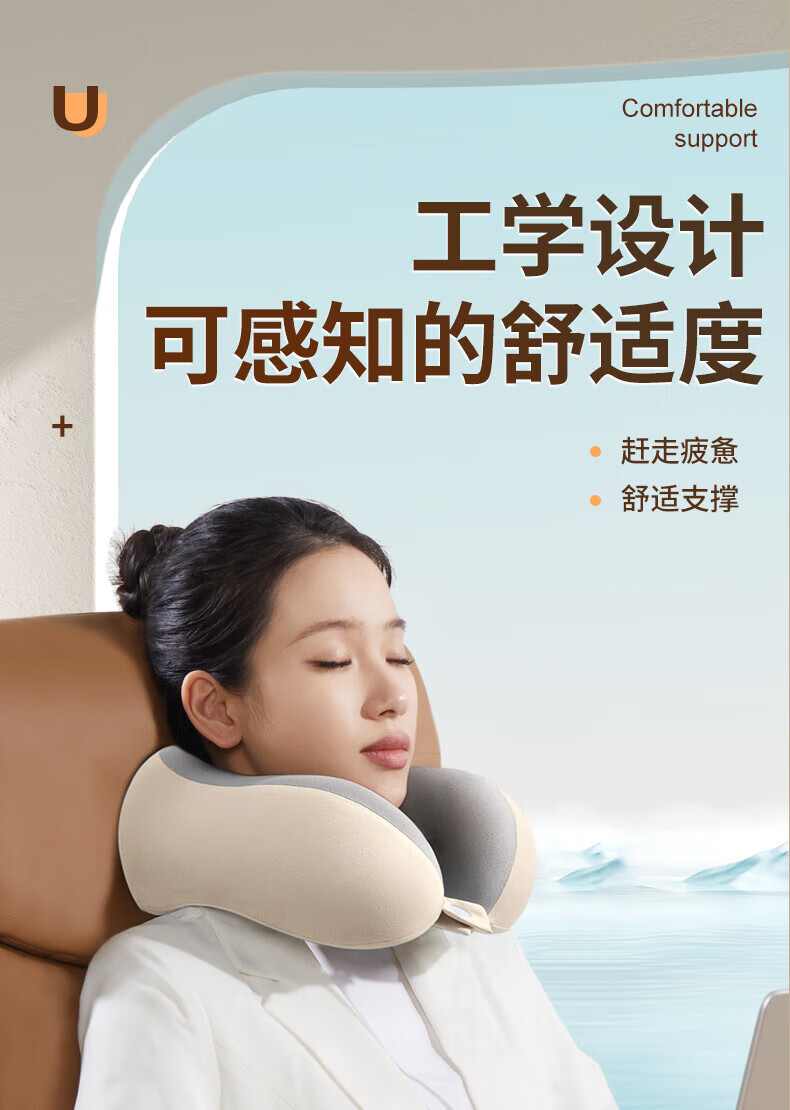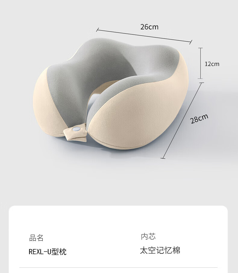 DEATKN德国新款U型枕旅行便携长途飞机高铁坐车护颈枕脖子靠枕颈椎U [灰白双拼+圆形EVA收纳盒]科学支