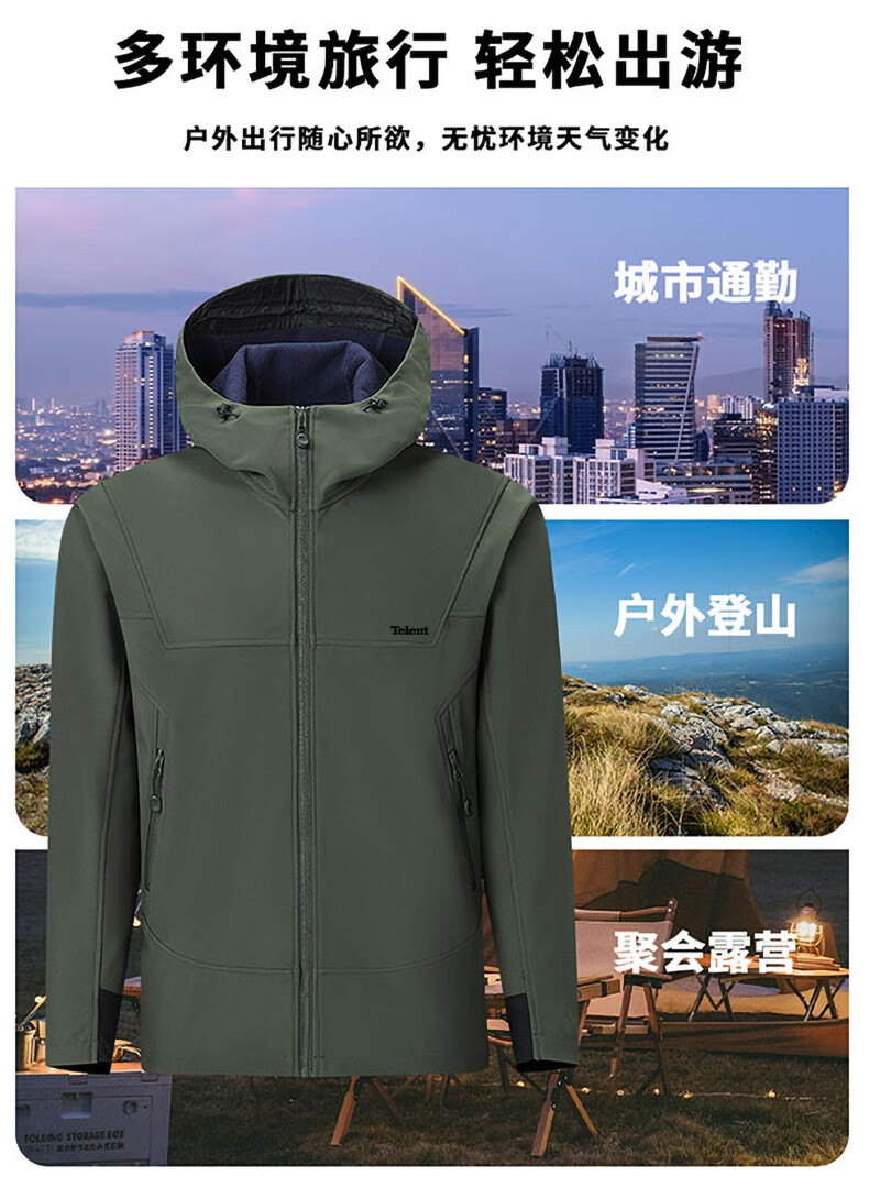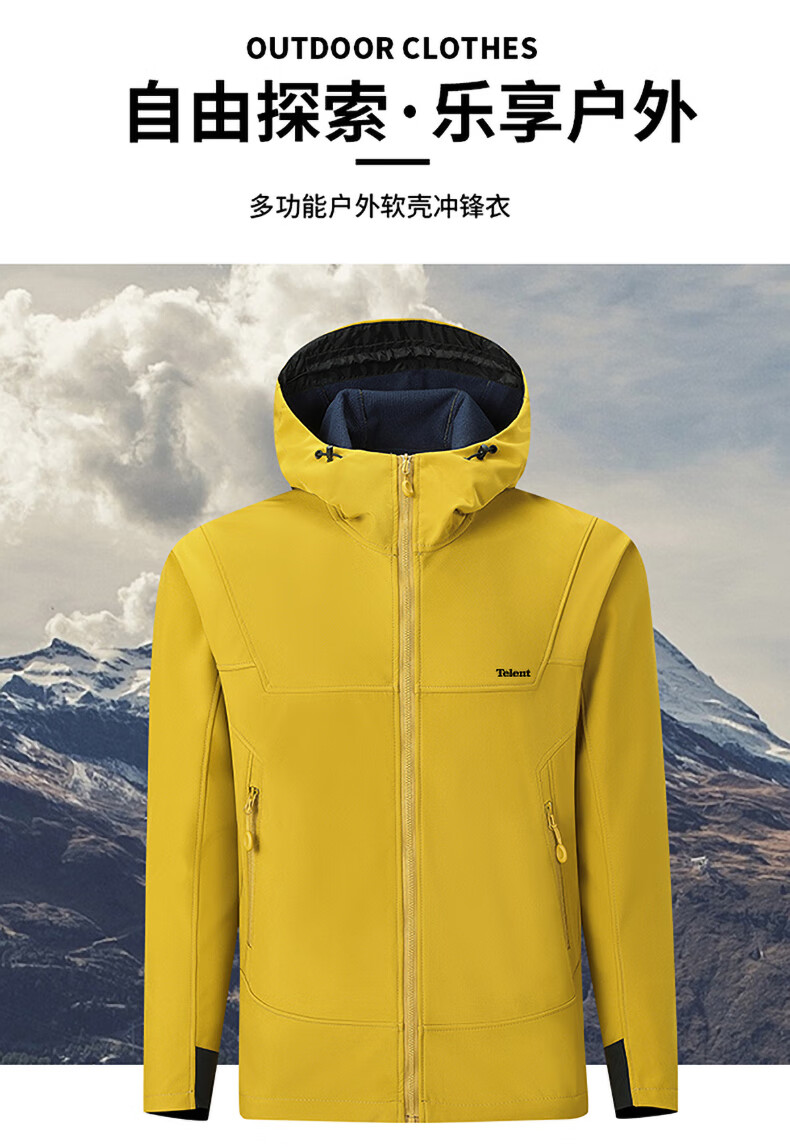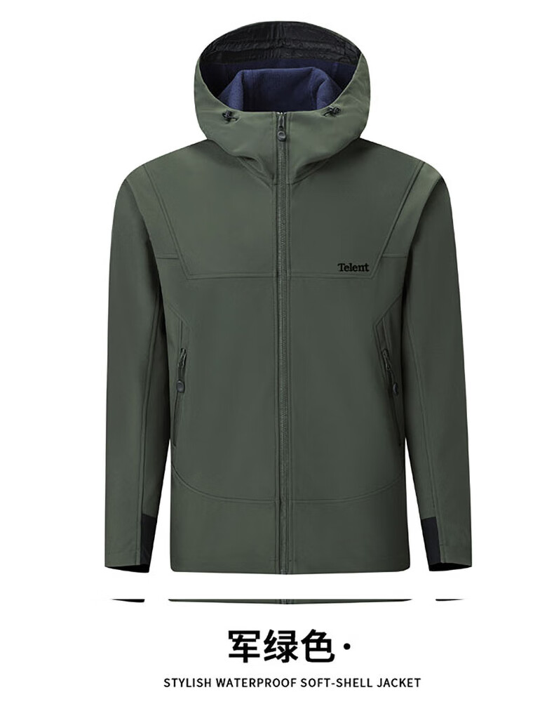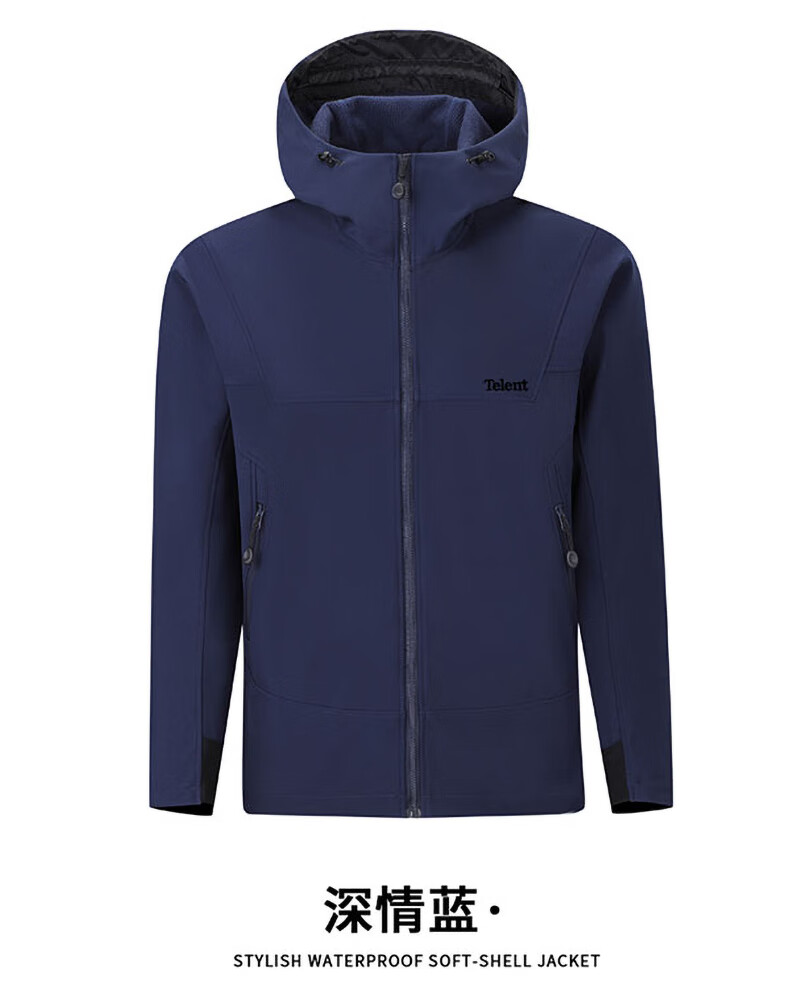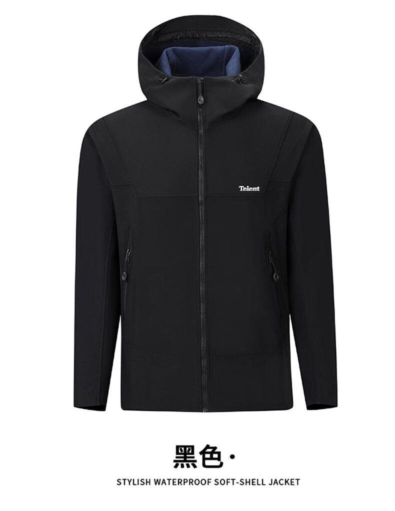 天伦天(Telent)软壳冲锋衣男秋冬季户外防风防水夹克运动透气登山服 酷炫黑 XL