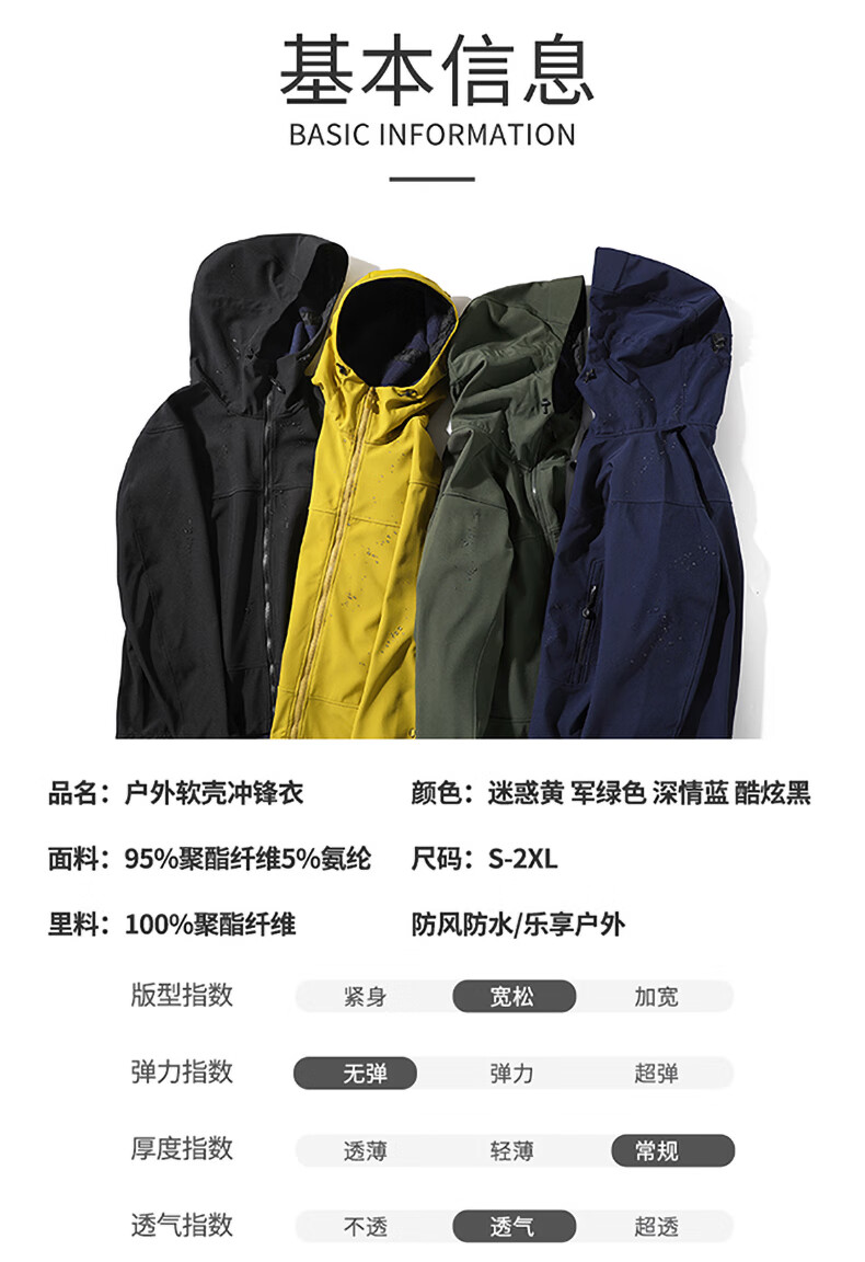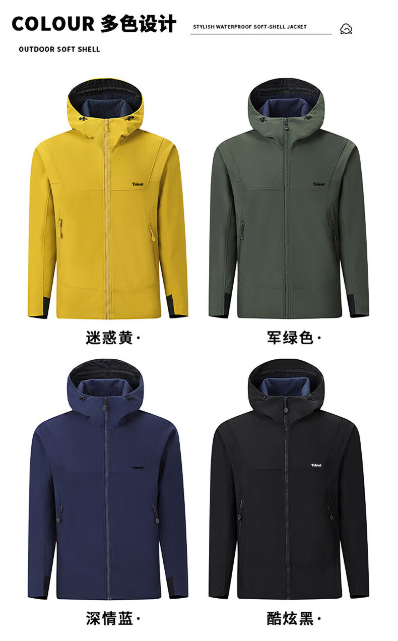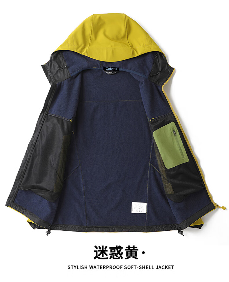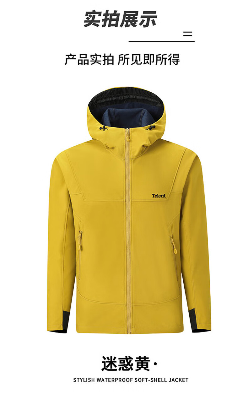 天伦天(Telent)软壳冲锋衣男秋冬季户外防风防水夹克运动透气登山服 酷炫黑 XL